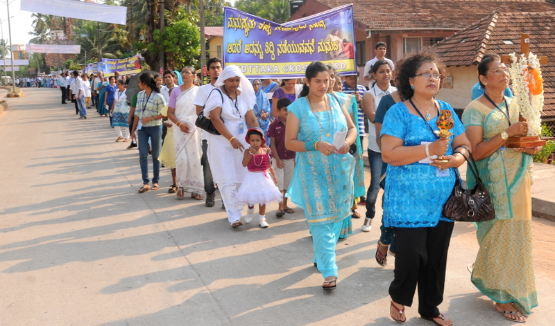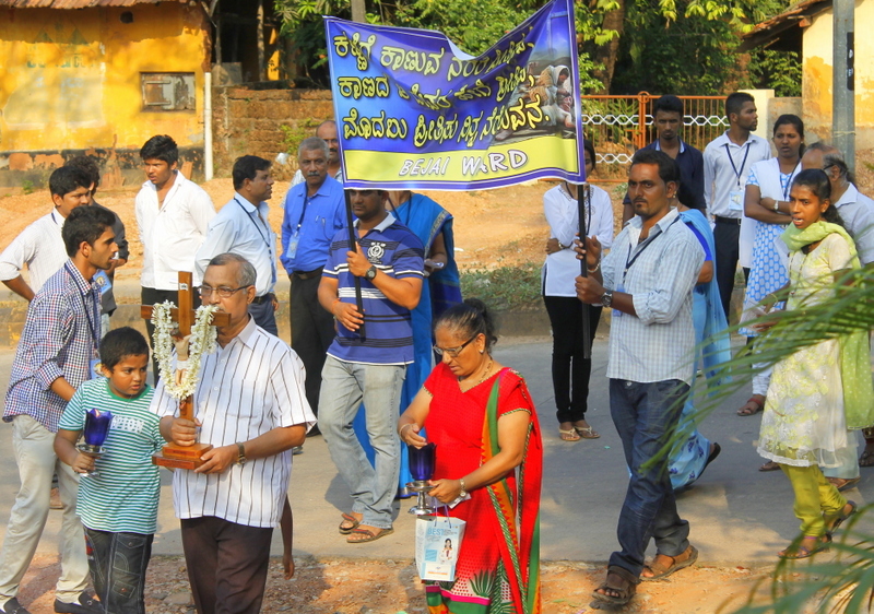 The celebration of the return journey of the Glorious Cross started from two ends of the Parish at 3.15 pm. On one side ward members from Kottara, Bejai, Kapikad, Kuntikan, Kottara Cross, KSRTC, Highway, Konchady lower, Barebail Upper and Lower, Kuntikan Junction and Gollachil ward members while on the other side from Akashbhavan, Kavoor, Land links Upper and Lower, Kadjahithlu, Derebail, Parapade Upper and Parapade Lower, Konchady upper and Church Wards.