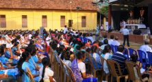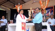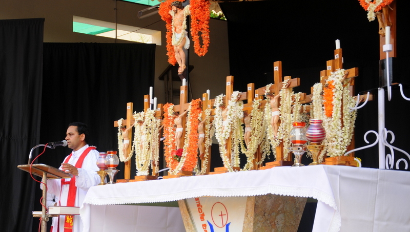 Once both the processions reached the Parish Grounds, all the Gurkars gracefully handed over the crosses to the Parish Priest Fr. Peter D’souza and this was followed by the message on the significance of the cross by Fr Sunil Kumar D’souza, Parish Priest of Thannir Bhavi Parish. In his message, Fr. Sunil said that the cross till the time of crucifixion of Jesus was a sign of defeat and shame, but it became a symbol of Victory and Glory. Kings fought battles with the cross as the sign of victory and were victorious. St Francis Xavier came to India with one cross in hand but today in Goa and in India, we find thousands of crosses. Adam and Eve brought spiritual death from the fruit of the Living tree but the fruit of the dry tree which Jesus died brought Life to the whole mankind. Fr. Sunil proved his devotion to the cross not only with his words but by his deeds by carrying one of the Main Cross of the procession from Akashbhavan to the parish grounds.