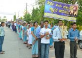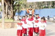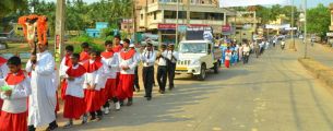 The journey displayed the spirituality of the event with the singing of hymns by the people and the children’s choir who were in groups of 15 at four places added to the solemnity of the event. The entire way in which the procession passed had 40 feet banners put up across the road with verses from the holy bible adorning the road. This increased the grandeur of the procession.