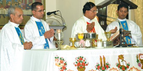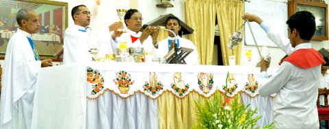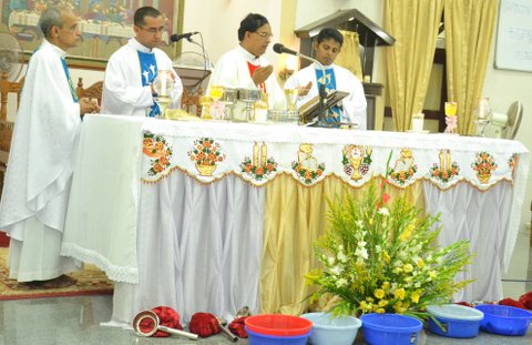 The Maundy Thursday celebrations at the Most Holy Redeemer Church, Derebail were concelebrated by the Parish Priest Rev. Fr. Peter D’souza, the Assistant Parish Priest Fr. Edwin Monis, Fr. Leo Lasrado, Professor of St. Joseph’s Seminary, Jeppu and Fr. Ronald D’souza from the Codialbail Press, Mangalore.