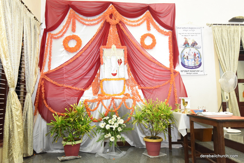 Maundy Thursday, the day of our Lord's Last Supper was commemorated in a devout manner on the 13th of April at Most Holy Redeemer Church, Derebail. Rev.Fr.Austin Peres, Fr.Gratian Alvares, Fr.Walter D'souza and Fr.Alexander Lobo offered the mass. In his Homily, Fr.Austin Peres elaborated on the significance of the day. He also urged the parishioners to pray for all those who have taken on the responsibility of making Jesus known to the world, especially the Priests.