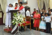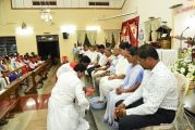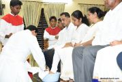 The Holy Week helps one to reminisce the compassion that Jesus had towards others. He washed the feet of his disciples on this day and exhibited the humility that one should have in life. A symbolic representation of this is done every Maundy Thursday, where the Priest washes the feet of 12 members of parish. A total of 6 men and 6 women from various associations and wards participated in this ceremony and took over the place of the disciples.