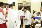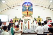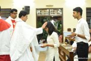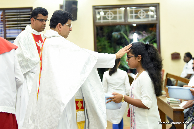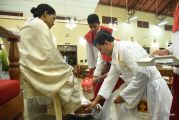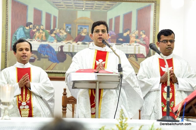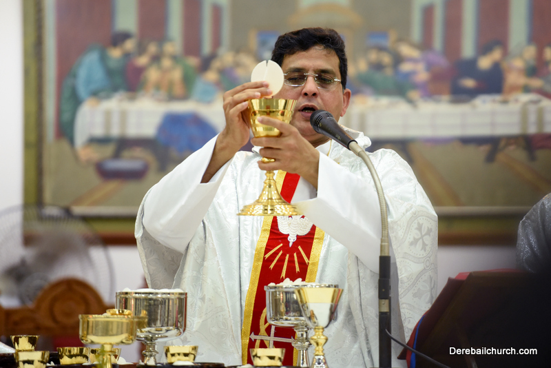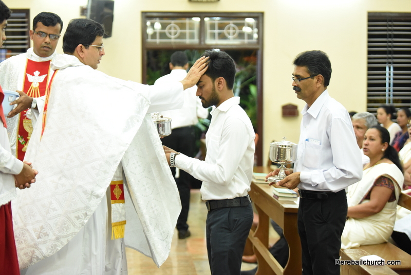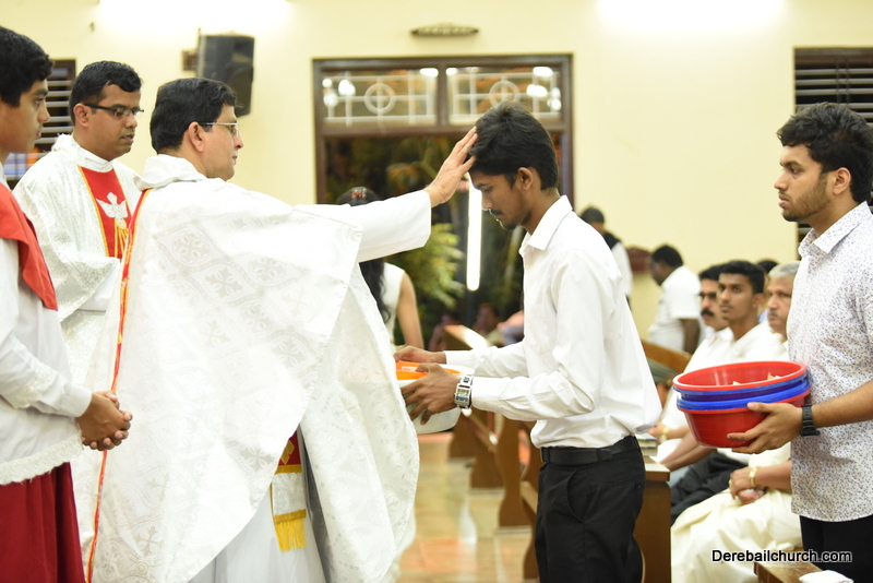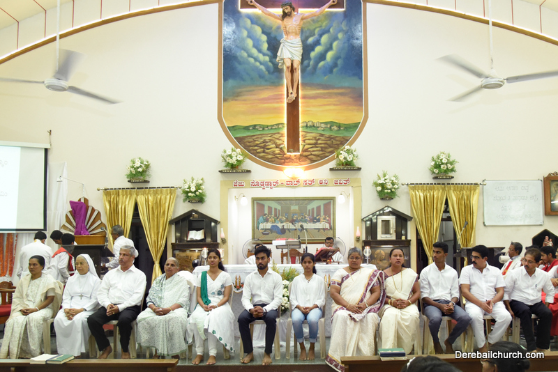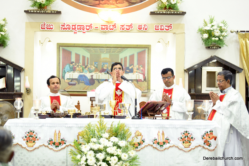 Maundy Thursday marks the beginning of the three day celebration of Easter. It commemorates the Last supper of Jesus Christ with his disciples. Jesus also washed the feet of his followers and commanded them to love each other. The Maundy Thursday celebration at The Most Holy Redeemer Church Derebail were concelebrated by the Rev.Fr Austin Peres, Rev Fr.Gracian Alvares, Rev.Fr Anthony Pais and Rev. Fr Walter Pinto. Fr Anthony Pais in his homily elaborated the significance of the day and also reminded the parishoners about the institution of the sacrament of Priesthood.The mass stressed the importance Jesus put on the humility of service. The mass also emphasized the importance of Eucharist and its symbolic gesture of sacrifice of Jesus's body. At the conclusion of the mass the faithful were invited to continue the adoration of the Blessed Sacrament. The members of the Senior Choir added to the solemnity of the service through their singing.