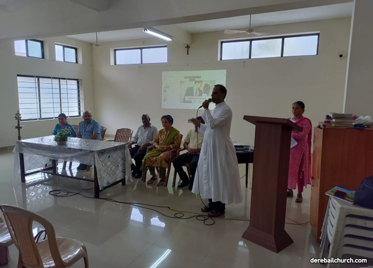 A short programme titled Mission Possible - Young Couples Care Session was held on the Sunday, May 25 ,2025 at Most Holy Redeemer Church, Derebail organised by the Family commission and Missionary Families of Christ (MFC) Mangalore.  It helped  guide young couples in building strong, Christ-centered families and to understand their roles as husbands and wives. Attended by 27 couples , the event began with an opening prayer by Mr.Cyprian, Family commision Incharge  followed by an address by  Rev. Fr Joseph Martis , Parish Priest who emphasized the family as the domestic church and importance of continually working for the betterment of family. The Assistant Parish priests, Fr Kevin and Fr Nelson; Parish Council President Mrs.Sheila Dsouza; Coordinator of 21 Commissions Mr.Anil Patrao , and Family Comission Secretary Mrs.Dora Dcunha were also present for the programme