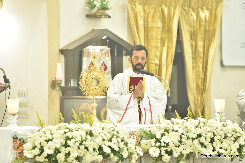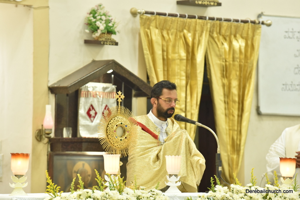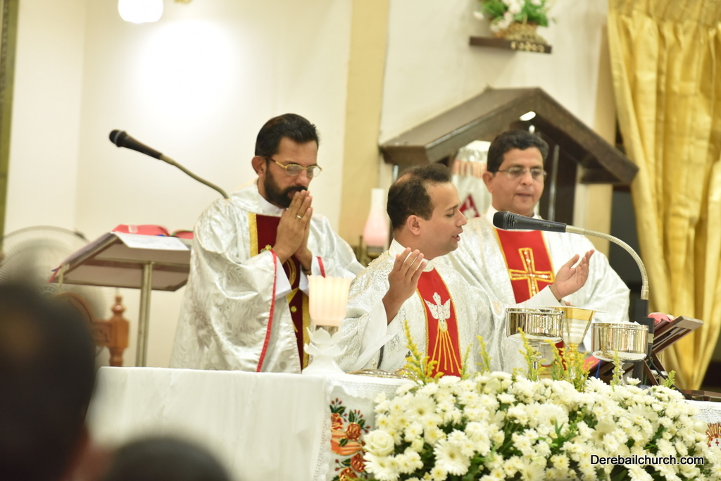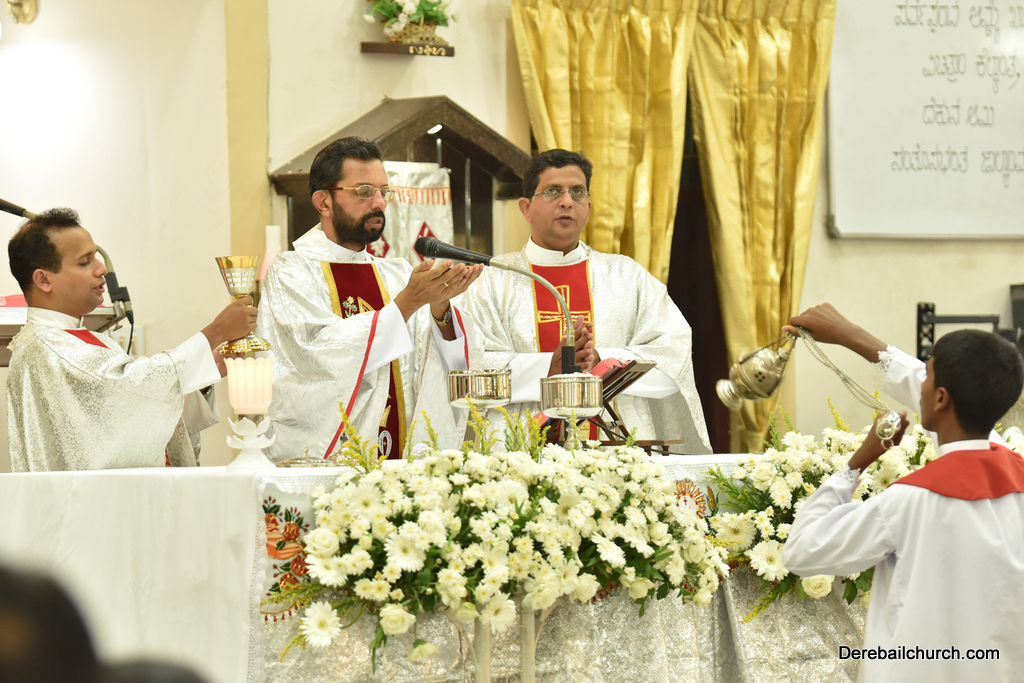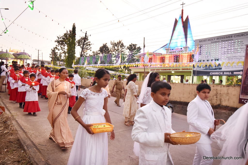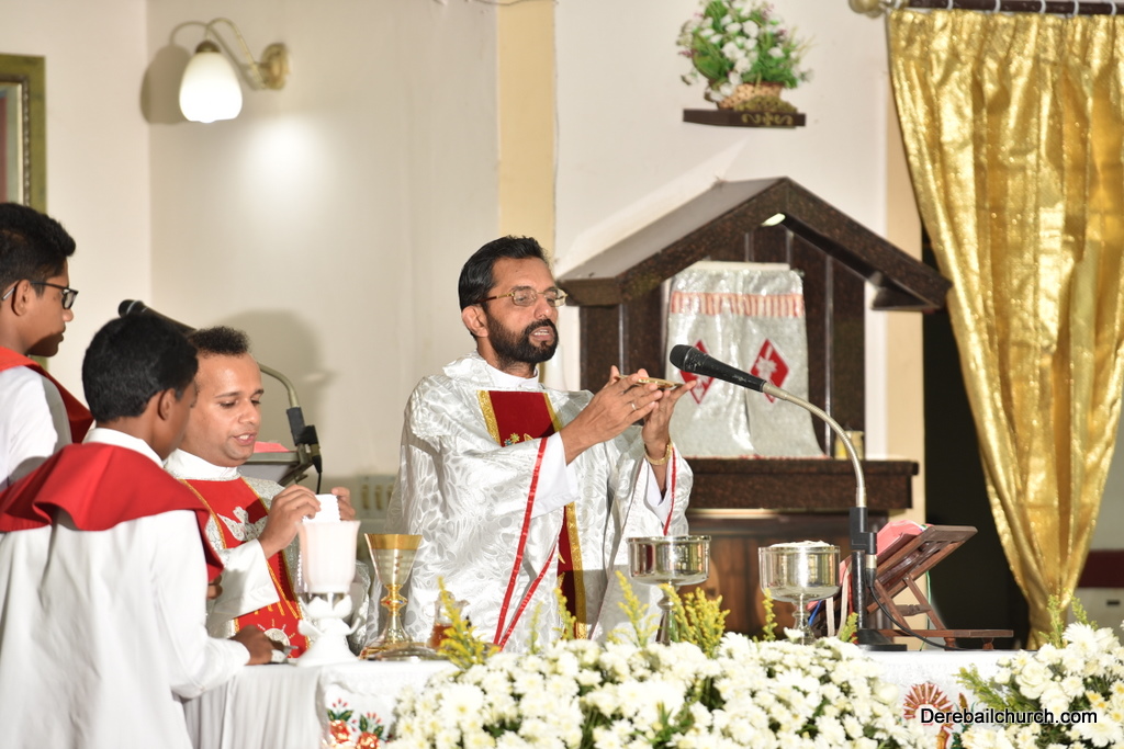 As preparation for the annual parish feast of Most Holy Redeemer Church, Derebail, the Confraternity Sunday (Compricho Aithar) was observed on 28th October, 2018 with gaiety and devotion. The entire parish got together in huge numbers on this blessed day. The Eucharistic celebration began at 04.30 PM with Rev. Fr. Boniface Pinto being the main celebrant offered mass along with Rev. Fr. Austin Peter Peris and Rev. Fr. Gratian Alvares. In his homily he said that Eucharist is the centre of our Christian life. The Eucharist binds us together in family and at large at the Parish community as one body.