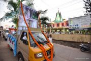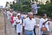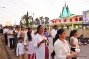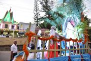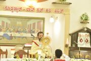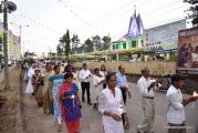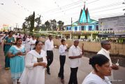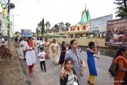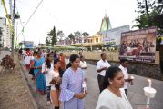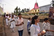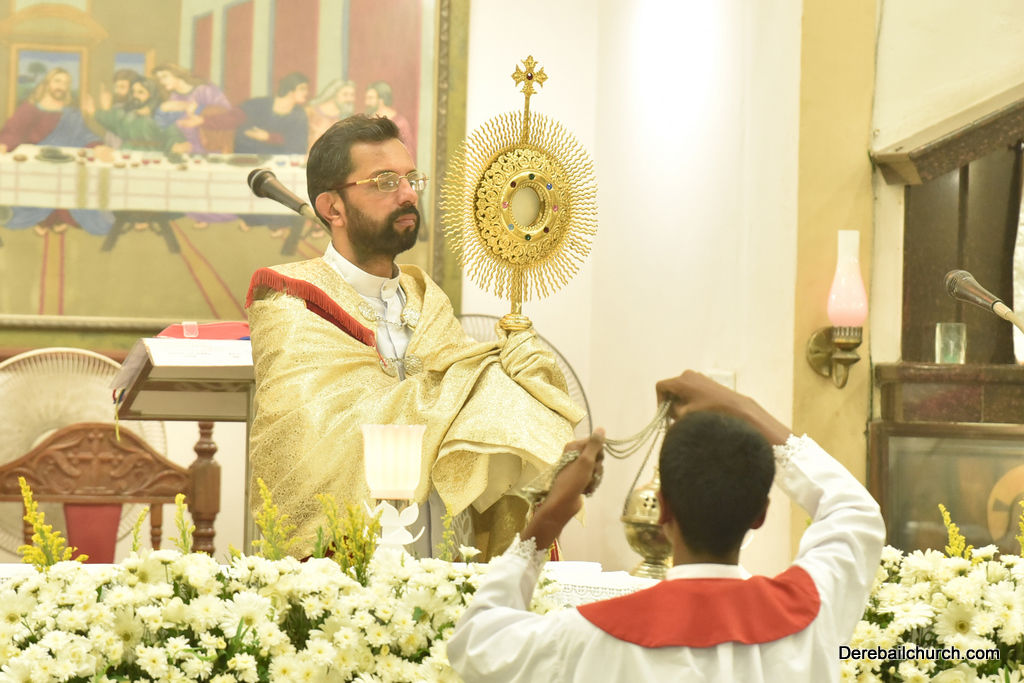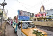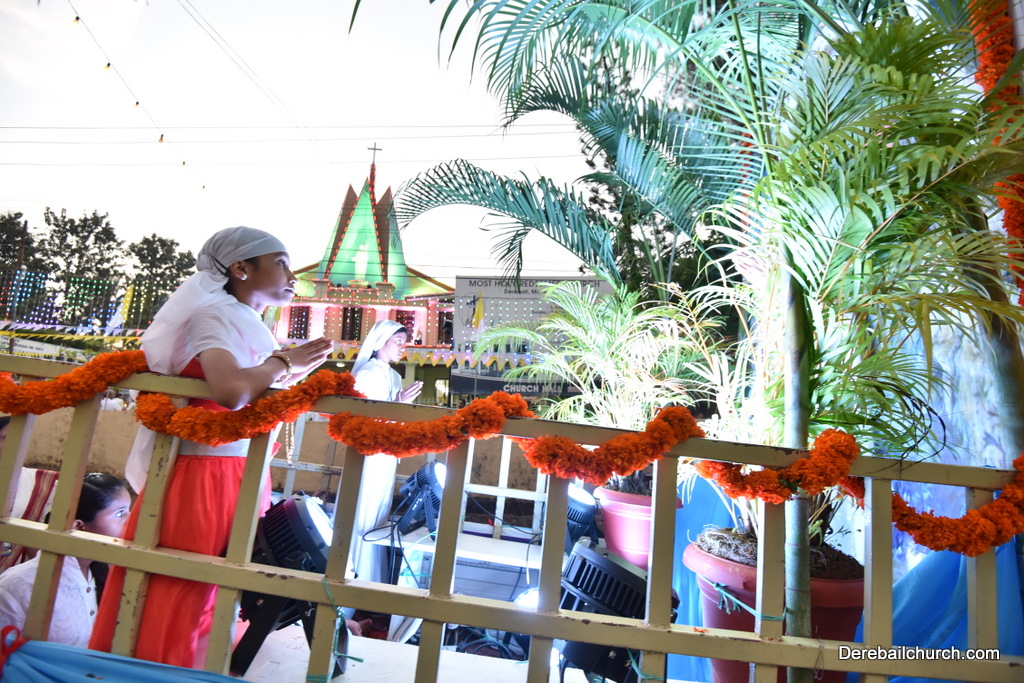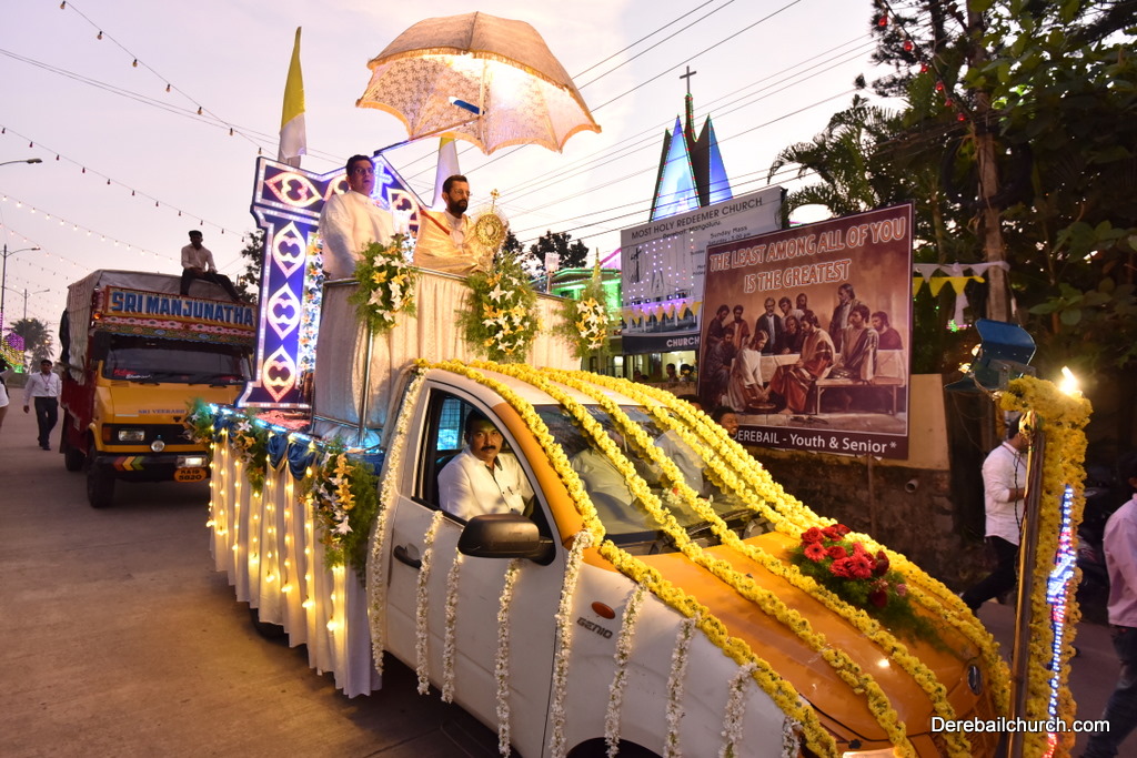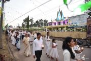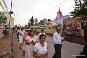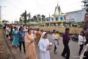 After the mass the Holy Eucharist adorned in a golden coloured tabernacle and mounted on a decorated vehicle was taken in procession through the main road and the faithful followed the procession. The Joy Star band played devotional hymns and the choir and the faithful added sweet voice to the melody. It was a pleasant sight to see the procession with quotes from scriptures, Tablauex from various wards, associations and lighted candles in their hands.