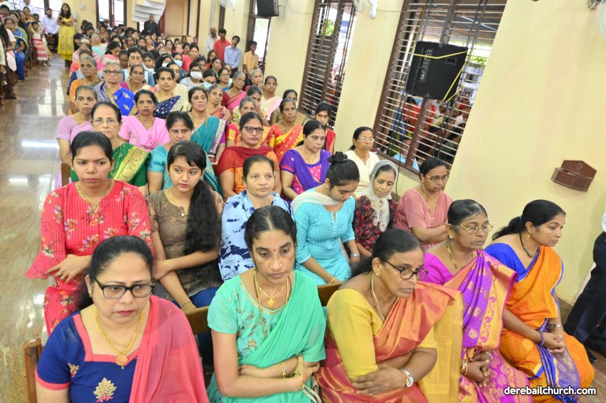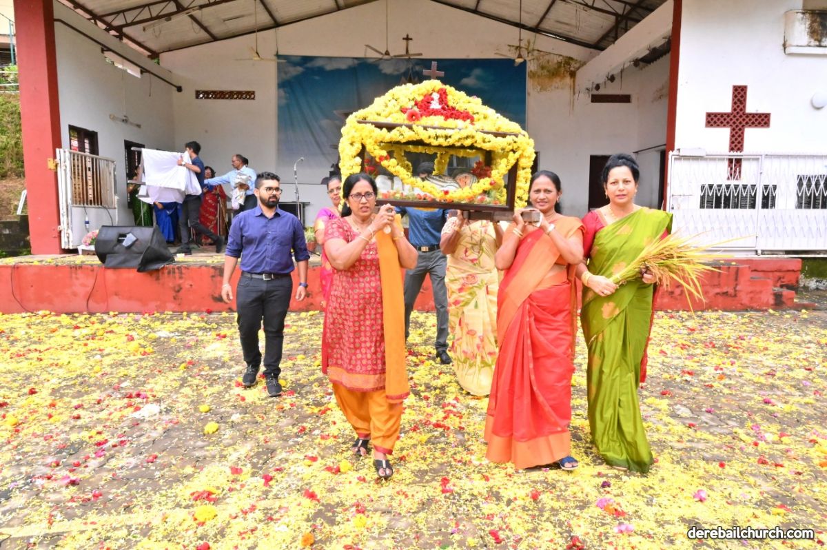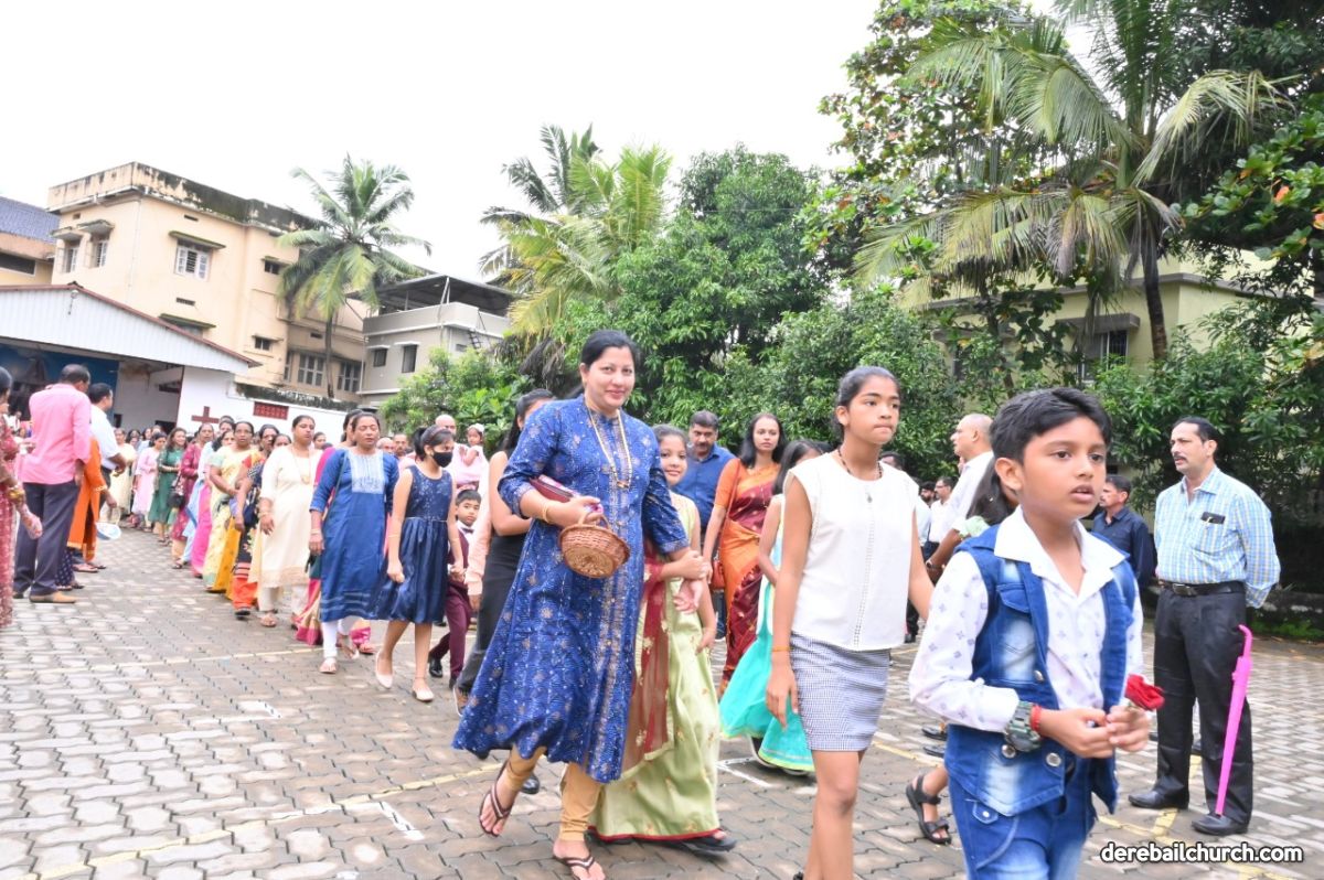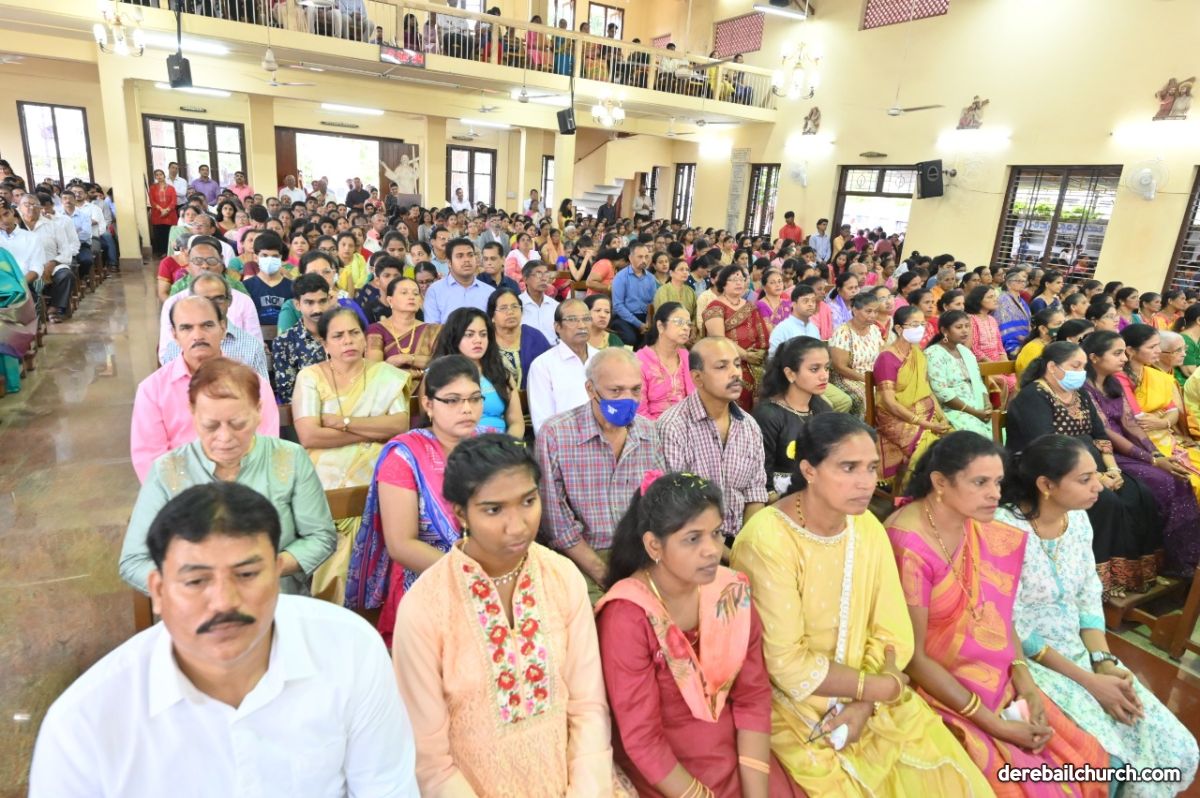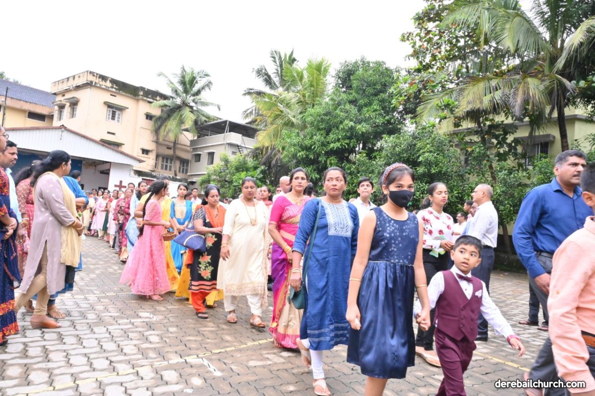 'Monthi Fest' or the Feast of Nativity of Blessed Virgin Mary was celebrated at Most Holy Redeemer Church Derebail on Thursday, 8 September, 2022. Preparations for the Feast was done with nine days of Novena participated by large number of people very specially children. The Novena masses were held at 5.30 in the evenings, followed by Novenas prayers and offering of flowers in front of the Grotto. The kids were offered with variety of sweets during the Novena days.
