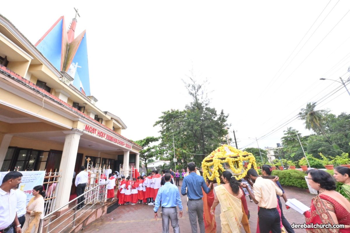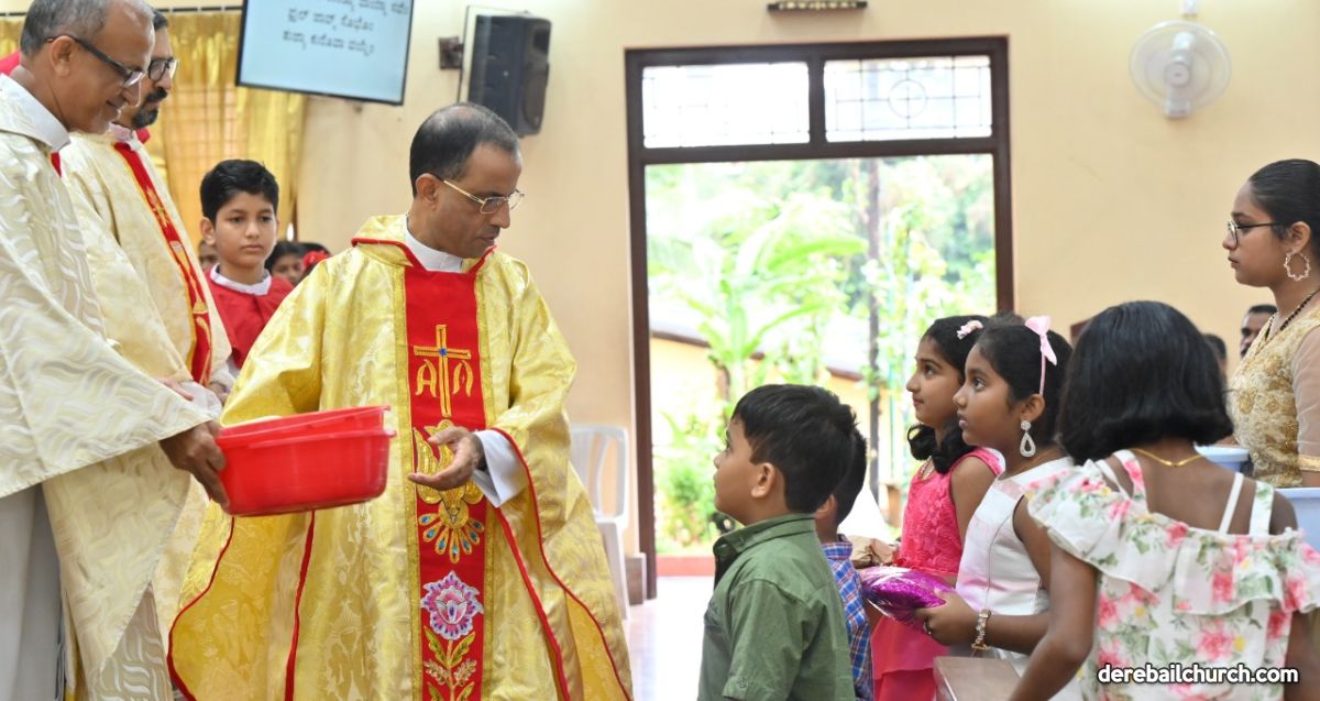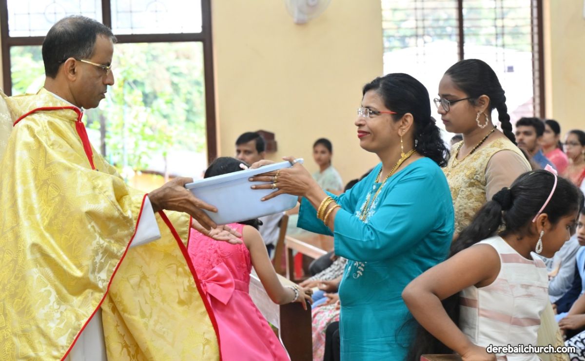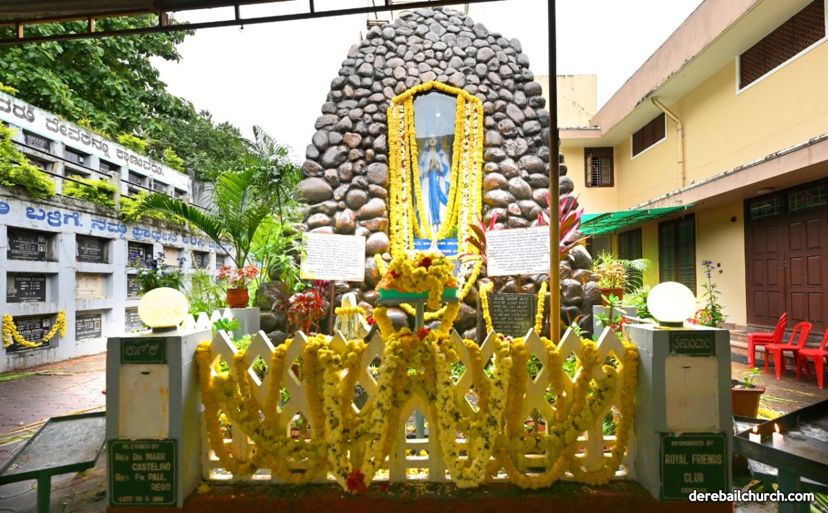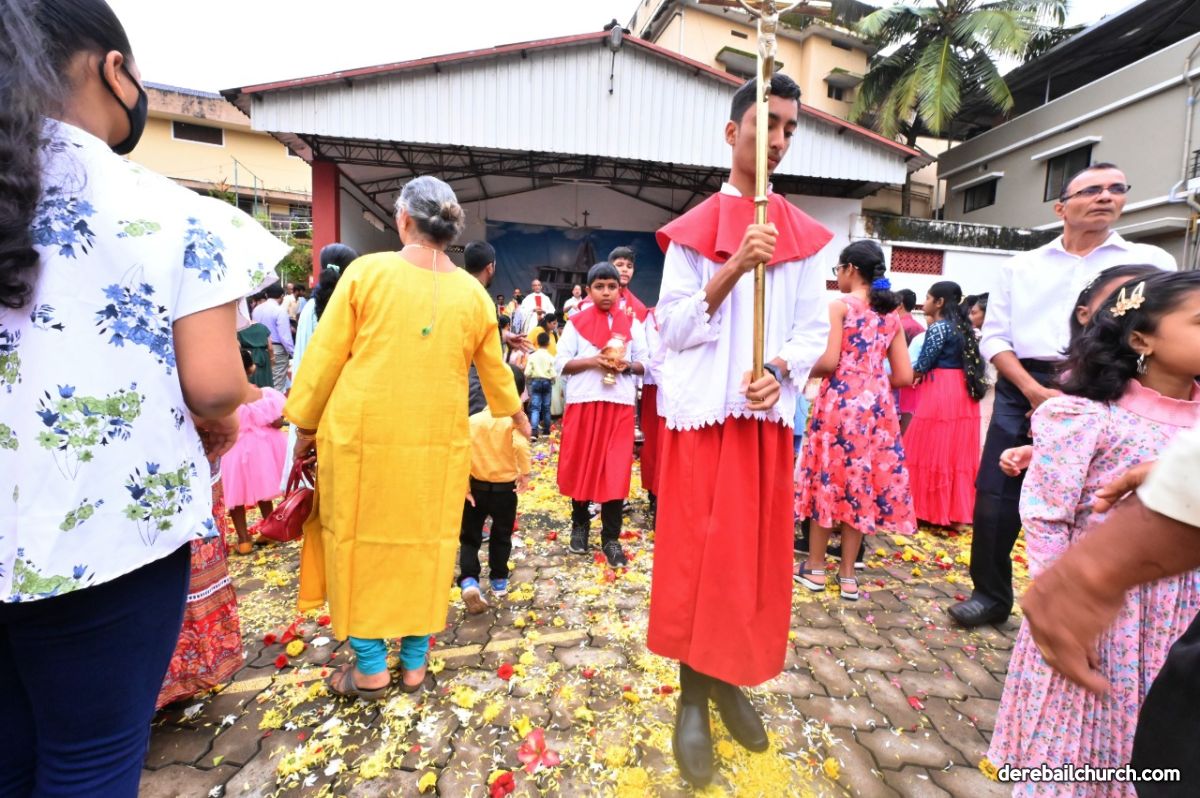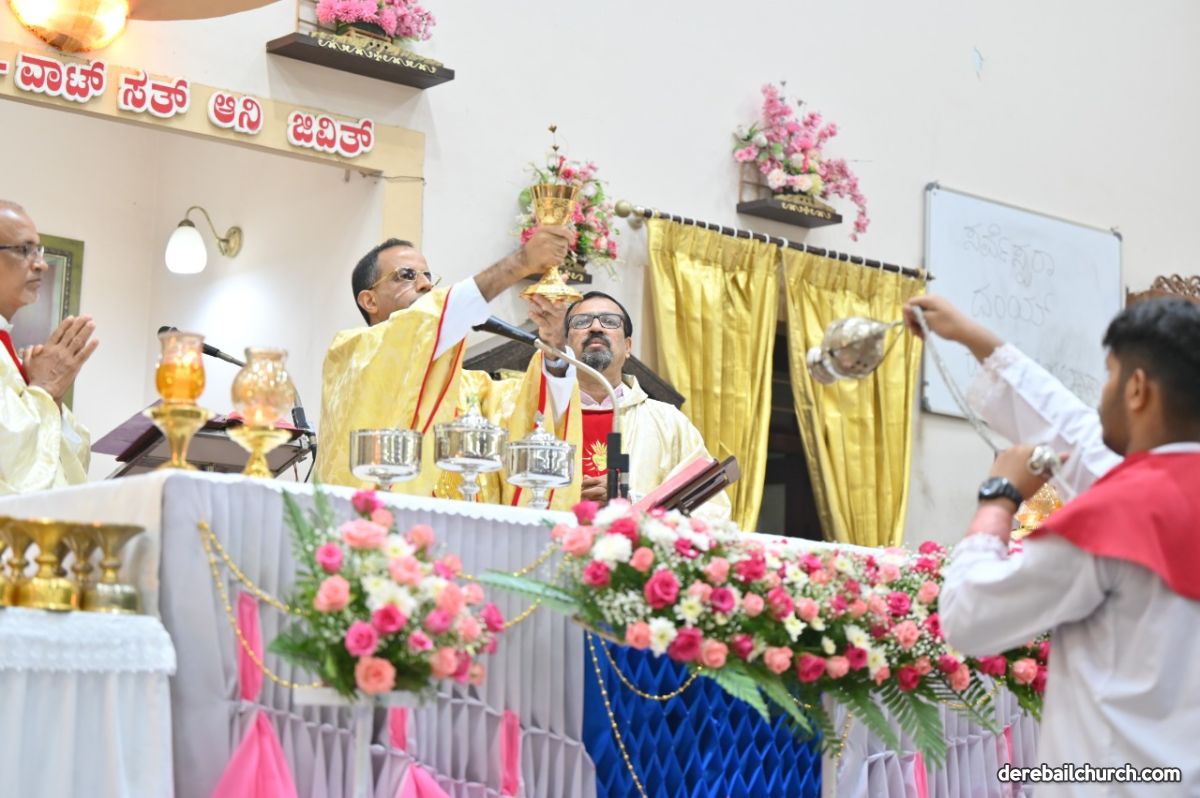 'Monthi Fest' or the Feast of Nativity of Blessed Virgin Mary was celebrated at Most Holy Redeemer Church Derebail on Thursday, 8 September, 2022. Preparations for the Feast was done with nine days of Novena participated by large number of people very specially children. The Novena masses were held at 5.30 in the evenings, followed by Novenas prayers and offering of flowers in front of the Grotto. The kids were offered with variety of sweets during the Novena days.