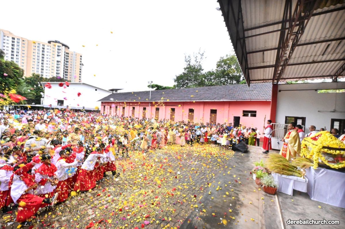 The festivity within the church premise was amplified with the music of brass band and the sugarcane that was distributed to the parishioners.