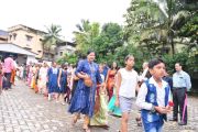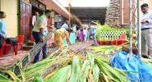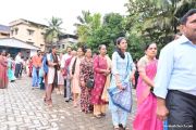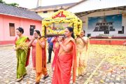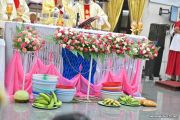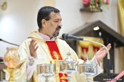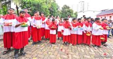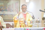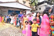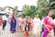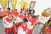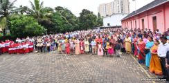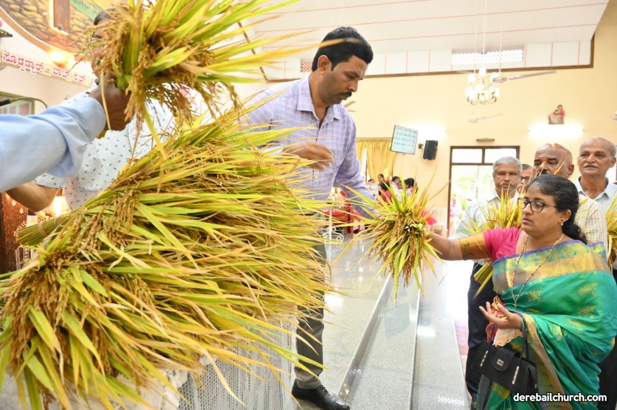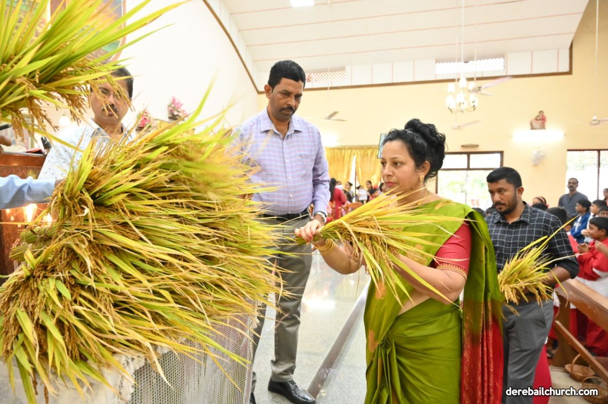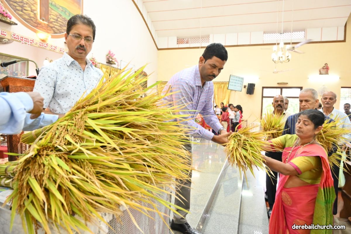On the 8th of September, the Feast day, the parishioners assembled at Holy Family School Grounds at 7.30 a.m. where the ceremony began with a prayer service and the blessing of the new paddy grains. The ceremonial festal procession was rendered colourful with decorated Statue of Infant Mary, Brass Band, and choral singing. The solemn Eucharistic celebration was presided over by Fr Joseph Martis, Parish Priest and concelebrated by Fr Gerald Pinto and Fr Joel Pais. In his Homily, Fr. Joseph highlighted the significance of the day. He underscored the main aspect of the feast, namely family as the fundamental gift of God and how this feast should be an occasion to sit and eat together, visit the sick members of our families, and spend some time with the older folks of the family.