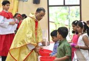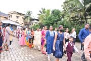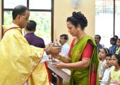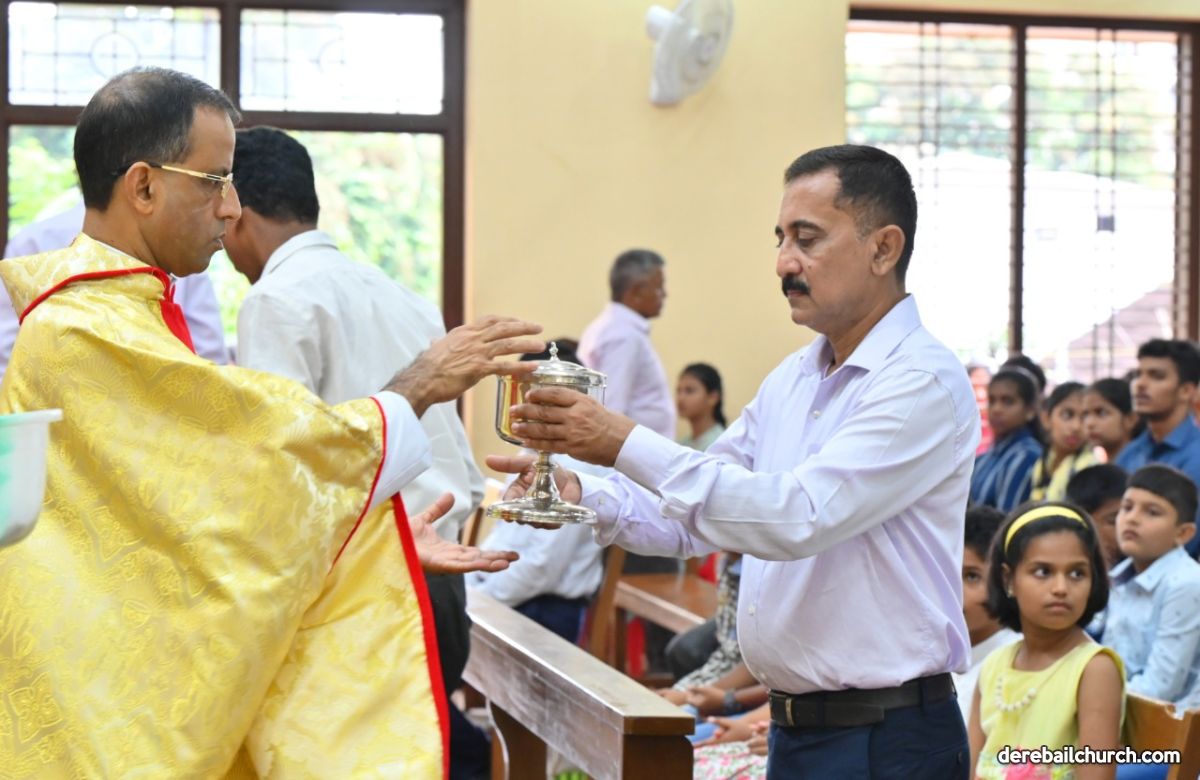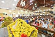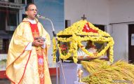 After the final blessing, the newly blessed Paddy grains were distributed by the ward Gurkars. The Parish Priest thanked all those who render their selfless service regularly in the church. He specially thanked the parishioners who had worked hard for the success of Monthi Fest Celebrations. He expressed gratitude to the parishioners who had generously contributed towards the feast expenses and they were honoured with a Mordom Candle. The Children's Choir added joy and vivacity to the Eucharistic solemnity.