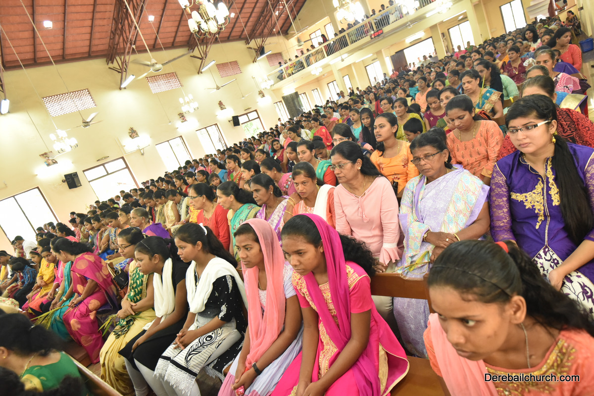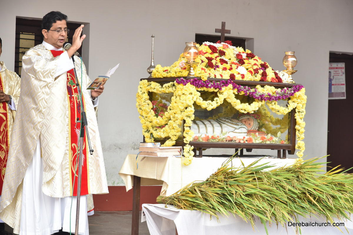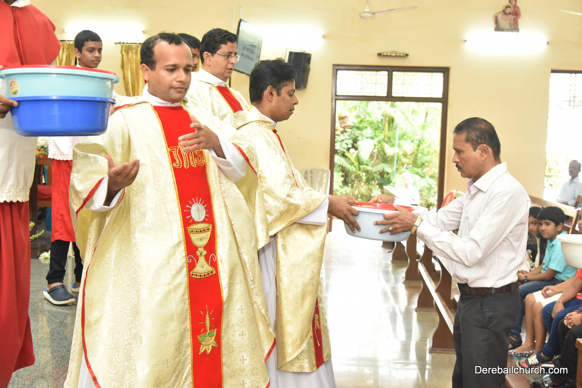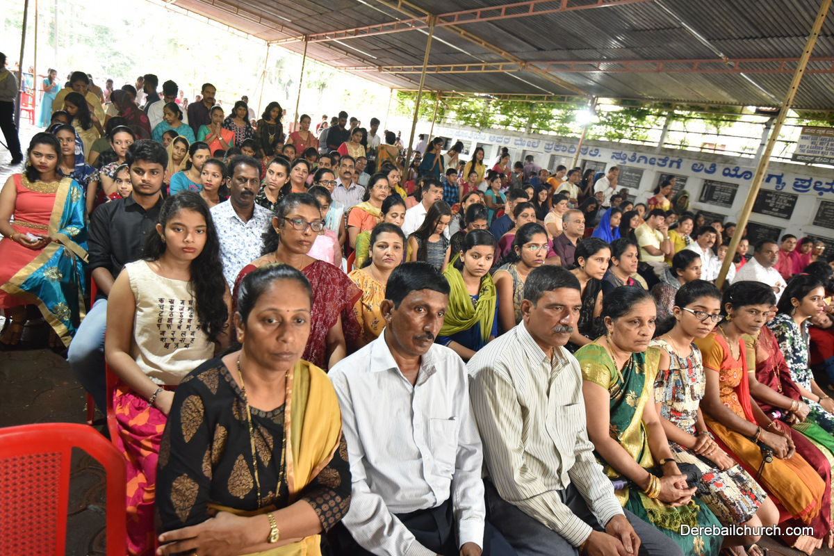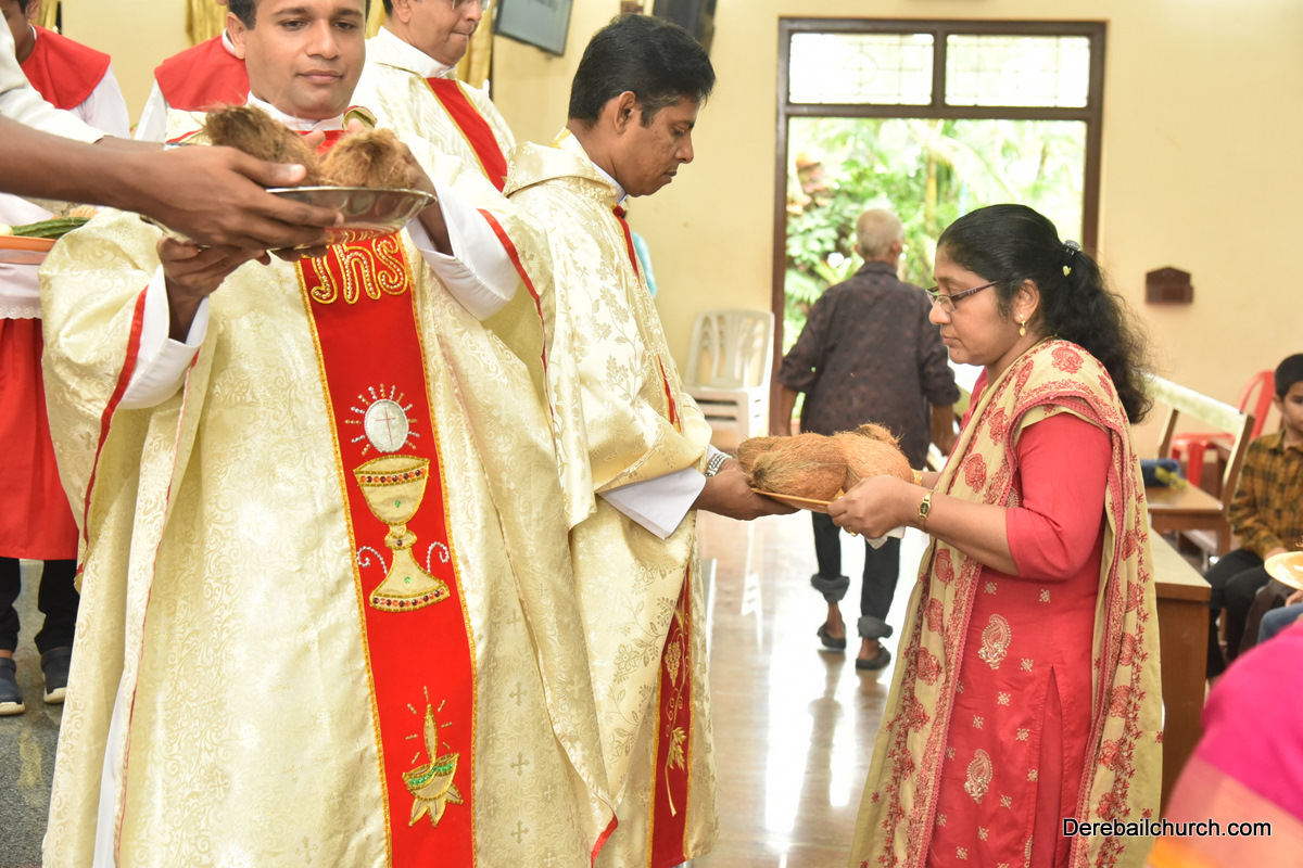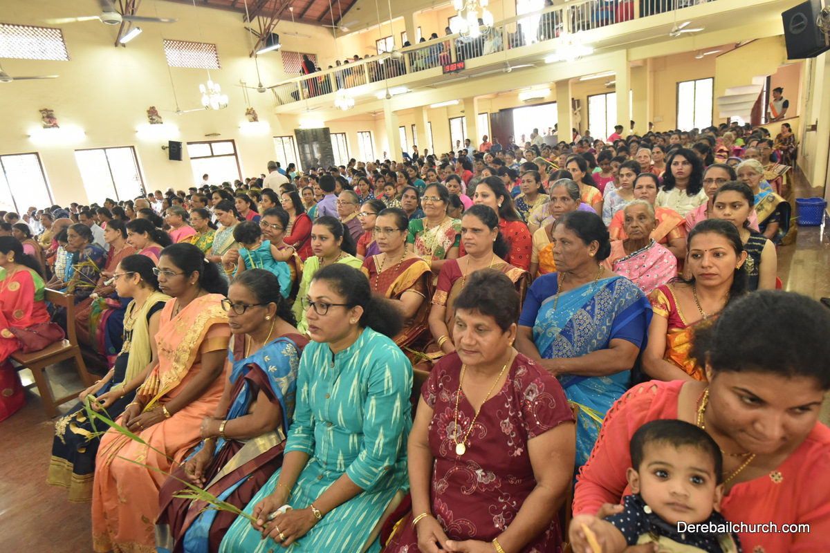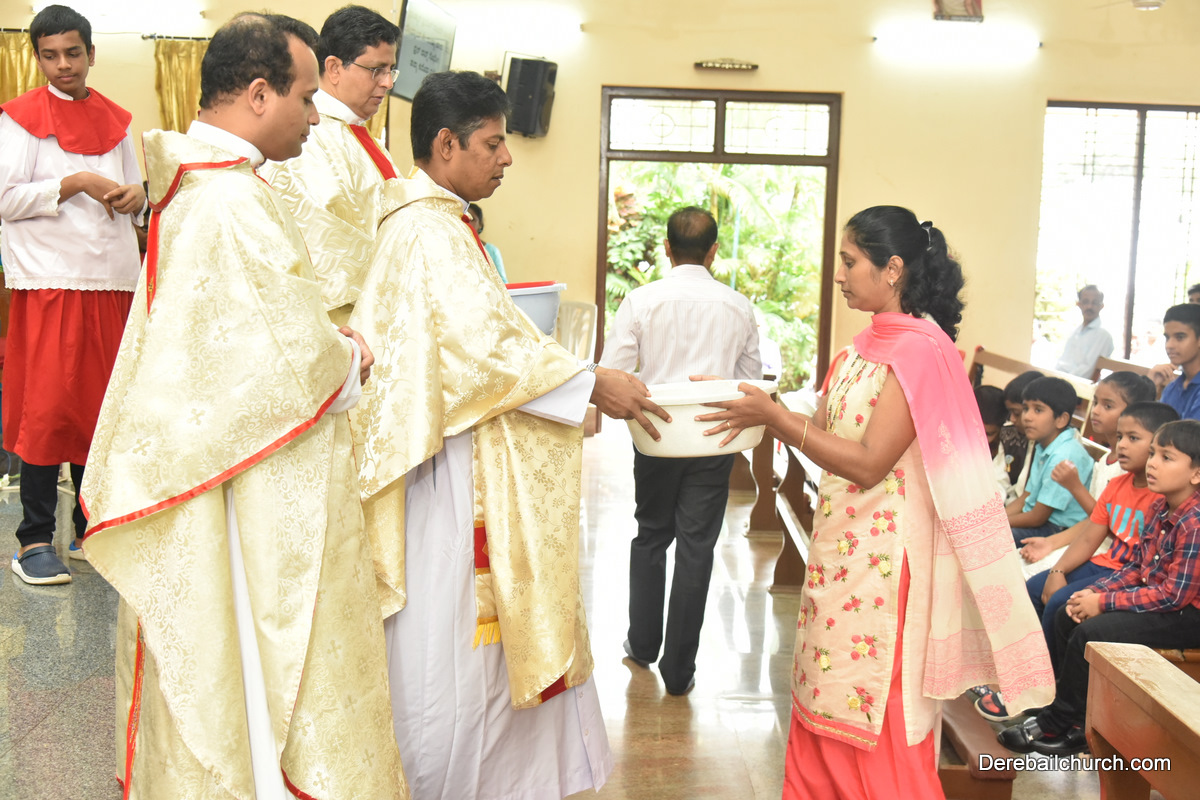 The Nativity celebrations at Derebail Parish began at 07:30 AM at the Holy Family school grounds. A large number of parishioners and children gathered with great devotion. The ceremony began with prayer service and blessing of the new grains. This was followed by the veneration of statue of Infant Mary and the procession.