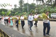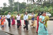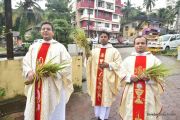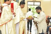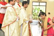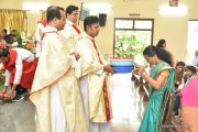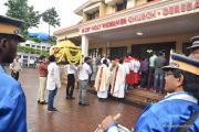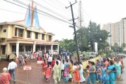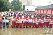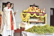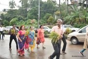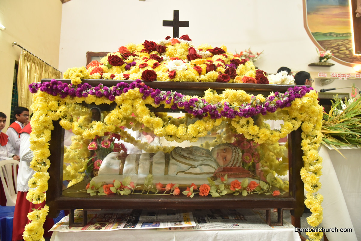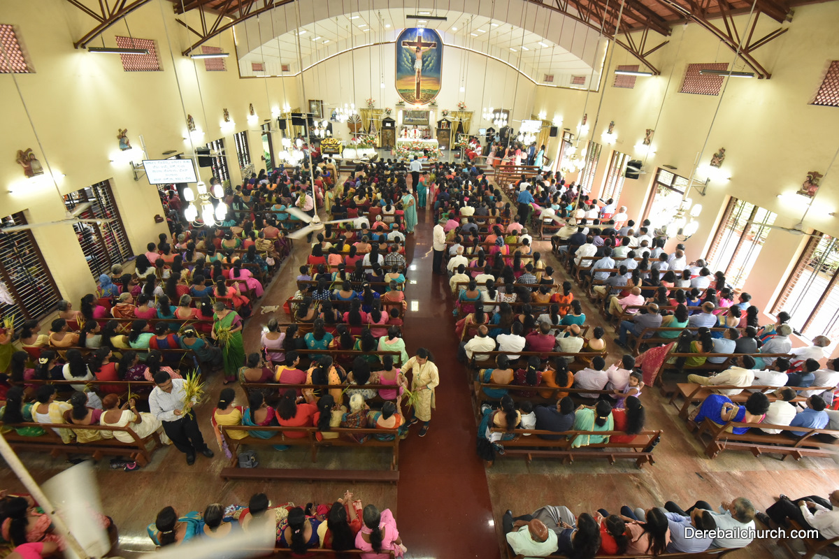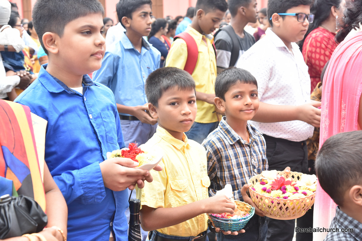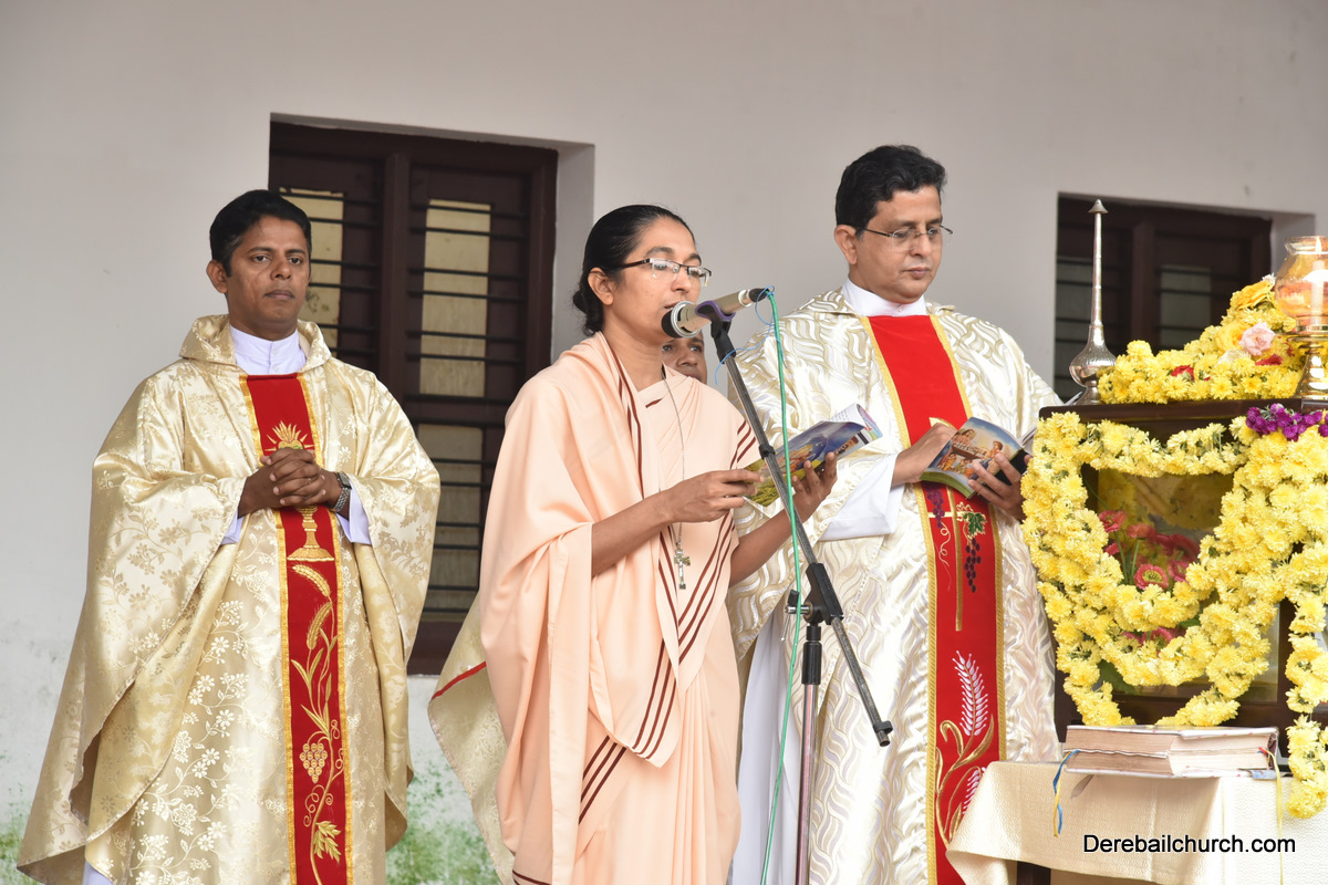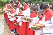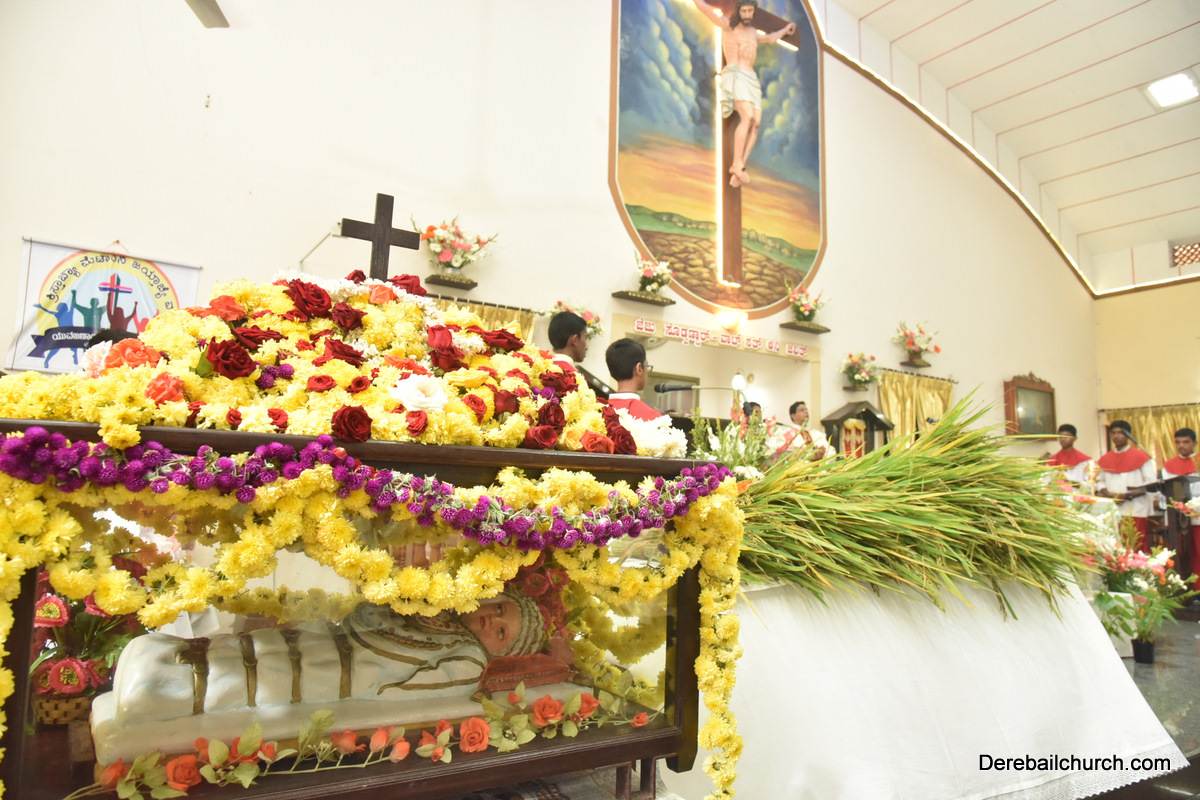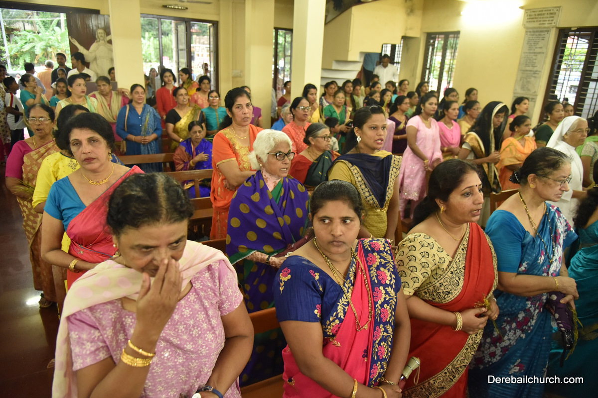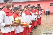 The Nativity celebrations at Derebail Parish began at 07:30 AM at the Holy Family school grounds. A large number of parishioners and children gathered with great devotion. The ceremony began with prayer service and blessing of the new grains. This was followed by the veneration of statue of Infant Mary and the procession.