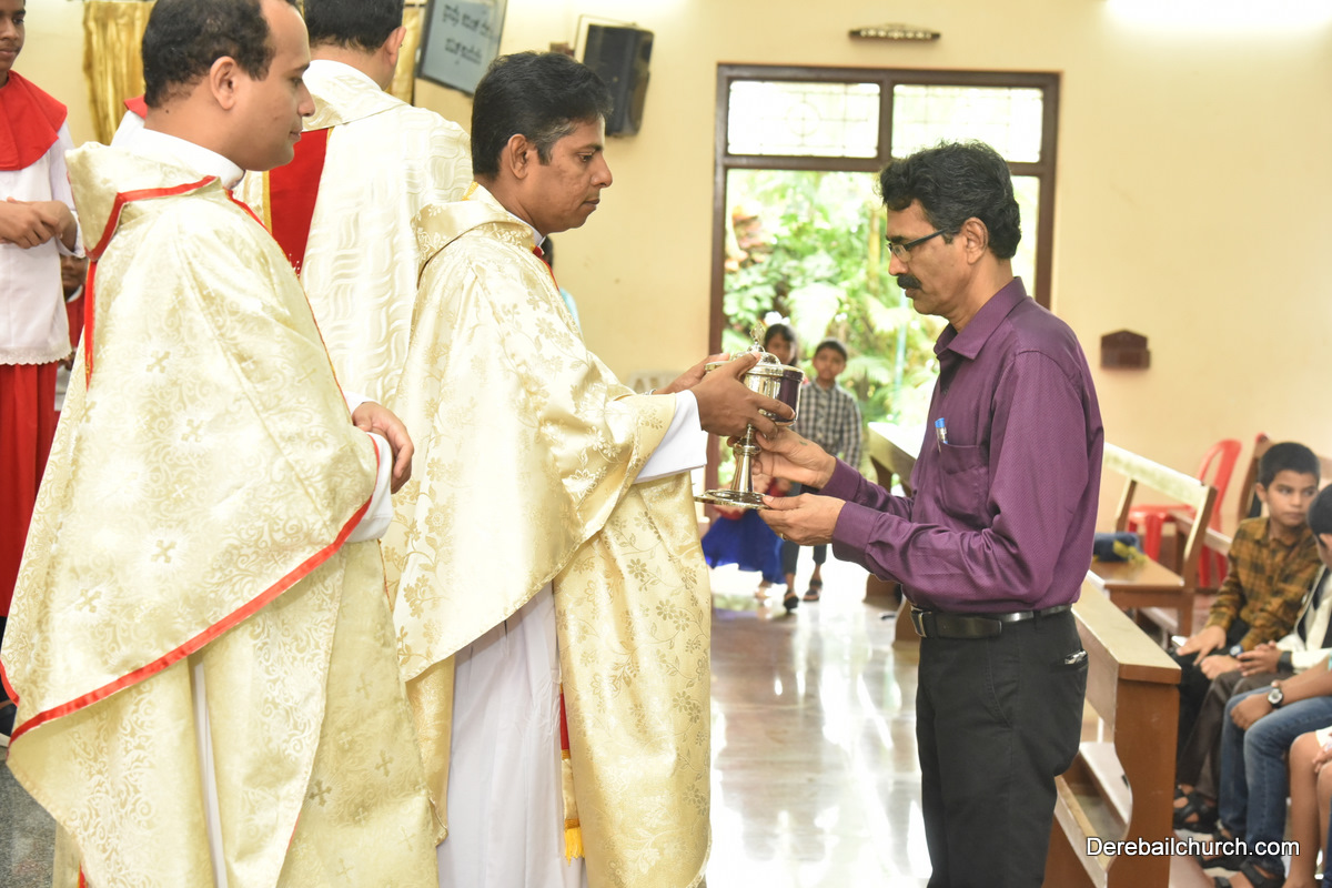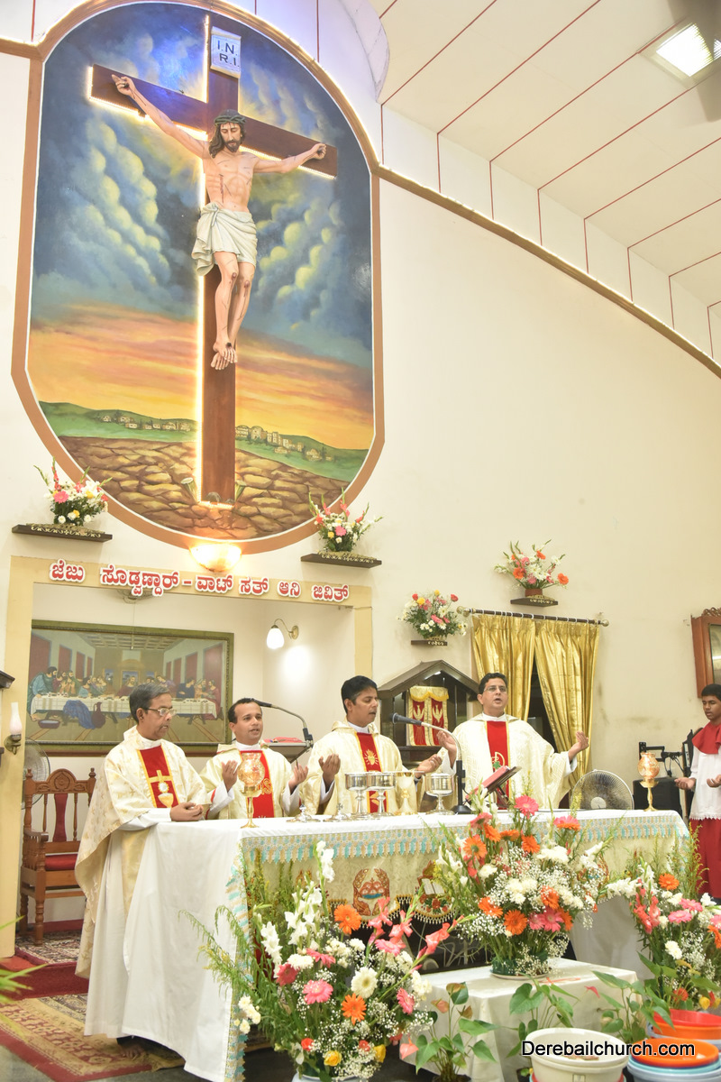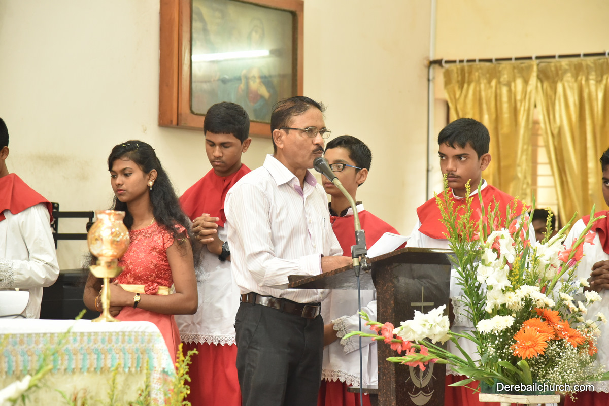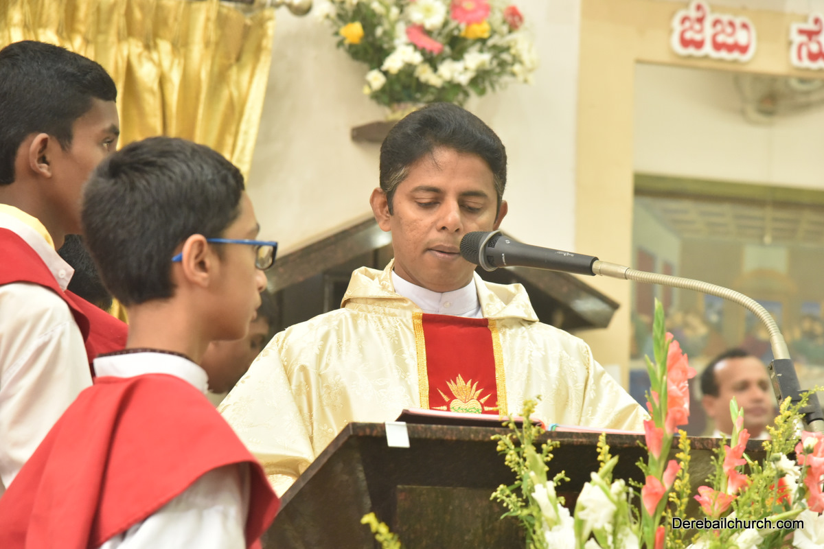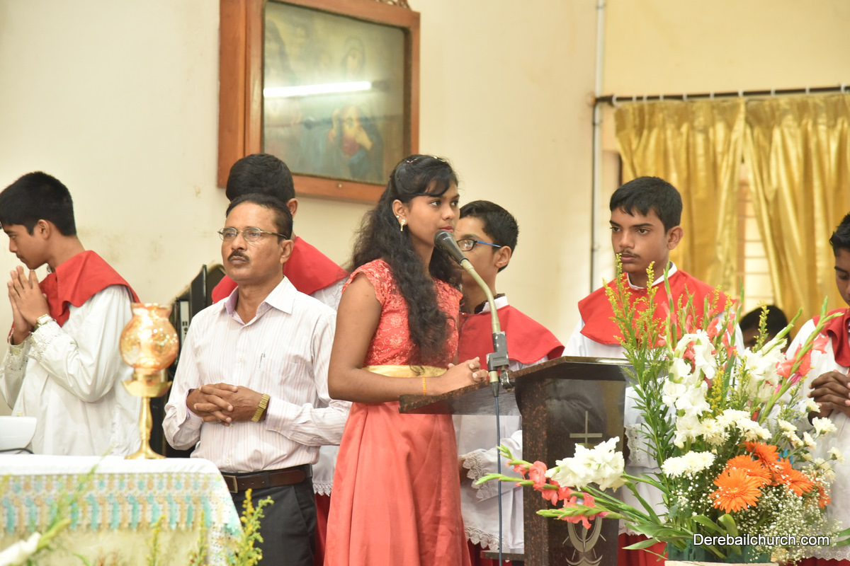 The Eucharistic celebration began subsequently. Rev. Fr. Praveen Leo Lasrado was the main celebrant, Parish priest Rev. Fr Austin Peter Peres, Residential priest Rev. Fr. Gratian Alvares along with Rev. Fr. Walter Pinto concelebrated the mass. In the homily Fr. Leo briefed about the significance of celebrating nativity. He emphasized on Mother Mary's role in increasing our faith in the will of God. He called everyone to ponder on the question over how deep our faith is in today’s world.