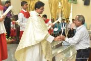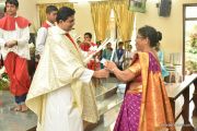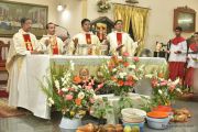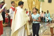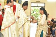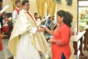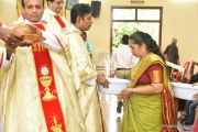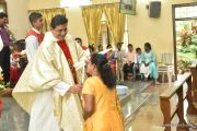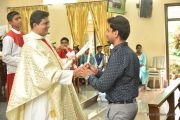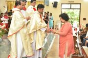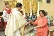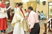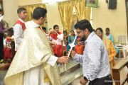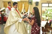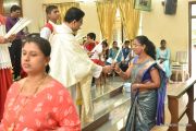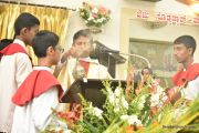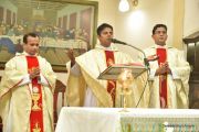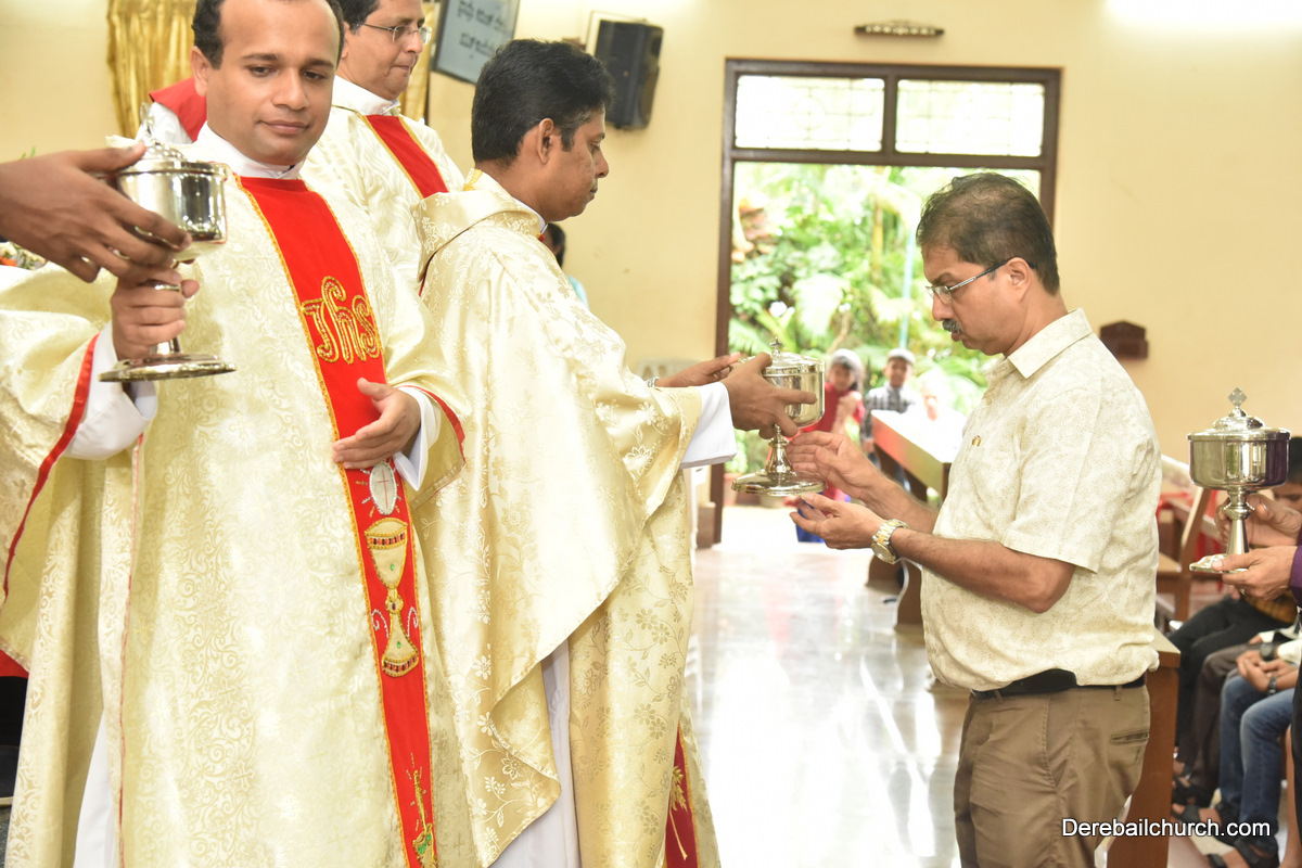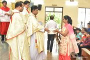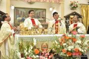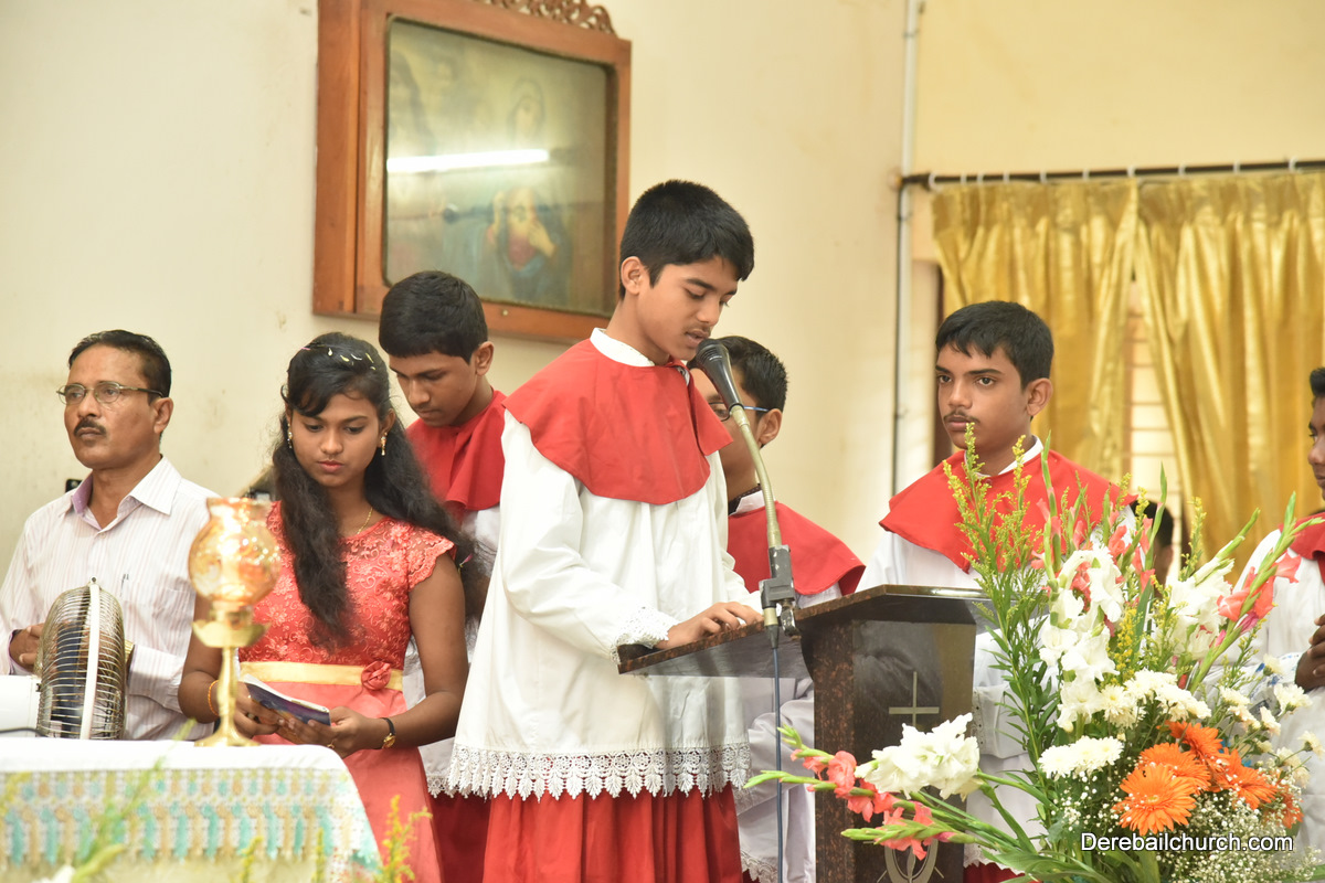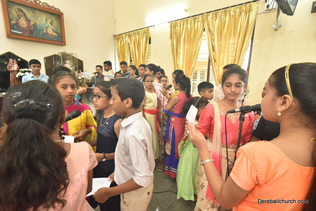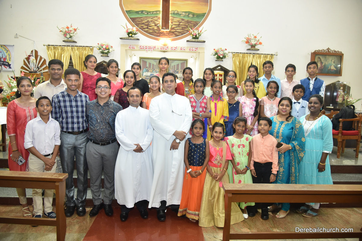 The Eucharistic celebration began subsequently. Rev. Fr. Praveen Leo Lasrado was the main celebrant, Parish priest Rev. Fr Austin Peter Peres, Residential priest Rev. Fr. Gratian Alvares along with Rev. Fr. Walter Pinto concelebrated the mass. In the homily Fr. Leo briefed about the significance of celebrating nativity. He emphasized on Mother Mary's role in increasing our faith in the will of God. He called everyone to ponder on the question over how deep our faith is in today’s world.