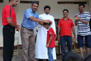 At 3 PM, all the young and not so young gathered together and were ready to spend some energy and have fun from the games that were organized for them. Games such as bombing the City, Dog and the Bone, Passing the cup on the straw for tiny tots and children from standard 2nd to 8th made the elders gathered wish they were back to their childhood again. Aiming the wicket for High school children and the most awaited traditional games such as Seven Tiles (Lagori), Kabadi, and breaking the Pot ensured there was endless fun for all participants and spectators as well.