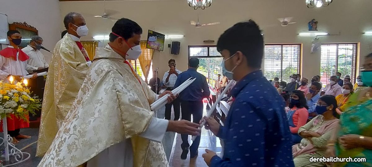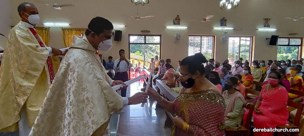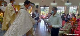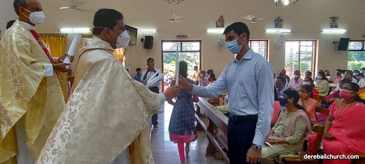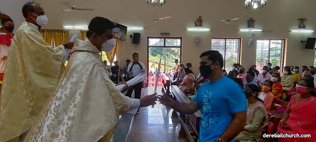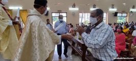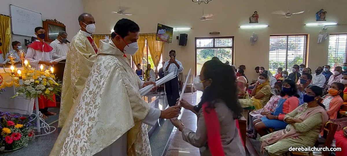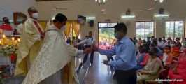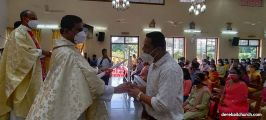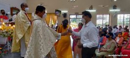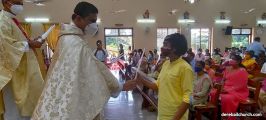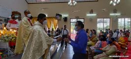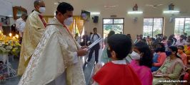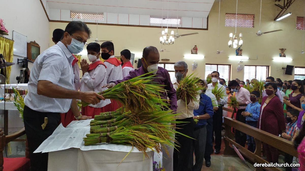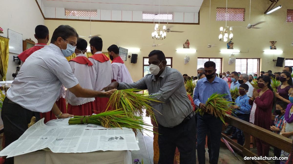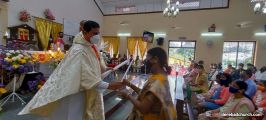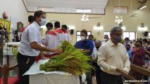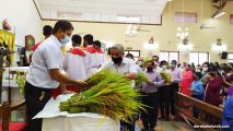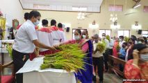 The New Corn, which was brought in by the Gurkars in a procession was then blessed and distributed. The Parish Priest, Fr Austin requested the Gurkars who are the leaders to distribute the New Corn to all the parishioners. The melodious choir by the youth added to the solemnity of the ceremony. Rev Fr Austin Peres thanked everyone who helped in making the ceremony and 9-day novena successful. Blessed candles were distributed to the sponsors.