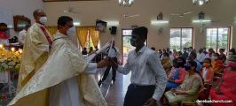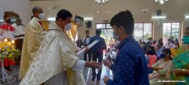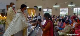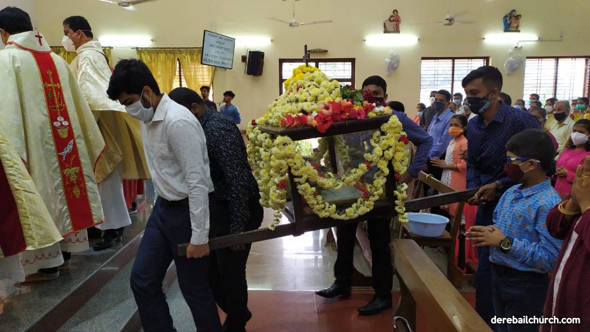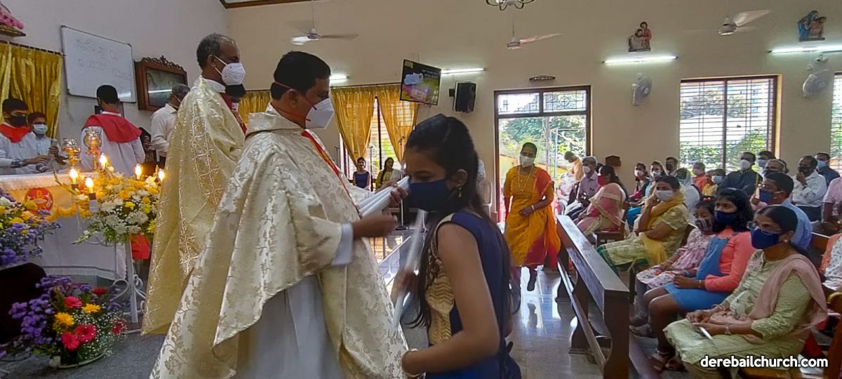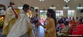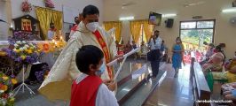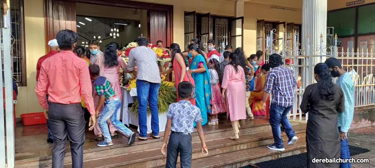 As a preparation for the feast of Nativity, children take flowers and offer them to Mother Mary on nine consecutive days preceding the feast. The Nativity Feast on September 8th was celebrated with religious fervor at The Most Holy Redeemers Church, Derebail at 7:30 AM.