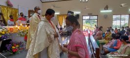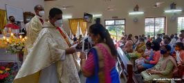 The Eucharistic Celebration was offered by Rev Fr Jesudas D'Costa, Rev Fr Austin Peres, Rev Fr Gerald Pinto, and Fr. Walter Pinto. In his homily, Fr Jesudas explained the virtues of Mary as our Mother, the sacrifices she made as the mother of our Lord Jesus Christ, and how she is a perfect role model for all women and especially for mothers to emulate. He also said that it is a festival of family.