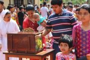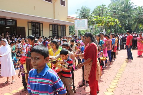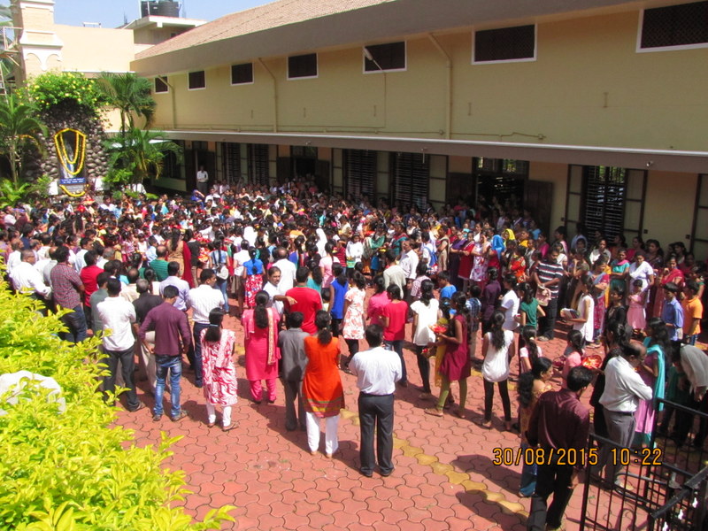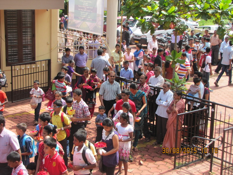 A feast that is connoted to be a feast celebrating the togetherness of a family is the NATIVITY OF BLESSED VIRGIN MARY. The churches in Mangalore prepare for this blessed day by offering flowers and reciting novenas to Mother Mary for almost 10 days prior to September 8th.  It is the children who especially come to offer flowers. At Most Holy Redeemer Church ,Derebail the novenas began on the 30th of August where a lot of children and quite a few adults came with their share of flowers to offer to Mother Mary.