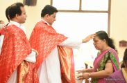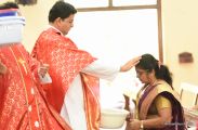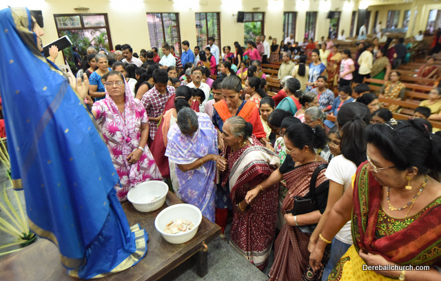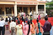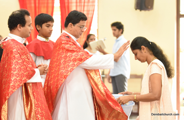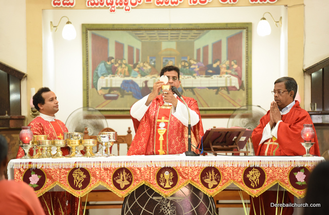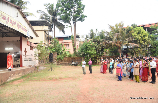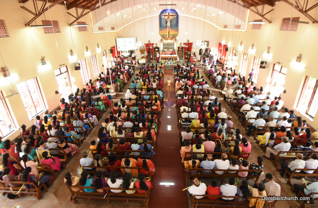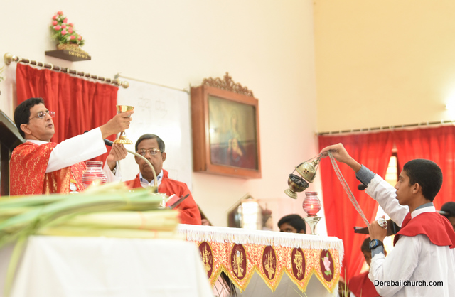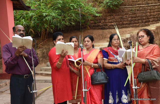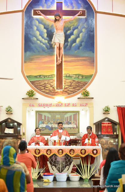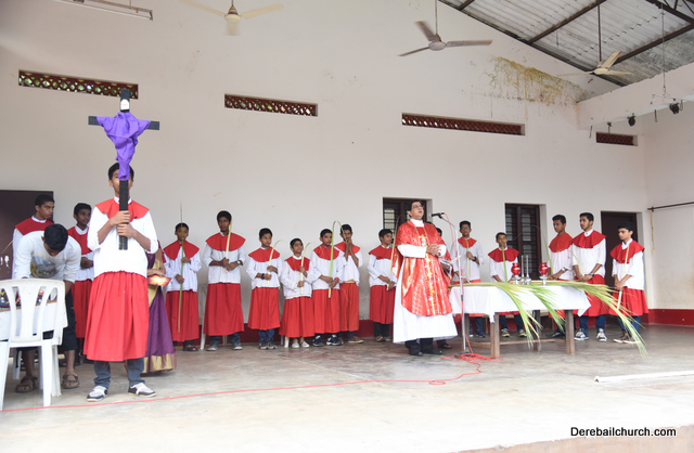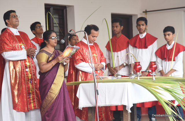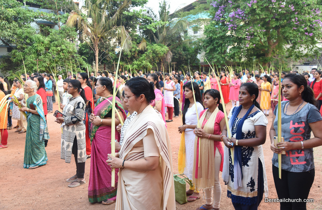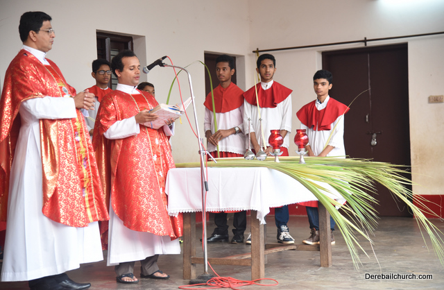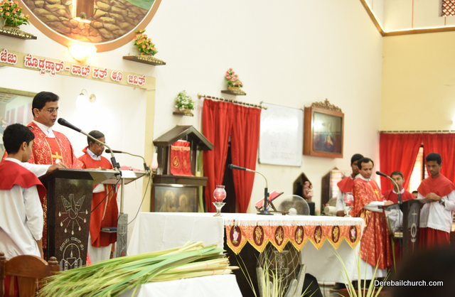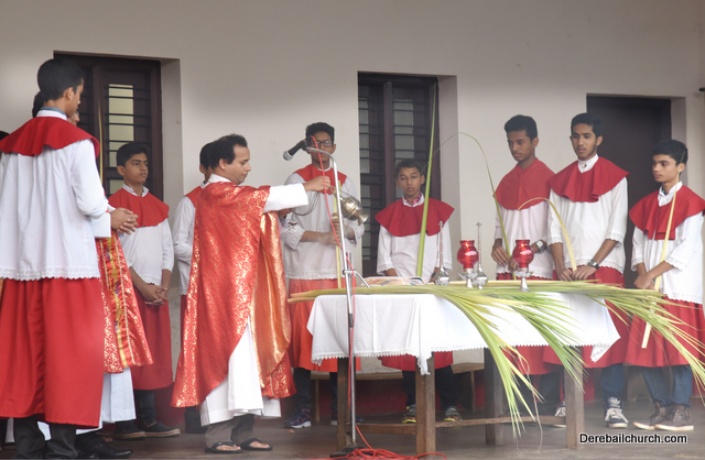 Palm Sunday marks the beginning of the Holy Week, a week that Christians all over the world spend on recollection of our Lord's great sacrifice and resurrection.  Palm sundaycommemorates Jesus's triumphal entry into Jerusalem. The Palm Sunday celebration at Most Holy Redeemer Church, Derebail commenced at 7 AM on the 25th of March, at Holy Family School grounds, Derebail. The coconut Palm symbolic of the olive palm with which Jesus was welcomed into Jerusalem was handed over to the Parishioners.  This was followed by a procession to the church.