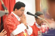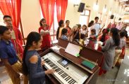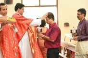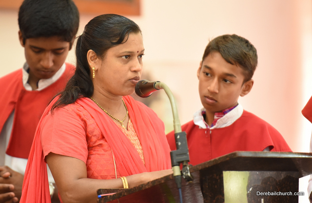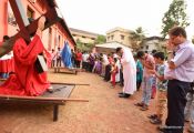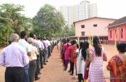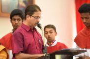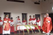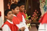 The Eucharistic Celebration followed. Rev Fr Austin along with  Fr. Walter Pinto and Fr. Gratian concelebrated the mass. The Gospel recollecting the passion of the Lord was read by the same. Fr. Austin rendered in his sermon the true significance of the Holy Week. The children's choir added to the solemnity of the service.
