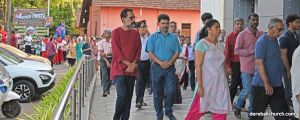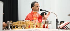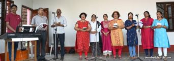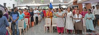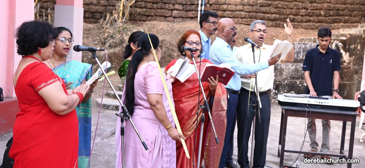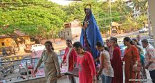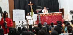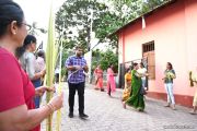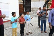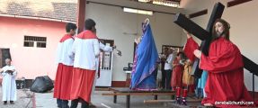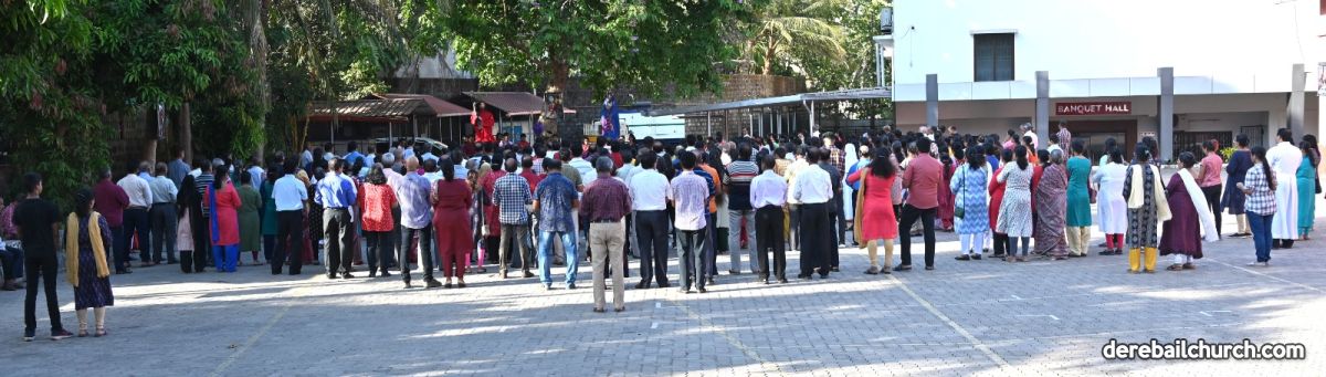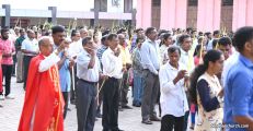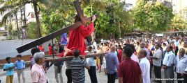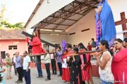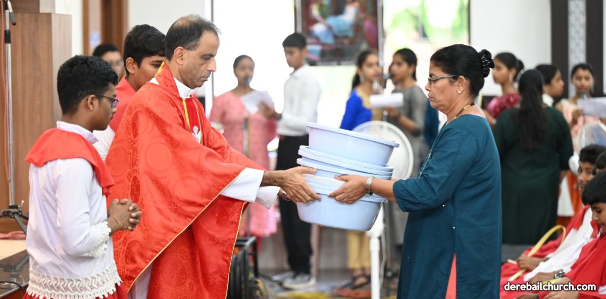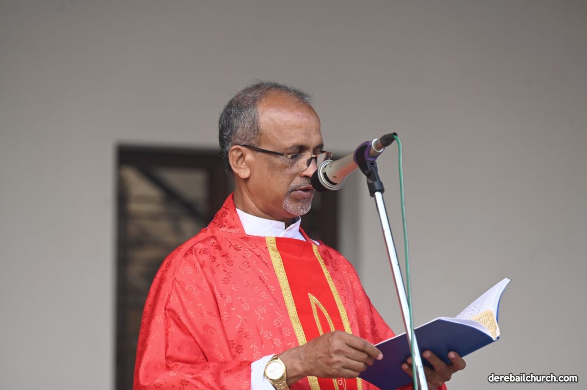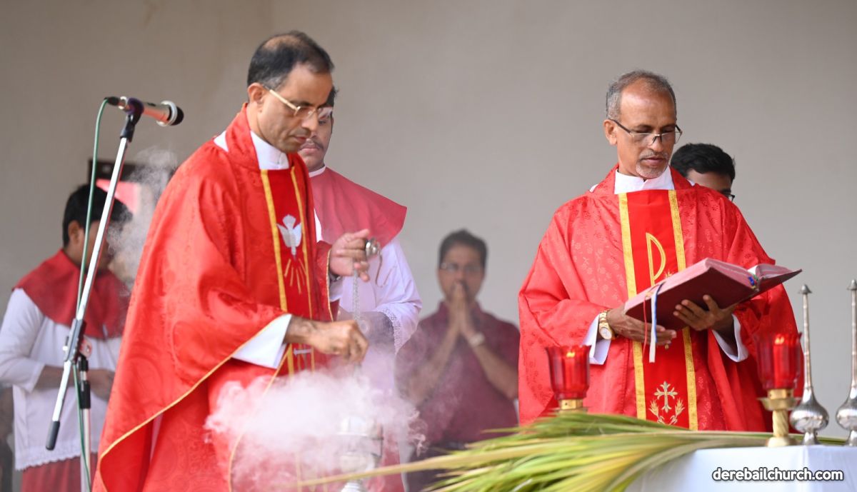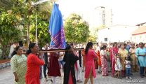The parishioners gathered at the Church Grounds at 7 AM, where the ceremony began with an opening prayer by Fr Gerald. The palms were blessed by Fr Joseph Martis, Parish priest, the Holy water was sprinkled on all parishioners by the priests. After this, the parishioners followed Rev.Fr.Joseph Martis and Rev.Gerald Pinto with palms in their hands to the church (hall). The covered Cross, thurible and incense, altar boys and then all the faithful followed.