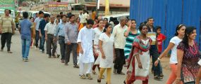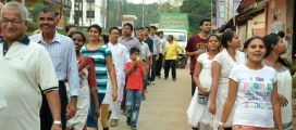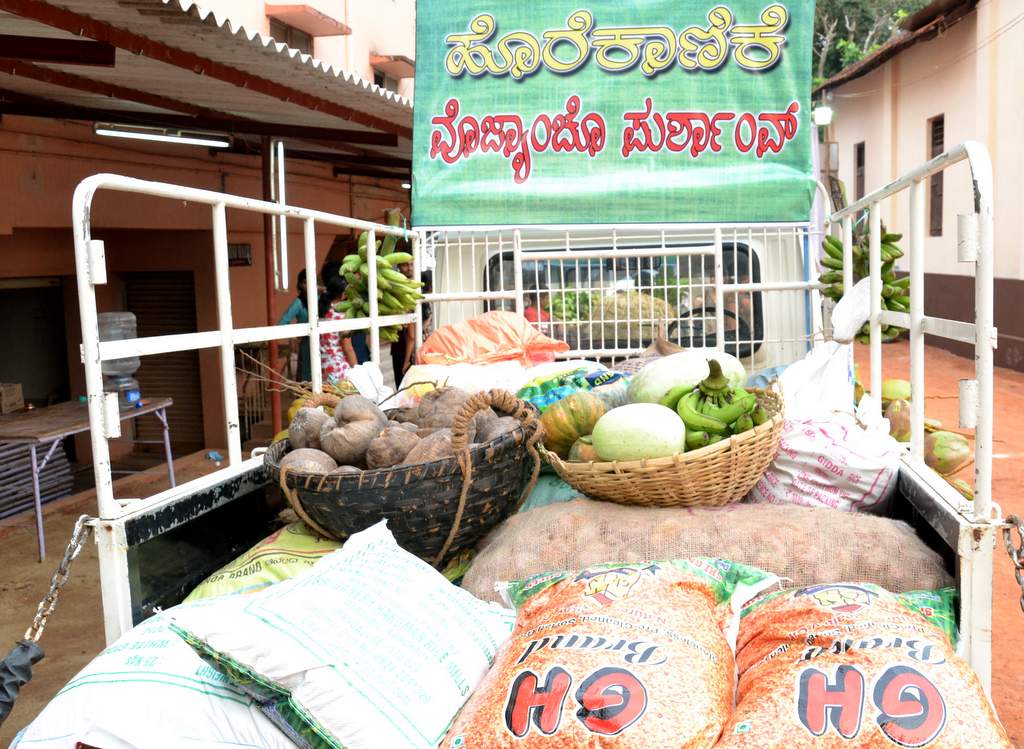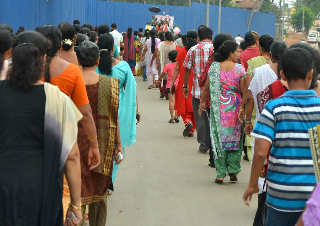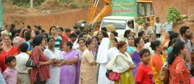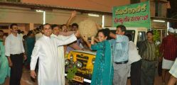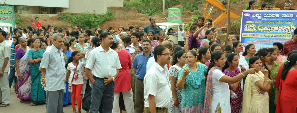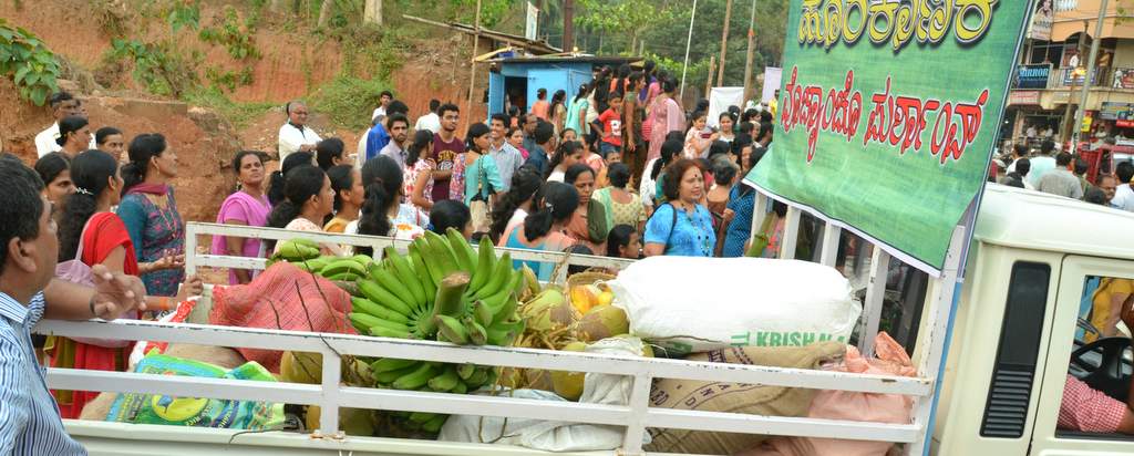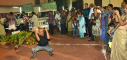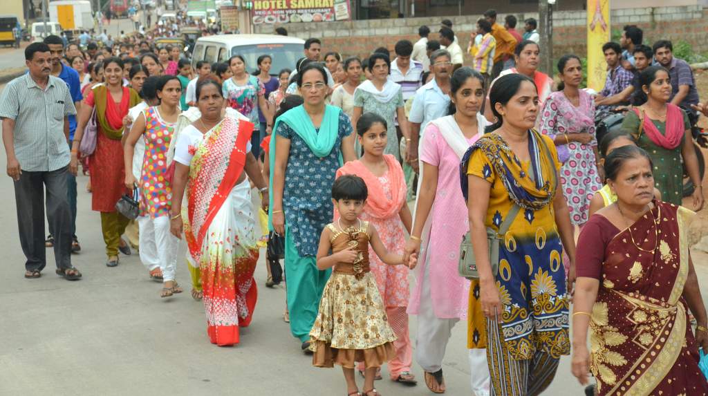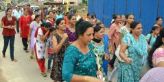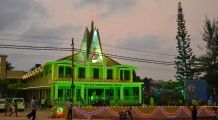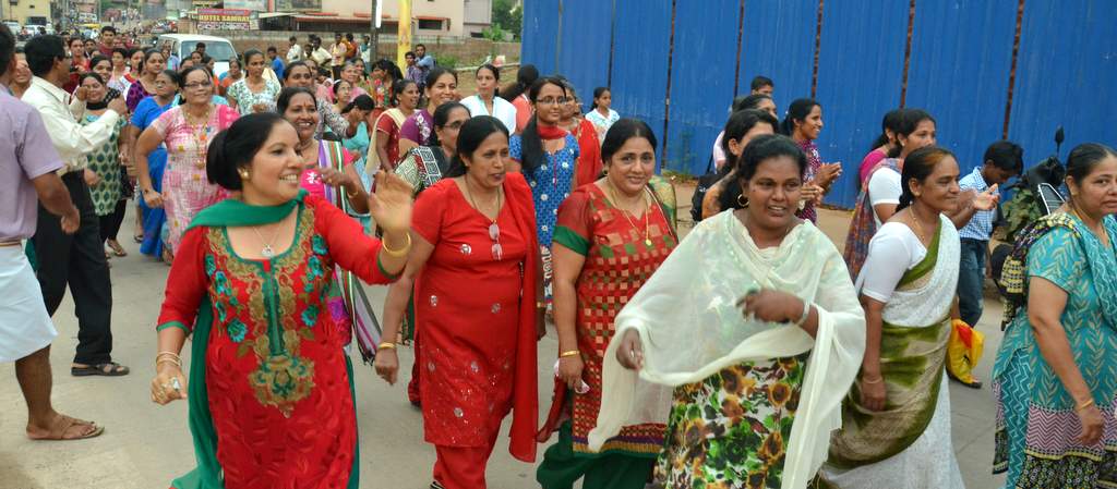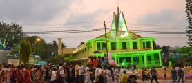 The Vojhen procession on the eve of the Platinum Jubilee Celebrations of the Most Holy Redeemer Church, Derebail started from Konchady at 6 PM on Saturday, 26th April. About 600 Parishioners, young and old alike assembled at Konchady and marched in a procession accompanied by the Band and trucks full of Vojhen for the community dinner planned on Sunday, 27th April in culmination of the Platinum Jubilee Celebrations. The procession passed through the main road in front of the Church till the Kuntikan Junction and then turned to enter the School Grounds to a traditional welcome of Betel Leaves and Water by the Parish Priest, Rev. Fr. Peter D’souza and Assistant Parish Priest, Fr. Edwin Monis. The Vojhen items were then lowered from the trucks and gathered at the main cooking place in readiness for the cooking preparations slated to start at 7 AM on Sunday, 27th April at the Church Mini Hall.