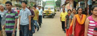 Here is a little background on the significance of the Vojhen procession during community celebrations. In earlier times, our ancestors were engaged mainly in agriculture and were poor. Whenever a Wedding function took place in any house, the relatives used to attend the function in large numbers and stayed in the Bride’s/ Bridegroom’s place for many days. It was difficult for the Yezmani (Head of the Household) to spend a large amount on their stay, during this time. In order to lessen his burden (VOJHEN), the close relatives and neighbors contributed in kind to meet the day to day expenses of the guests and the Roce and wedding day meal requirements like Rice, Coconuts, Plantains, Vegetables, Ash gourds, Plantain leaves, Chickens, goat, sheep and Pig. These things were brought to the venue (Matov) in a procession with all festivity to the mast sound of the Brass Band. Those who could afford engaged the services of TALIM group and the instrument “Komb” was also used to make it more attractive. When this procession arrived at the venue (Matov), with the main person or DAIJI, the Yezmani would welcome him with great respect and after making the announcements of who sent what item, the Vojhen would be received by the Yezmani. During that time relevant and meaningful Voviyos used to be sung by the elderly people.