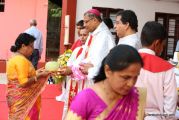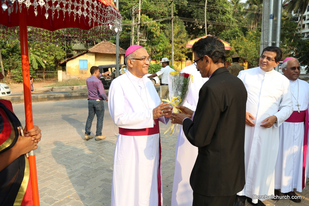 On the 27th of April, 2019 at Derebail Church Ground Rev Fr Austin Peter Peres, Parish Priest of the Most Holy Redeemer Church, Derebail, Rev Fr Gratian Alvares, Residential Priest, Parish Pastoral Council along with Derebail Parishioners welcomed Most Rev Dr Peter Paul Saldanha, Bishop of Mangalore Diocese, Most Rev Dr Aloysius Paul Dsouza, former Bishop of Mangaluru Diocese and Most Rev Dr Francis Serrao, Bishop of Shimoga Diocese.