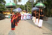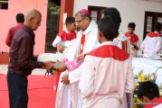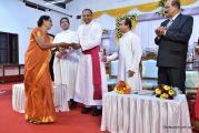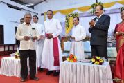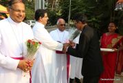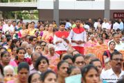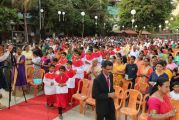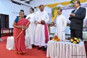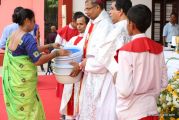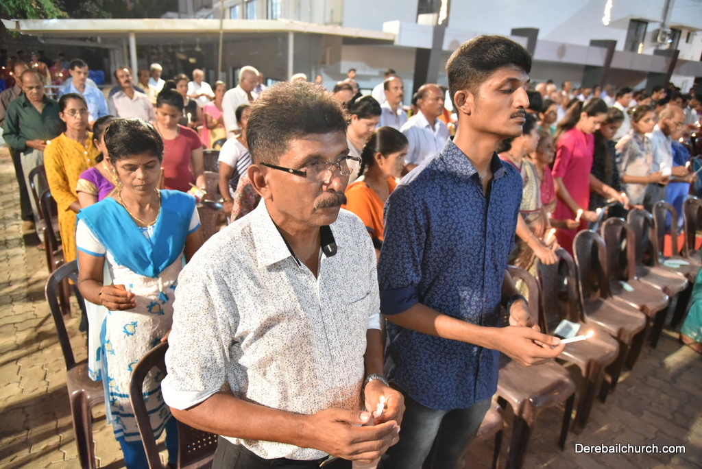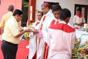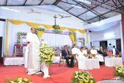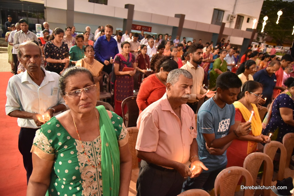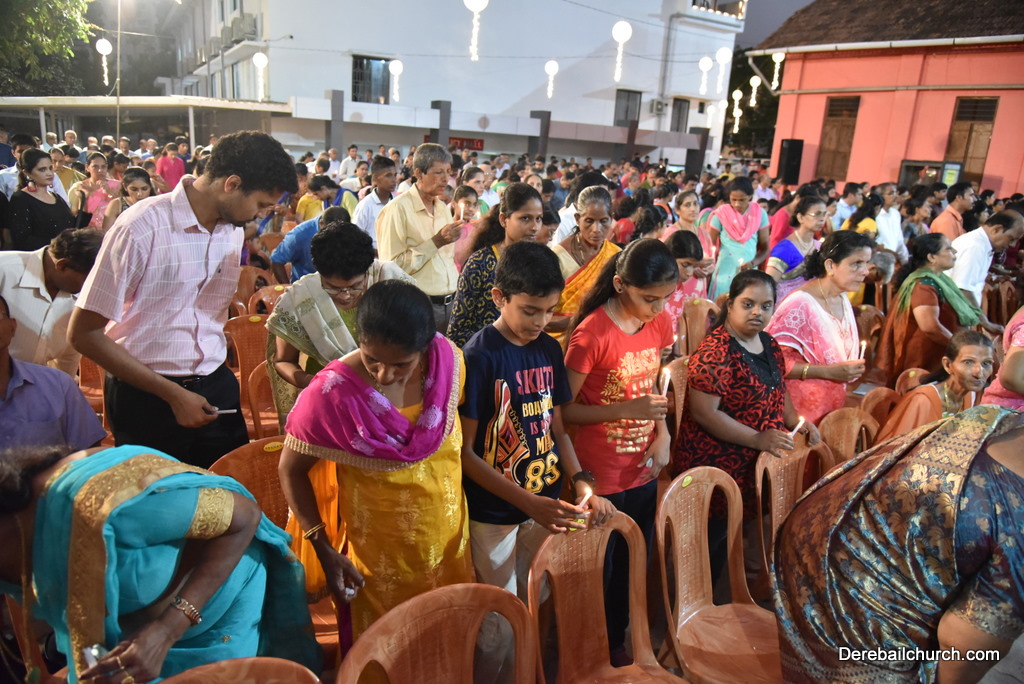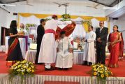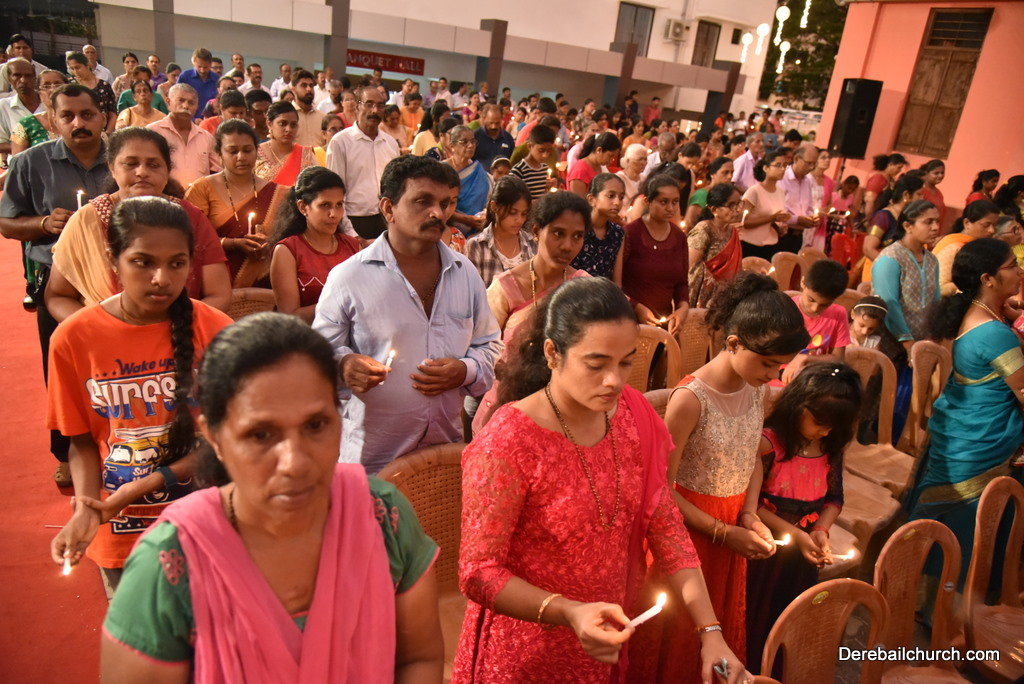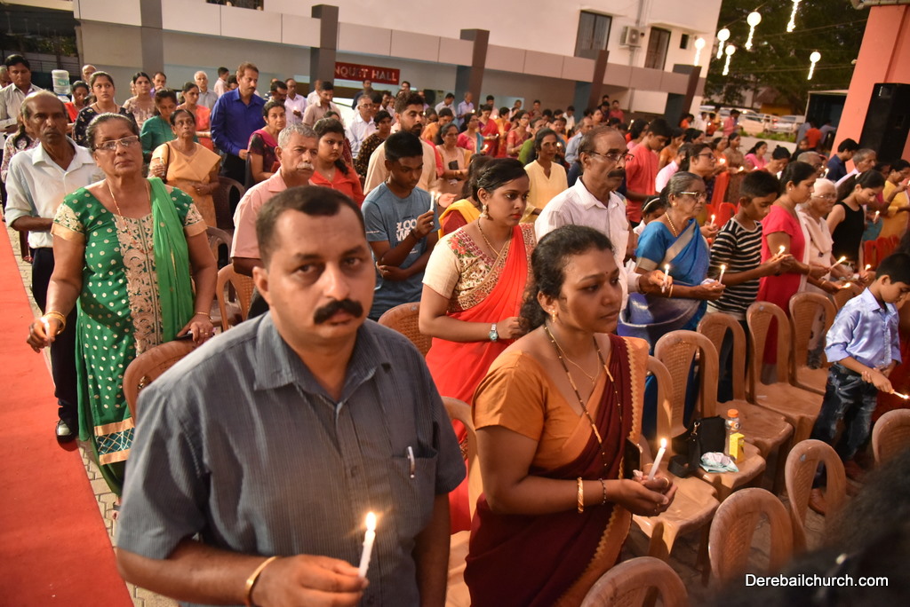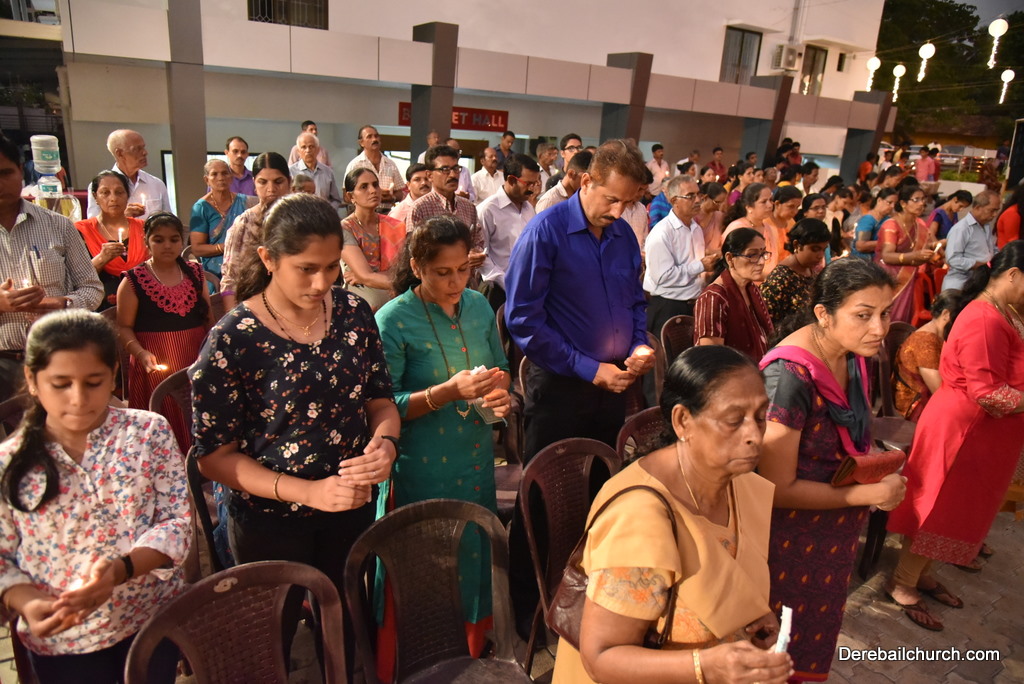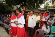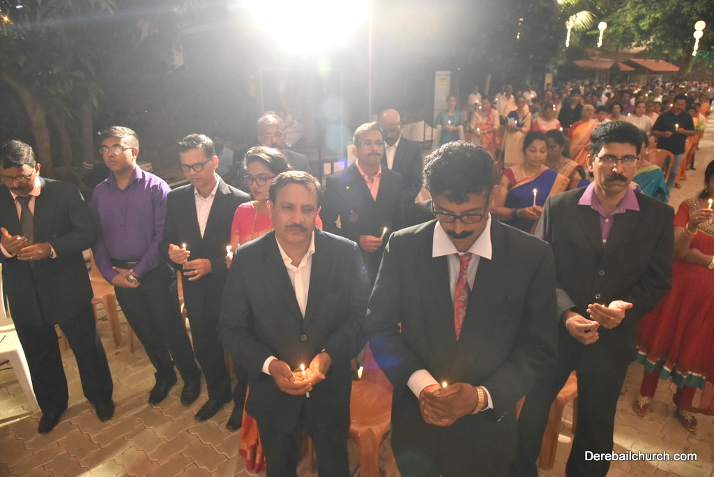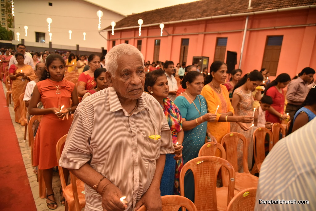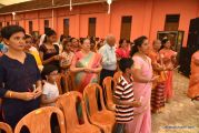 Soon after the Holy Eucharist, refreshments were served to those who were present. Later the stage programme began by escorting all the guest from the ground entrance with the live band. As soon as the guests reached the dais, parishioners who were present for the programme lit candles and spent some time in remembering our brothers and sisters who perished in the bomb explosion in Sir Lanka. The prayer was led by Rev Fr Austin Peres and a two minutes of silence was observed.