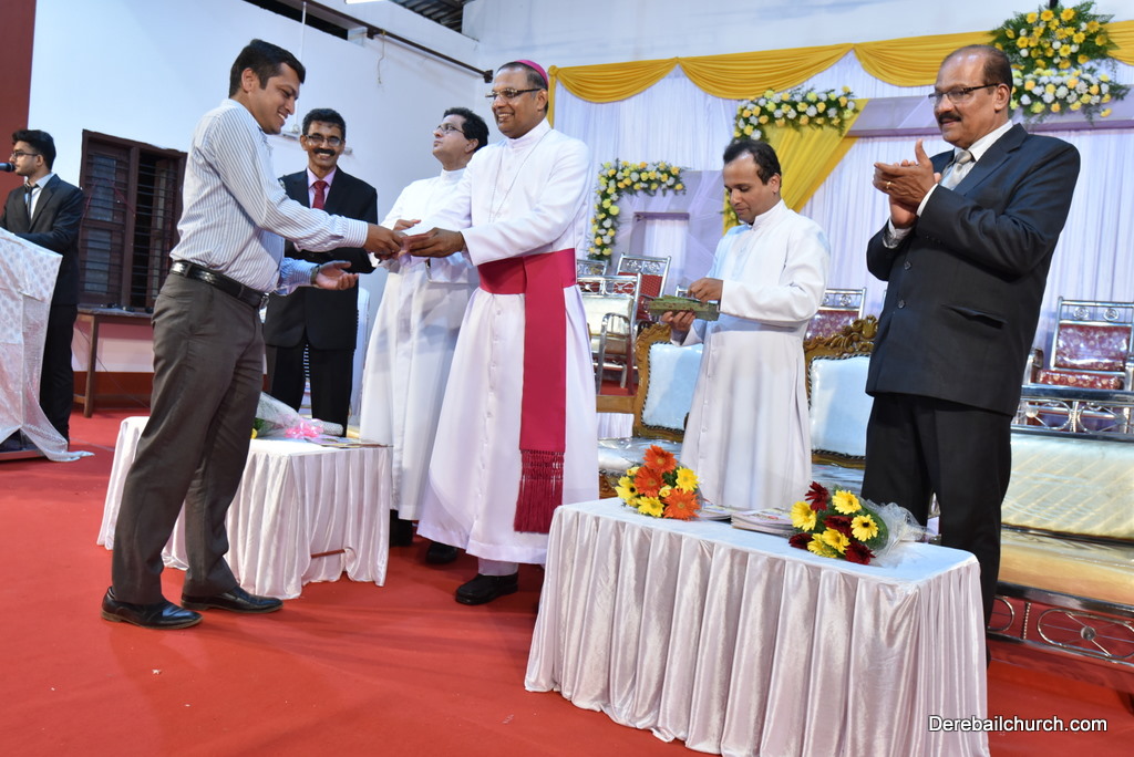 Rev Dr Peter Saldanha distributed the prizes for the winners in the Writing Competition. Felicitation song composed by Mr Alwyn Dcunha was beautifully sung by the Quintuple Jubilee Choir members. Rev Fr Austin later in his speech remembered his parents and thanked them. He also thanked the Bishop and all the priests who came in his priestly life. Further thanked all the Derebail Parishioners for supporting him and requested to keep him in their prayers. Rev Dr Peter Paul in his speech said that Derebail Parishioners are always ahead in activities and congratulated Fr Austin, Fr Gratian and Mr Victor Correa.