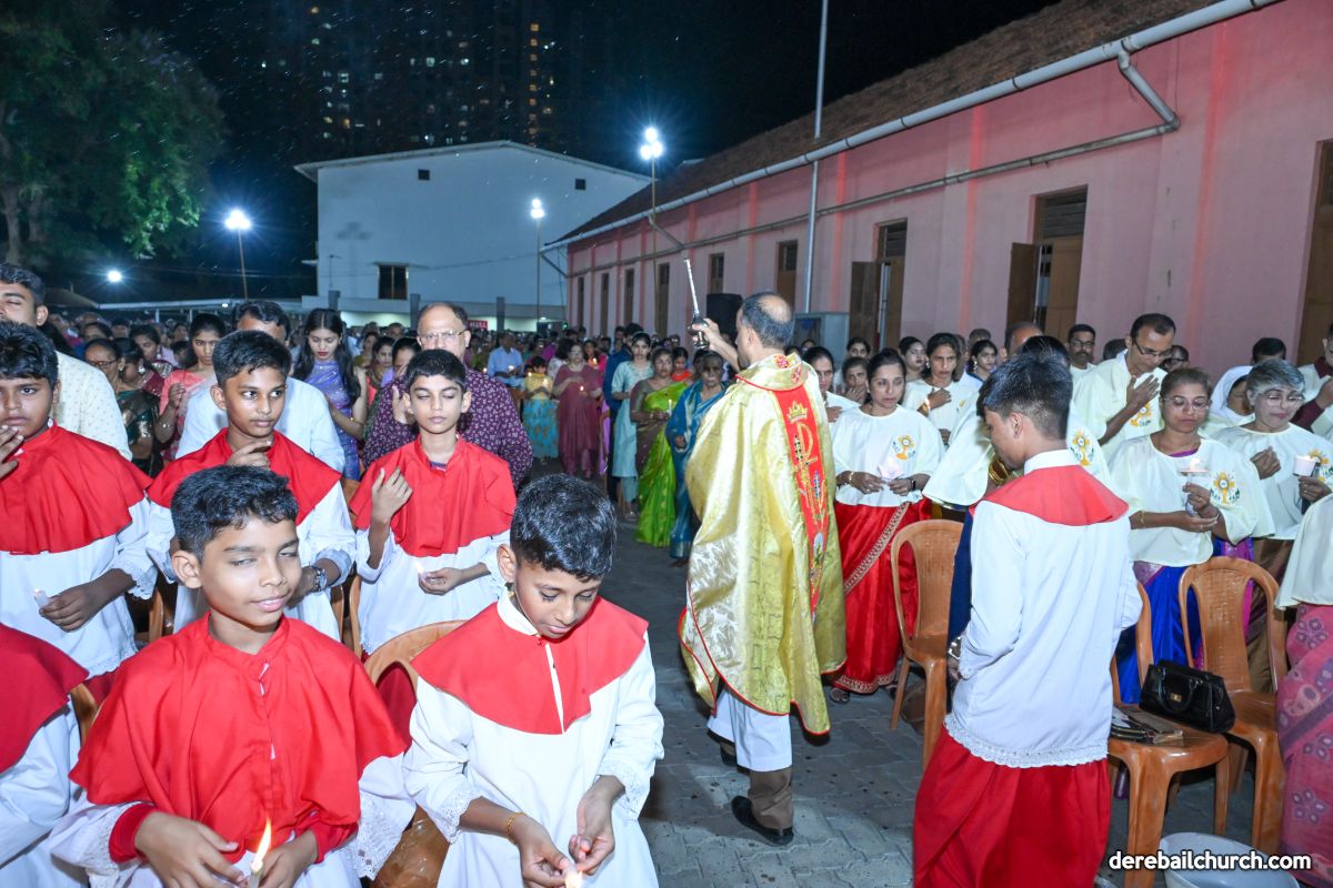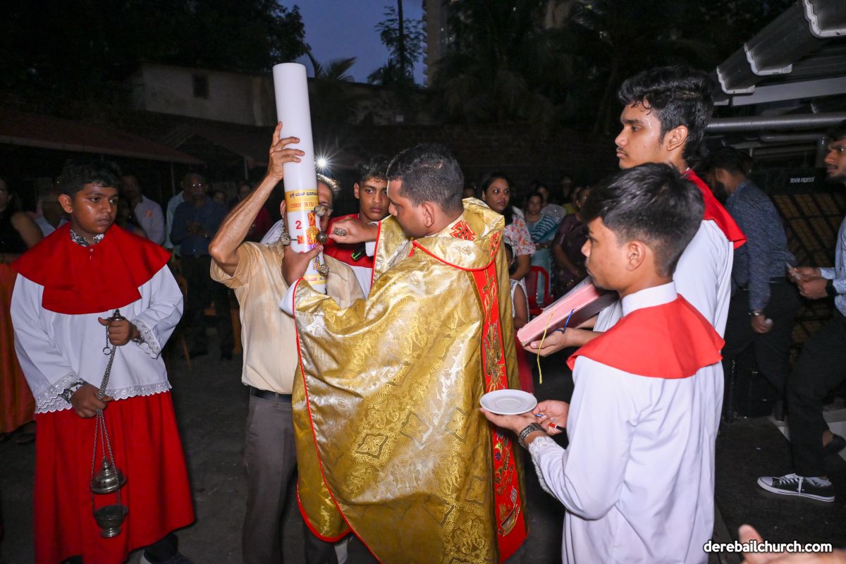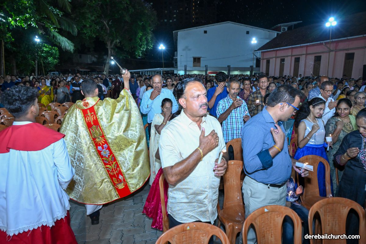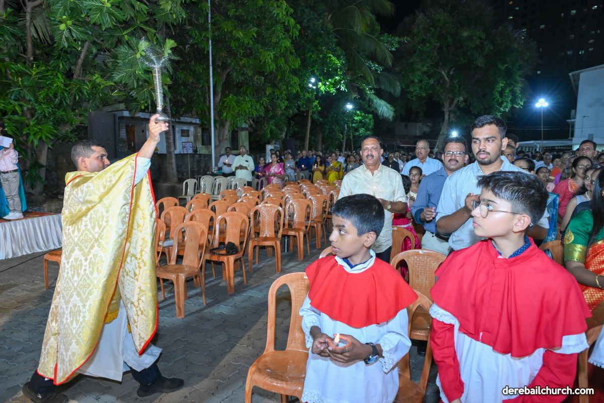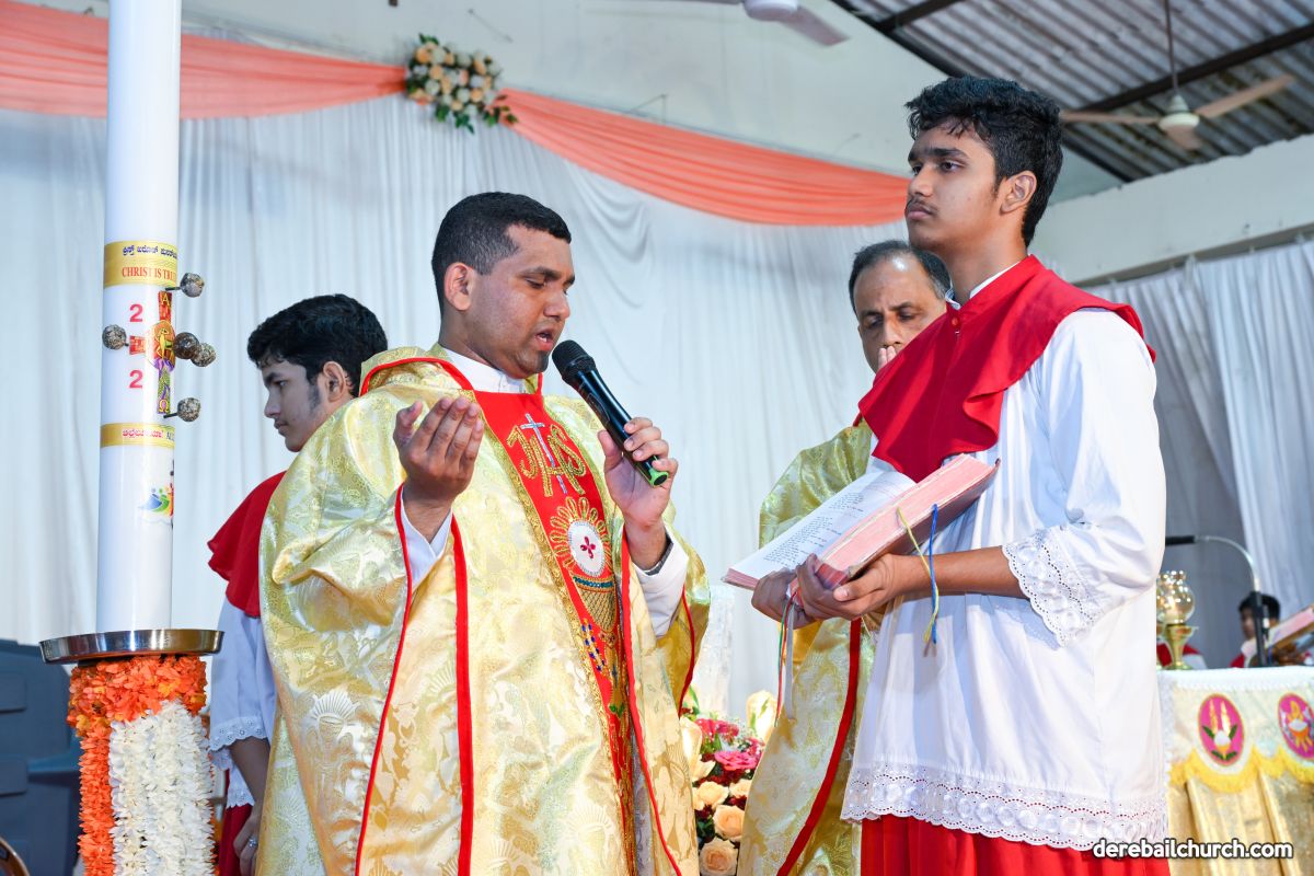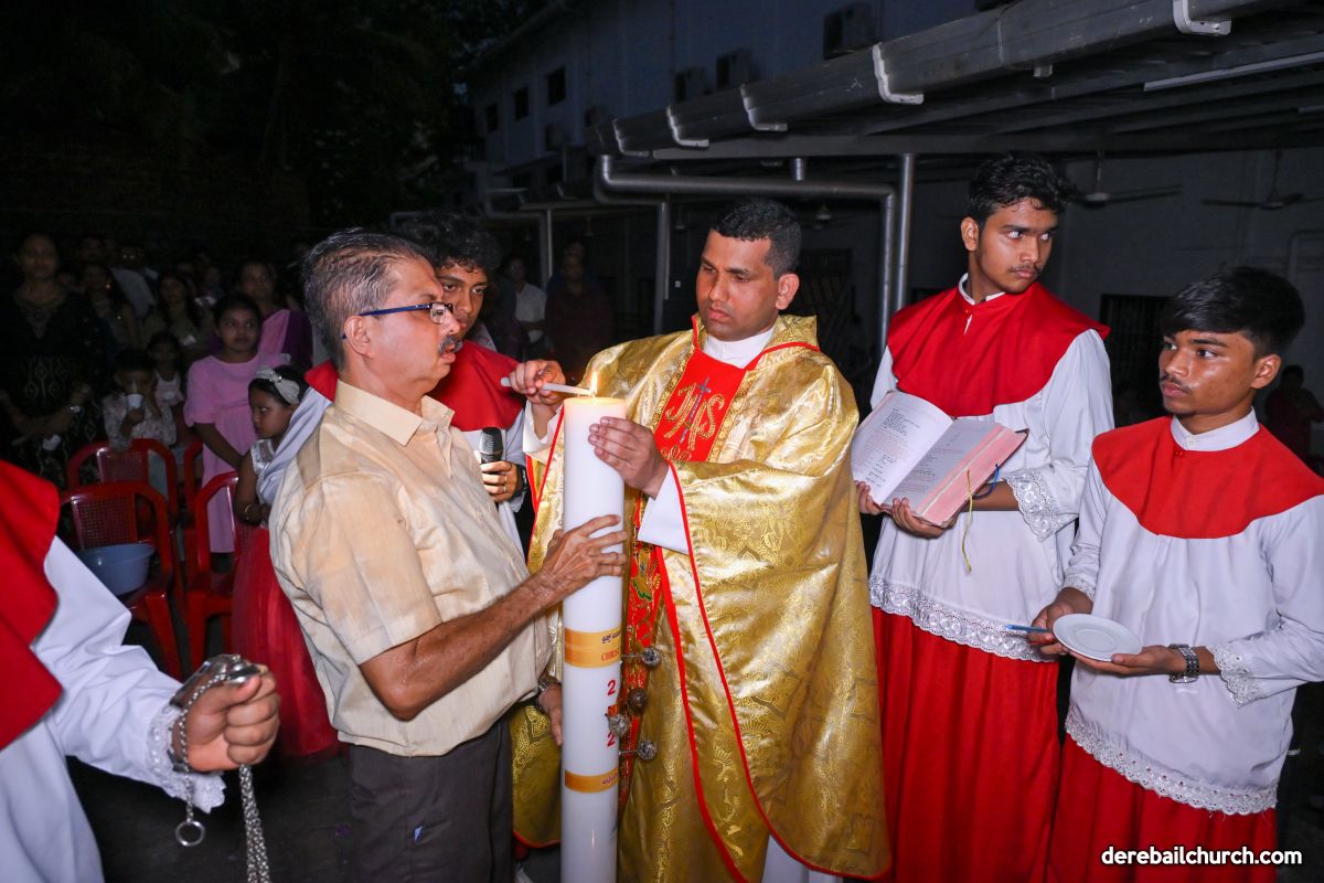 On March 19th, 2024, as twilight gave way to darkness, Most Holy Redeemer Church, Derebail, came alive with the spirit of Easter. At 7 PM, parishioners gathered in large numbers for the solemn Easter Vigil Mass.
