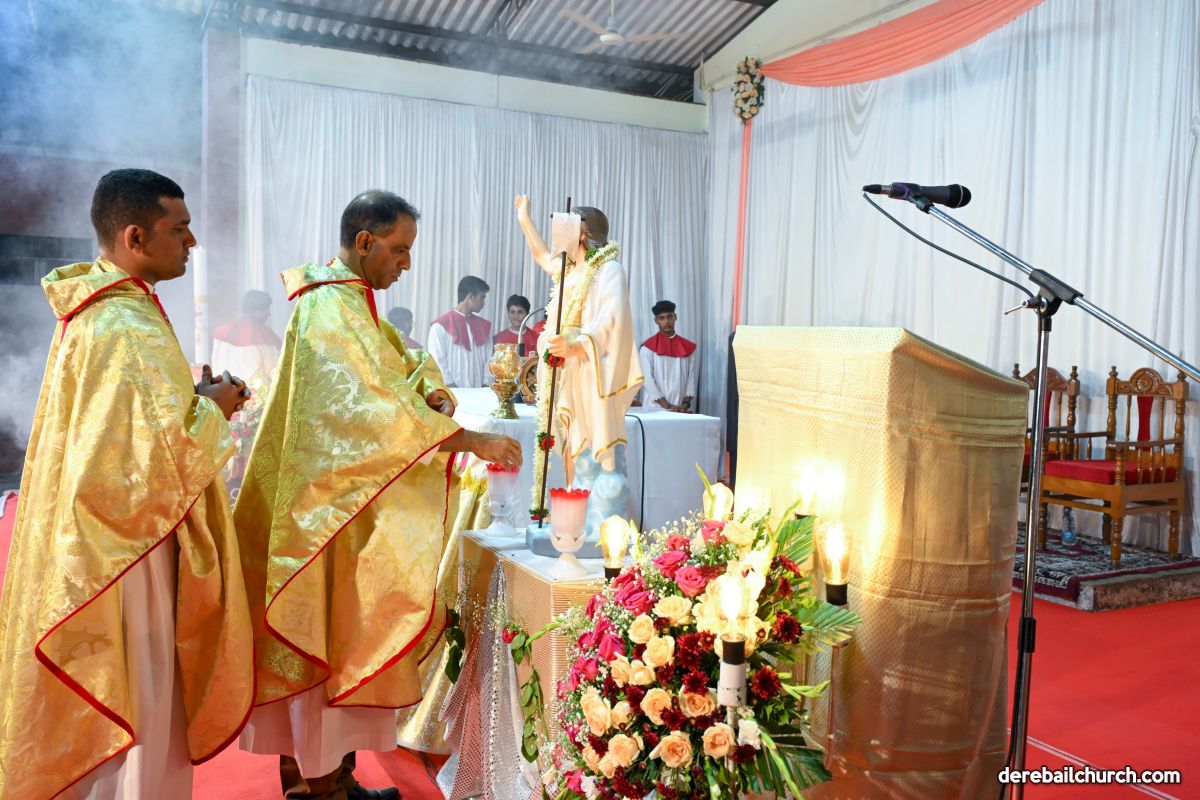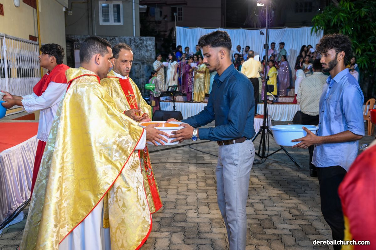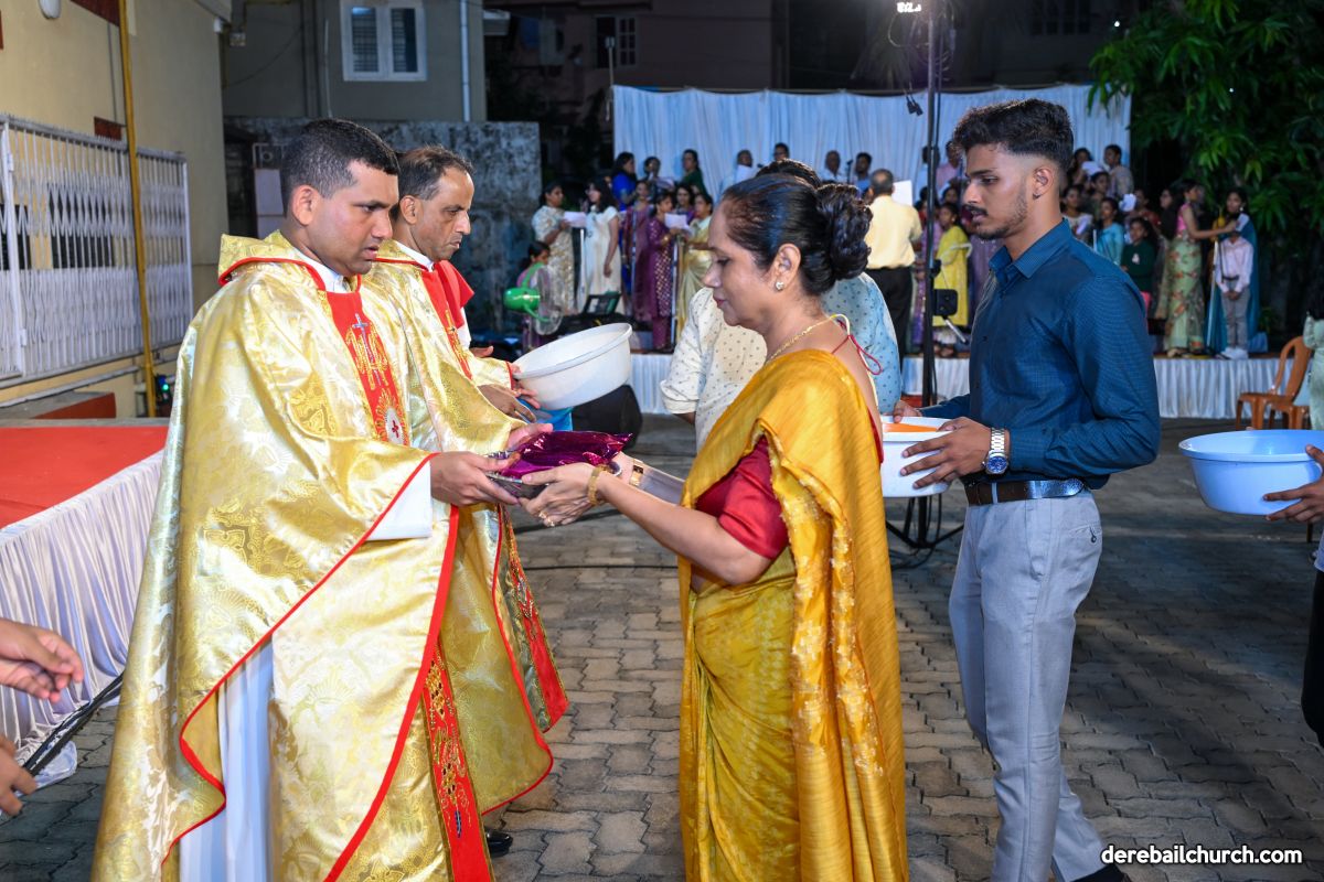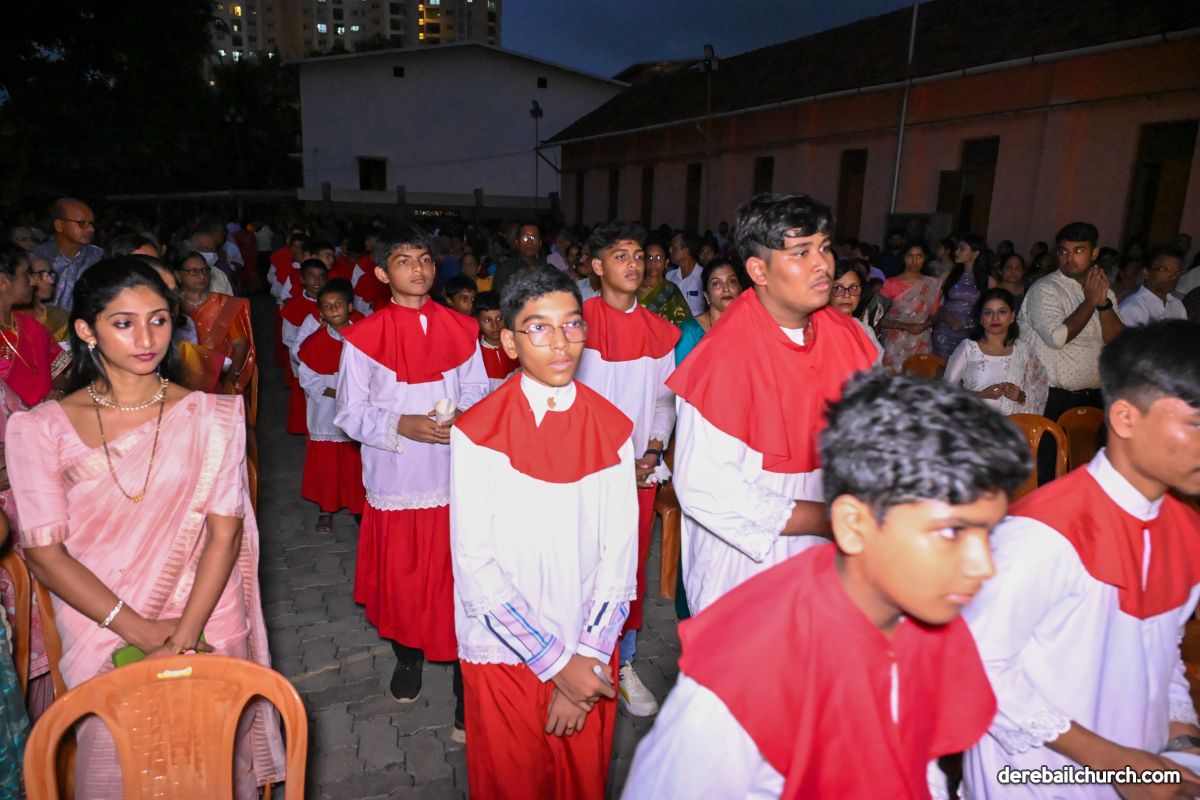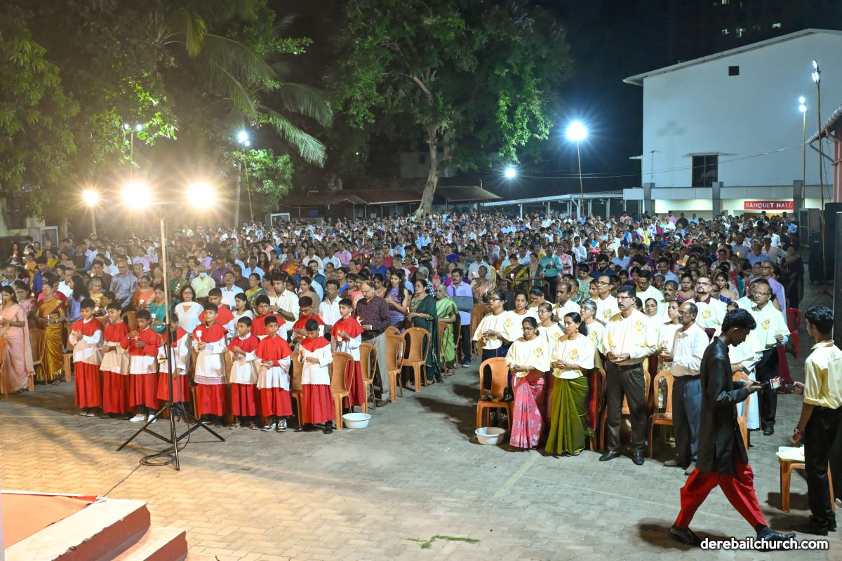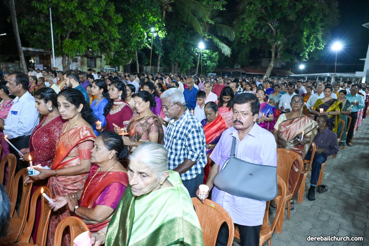 On March 19th, 2024, as twilight gave way to darkness, Most Holy Redeemer Church, Derebail, came alive with the spirit of Easter. At 7 PM, parishioners gathered in large numbers for the solemn Easter Vigil Mass.