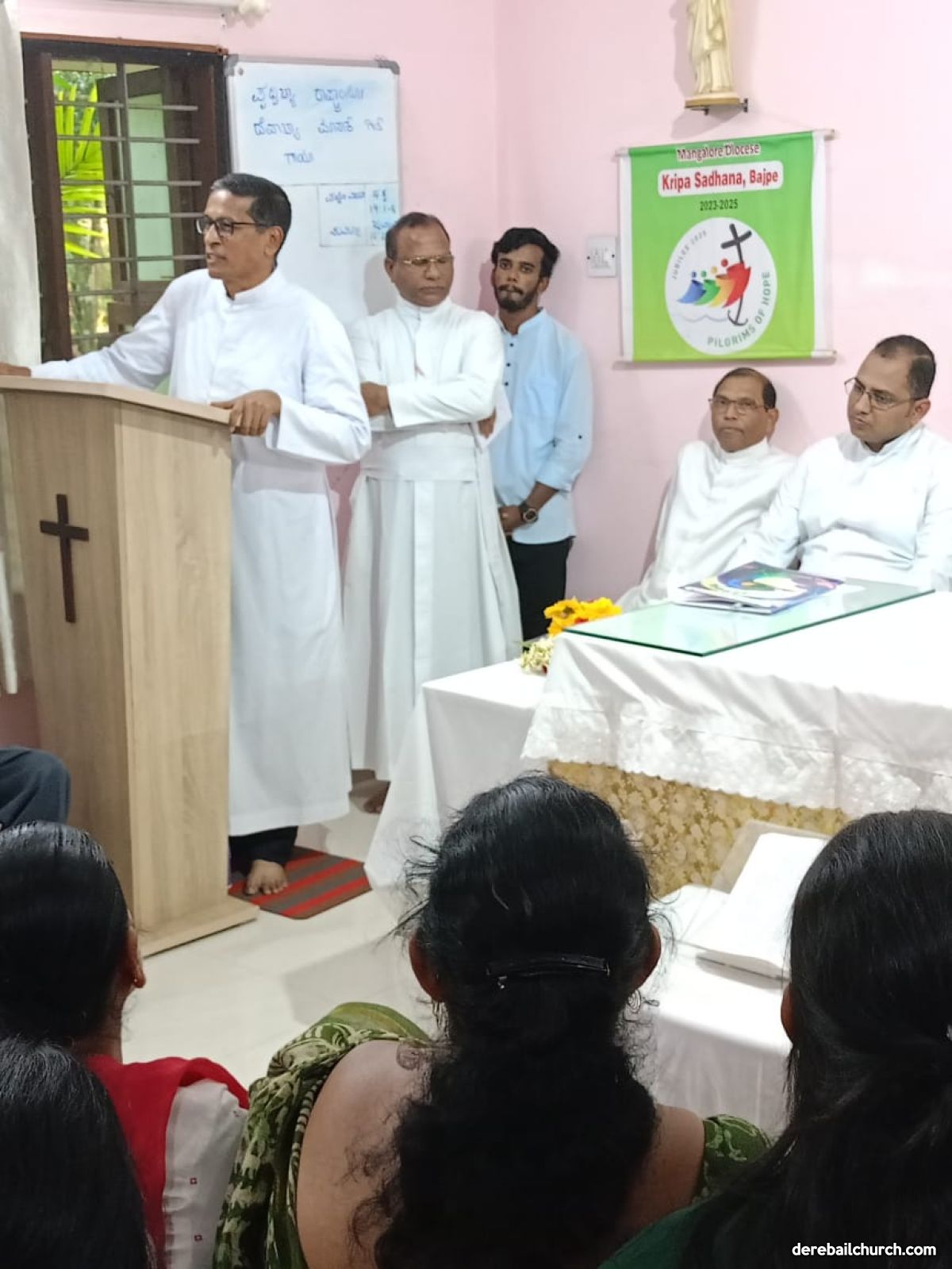 After having spent two fruitful years as the Assistant Parish Priest at Most Holy Redeemer Church Derebail, Rev. Fr. Kevin Lawrence Dsouza assumed charge as the Director at Kripa Sadhana, Minor Seminary Bajpe, on Monday, 2 June 2025. The parishioners of Derebail Church assembled at the Church premises at 4.00 PM to bid adieu and accompany him to his new mission. The Parish Priest Rev. Fr. Joseph Martis, Assistant Parish Priest Rev. Fr. Steevan Nelson Peris, Principal of Lourdes Central School Rev. Fr. Johnson led a short prayer service before setting forth on their journey to Bajpe with Fr. Kevin Dsouza.