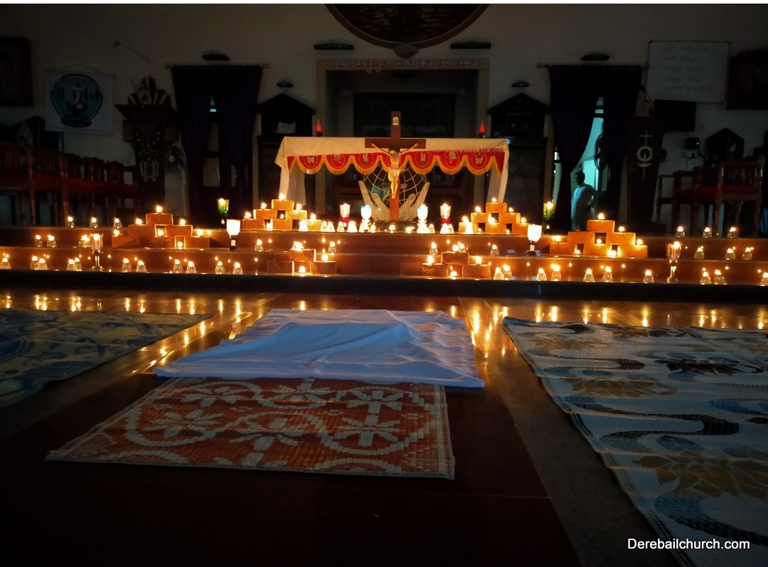 The Altar was decorated and well lit with candles around the Crucifix. Taize service began with hymns and chants being repeated one after the other followed by prayer of the faithful and a reading from the Gospel being recited for contemplation. It turned out be an occasion to prepare for the passion,death and Resurrection of our Lord. Rev Fr.Gerald Pinto laid the cross down for personal adoration.