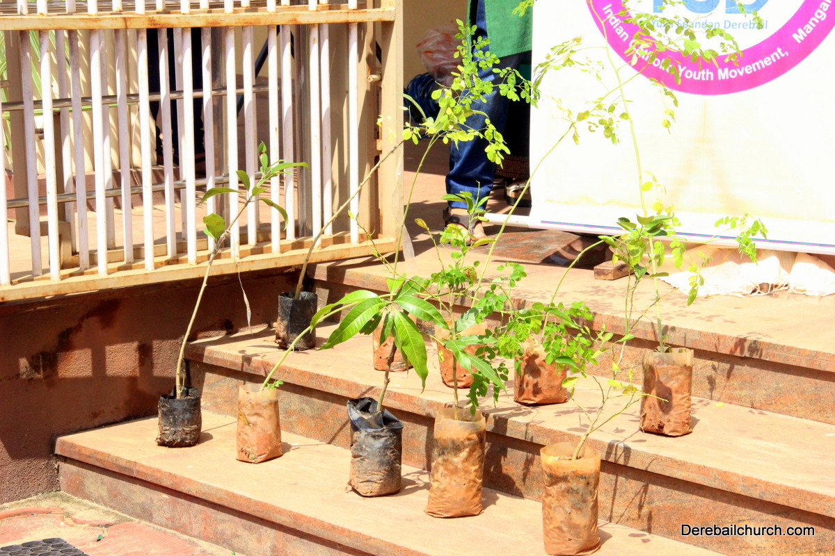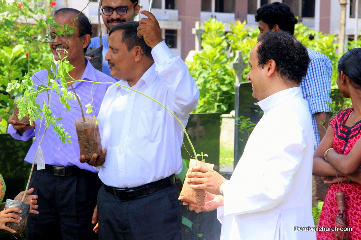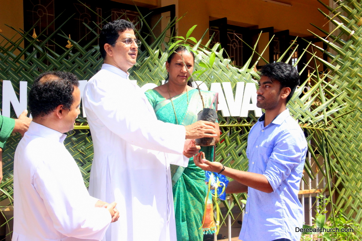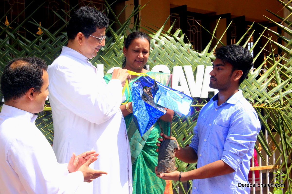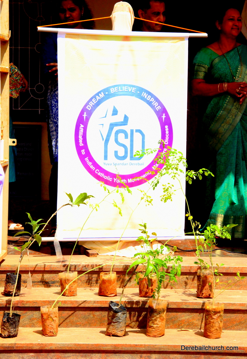 'A little bit of greenery around you can brighten your day.' With this in mind we the members of YSD-ICYM decided to start the year by celebrating vanamahotsava and planting a few saplings. The inaugural ceremony took place in the church portico with Fr.Austin Peres unwrapping the first sapling and handing it over to Mrs.Lizzie Fernandes.He also stressed about the importance of vanamahotsava and the need of educating our youth and children about nature in his inaugural address.Fr.Gratian Alvares, Mrs.Lizzie Fernandes and Mr. Mike D'Silva were also present on the dais. The programme was compered by Ivy Melisha D'Souza with Jennifer Pinto welcoming the gathering and Joylin D'Cunha delivering the vote of thanks. Thereafter the gathered crowd went to the cemetery to plant the various saplings of lime, chickoo and drumsticks. The saplings were donated by Mr. Michael D'Silva. The members had put in efforts by weaving coconut fronds and decorating the portico as well as by digging the holes for the saplings on the previous day. The members looked resplendent wearing green and blue colours for the occasion. All the members felt content at doing their bit to preserve Mother Nature.