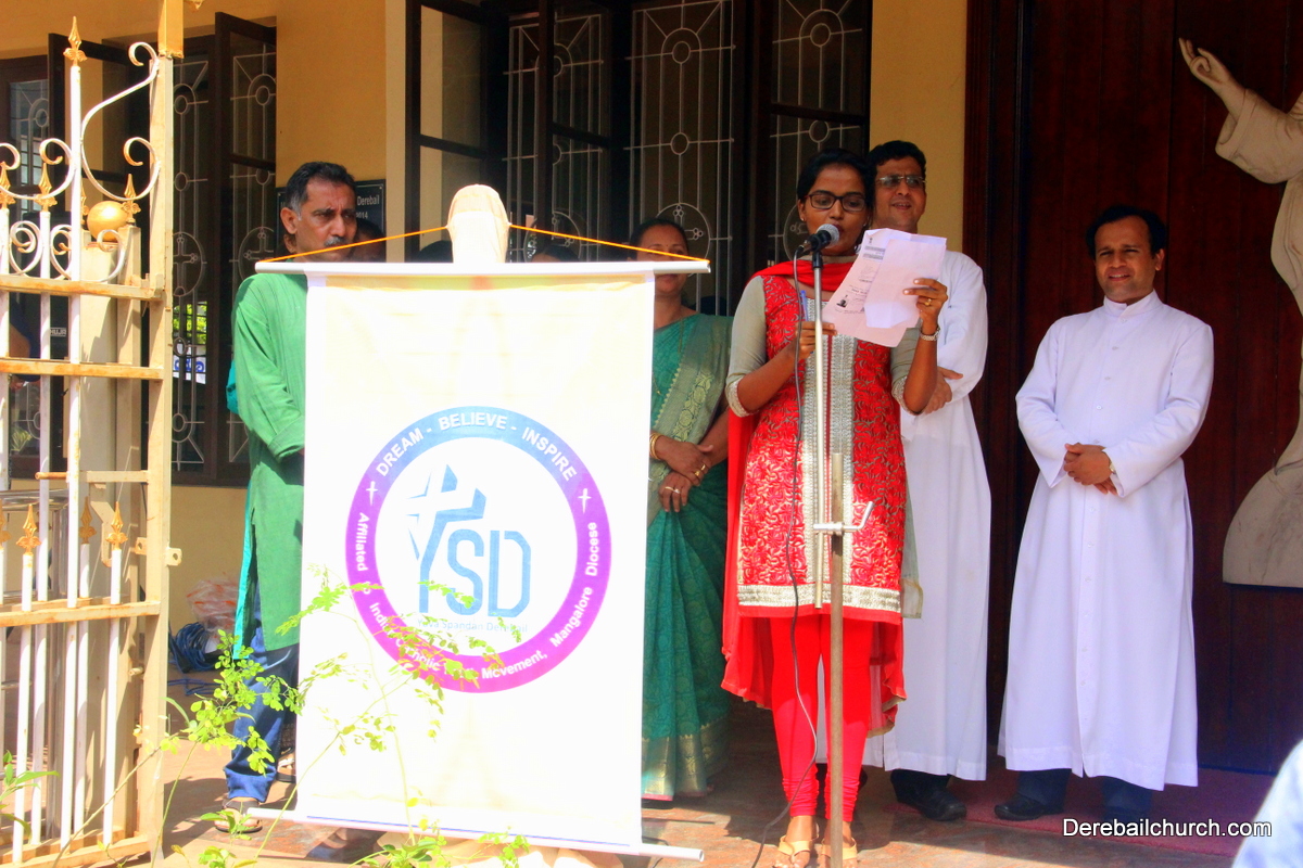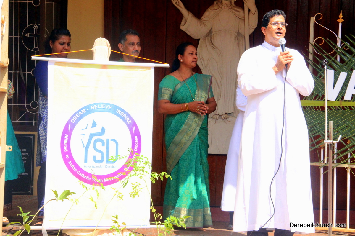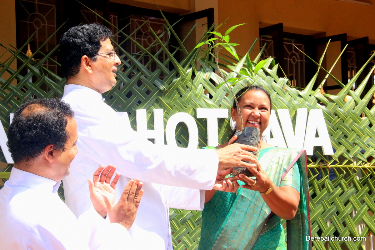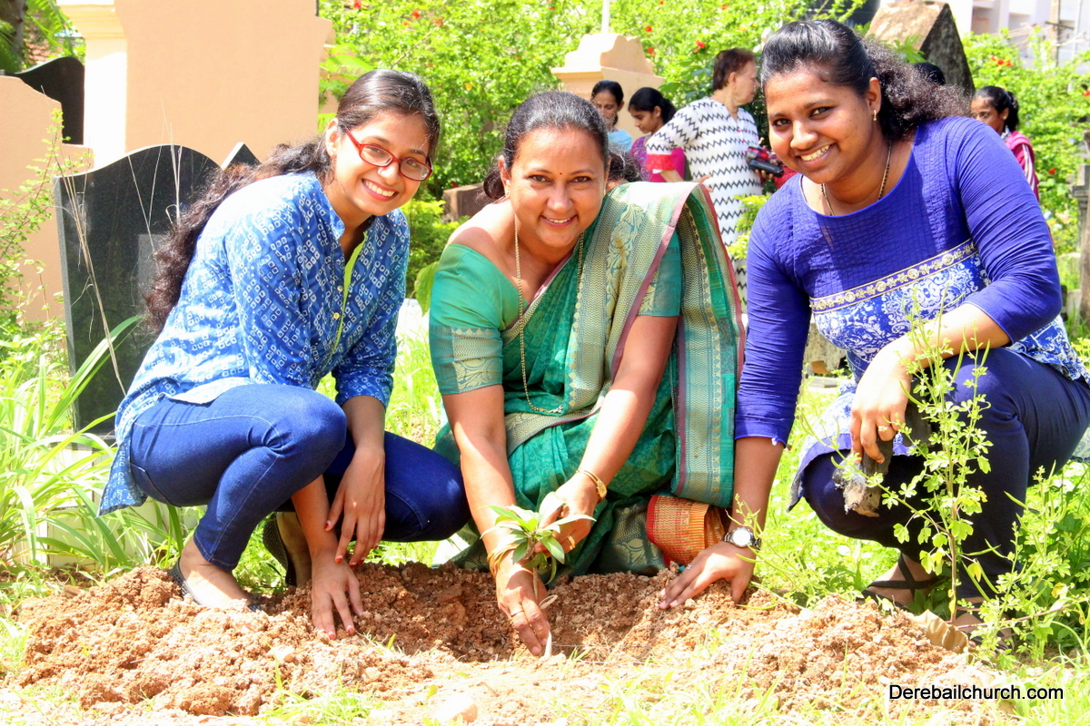 'A little bit of greenery around you can brighten your day.' With this in mind we the members of YSD-ICYM decided to start the year by celebrating vanamahotsava and planting a few saplings. The inaugural ceremony took place in the church portico with Fr.Austin Peres unwrapping the first sapling and handing it over to Mrs.Lizzie Fernandes.He also stressed about the importance of vanamahotsava and the need of educating our youth and children about nature in his inaugural address.Fr.Gratian Alvares, Mrs.Lizzie Fernandes and Mr. Mike D'Silva were also present on the dais. The programme was compered by Ivy Melisha D'Souza with Jennifer Pinto welcoming the gathering and Joylin D'Cunha delivering the vote of thanks. Thereafter the gathered crowd went to the cemetery to plant the various saplings of lime, chickoo and drumsticks. The saplings were donated by Mr. Michael D'Silva. The members had put in efforts by weaving coconut fronds and decorating the portico as well as by digging the holes for the saplings on the previous day. The members looked resplendent wearing green and blue colours for the occasion. All the members felt content at doing their bit to preserve Mother Nature.