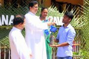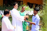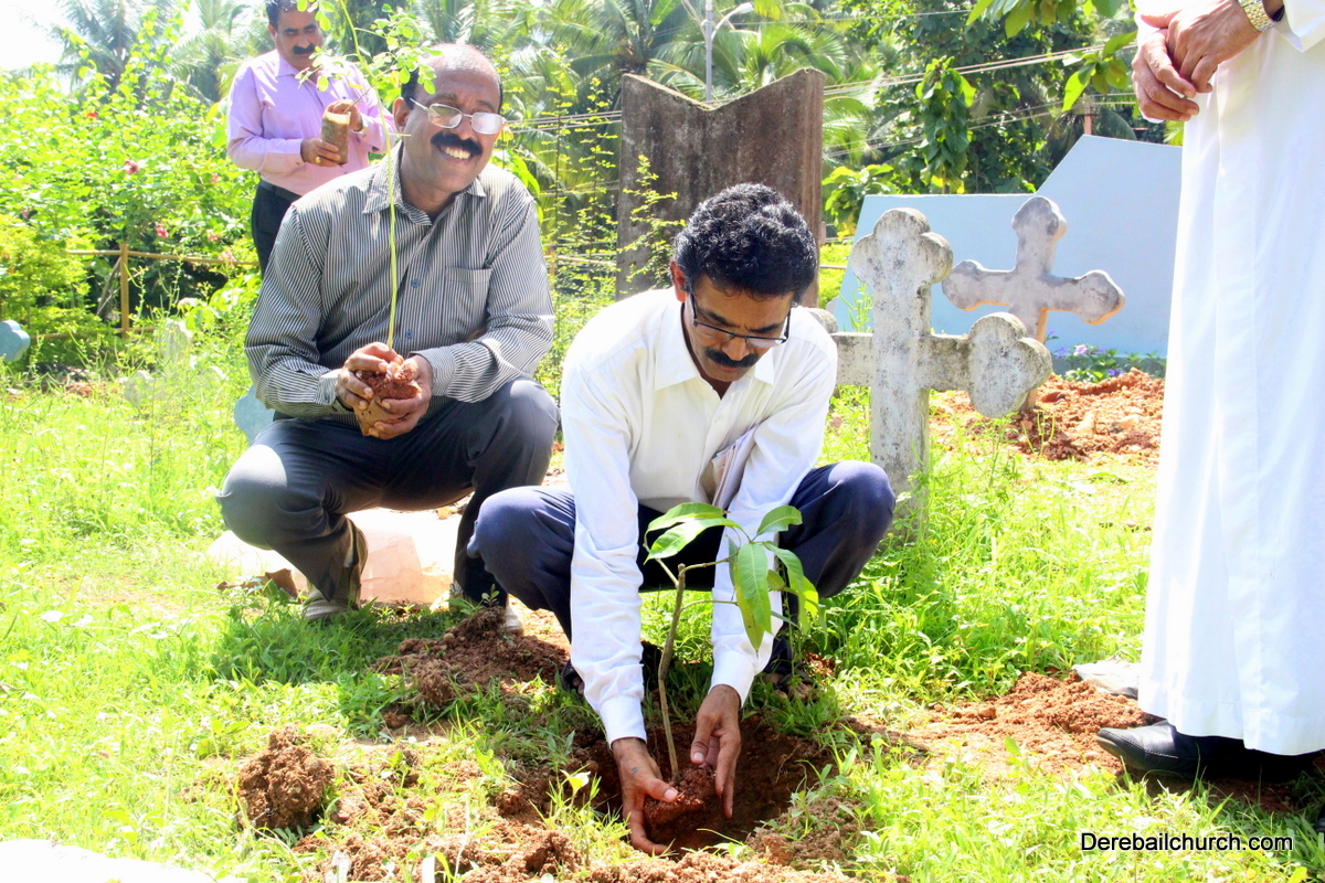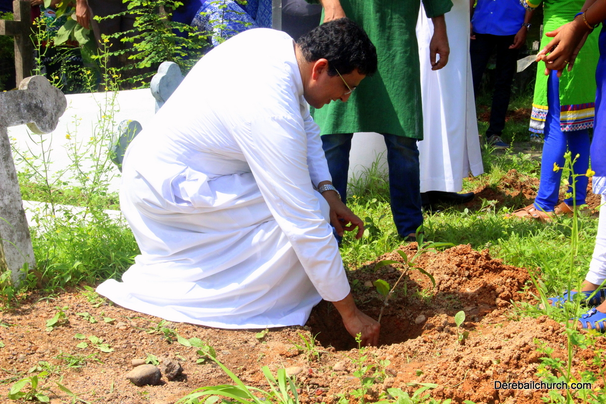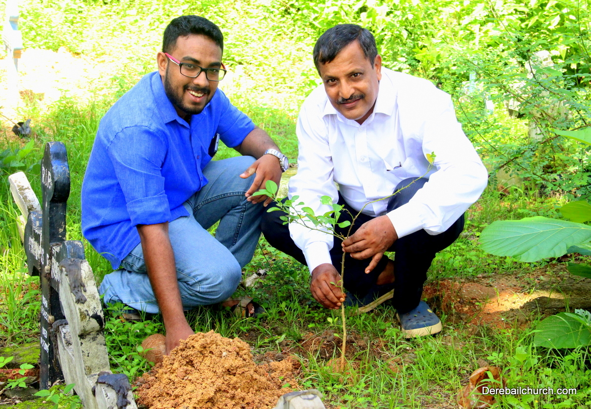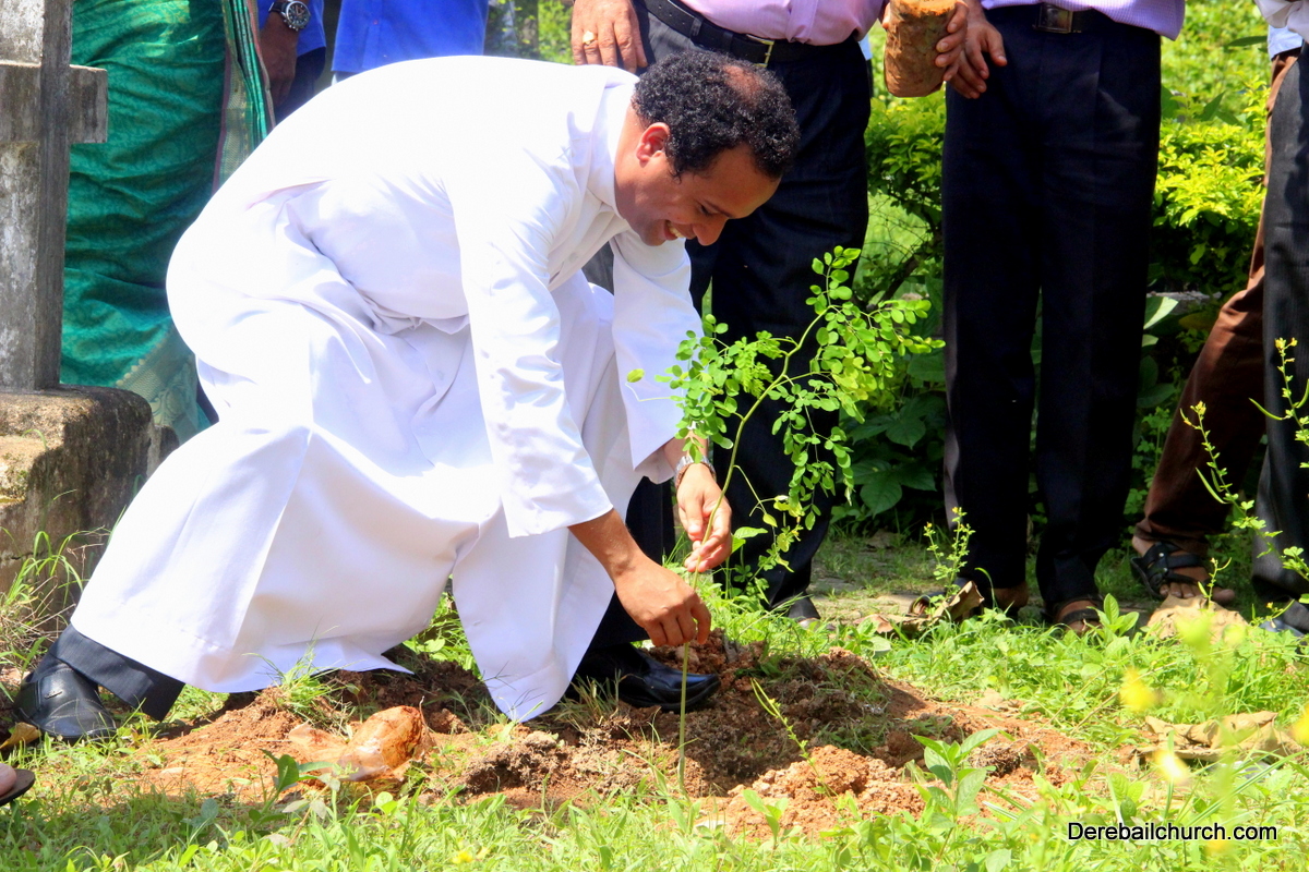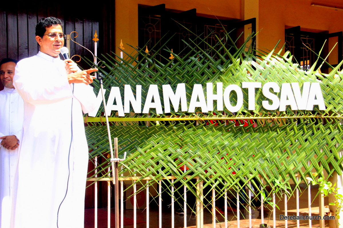 'A little bit of greenery around you can brighten your day.' With this in mind we the members of YSD-ICYM decided to start the year by celebrating vanamahotsava and planting a few saplings. The inaugural ceremony took place in the church portico with Fr.Austin Peres unwrapping the first sapling and handing it over to Mrs.Lizzie Fernandes.He also stressed about the importance of vanamahotsava and the need of educating our youth and children about nature in his inaugural address.Fr.Gratian Alvares, Mrs.Lizzie Fernandes and Mr. Mike D'Silva were also present on the dais. The programme was compered by Ivy Melisha D'Souza with Jennifer Pinto welcoming the gathering and Joylin D'Cunha delivering the vote of thanks. Thereafter the gathered crowd went to the cemetery to plant the various saplings of lime, chickoo and drumsticks. The saplings were donated by Mr. Michael D'Silva. The members had put in efforts by weaving coconut fronds and decorating the portico as well as by digging the holes for the saplings on the previous day. The members looked resplendent wearing green and blue colours for the occasion. All the members felt content at doing their bit to preserve Mother Nature.