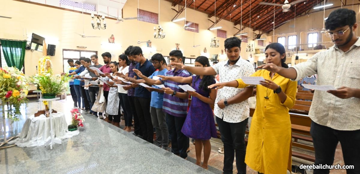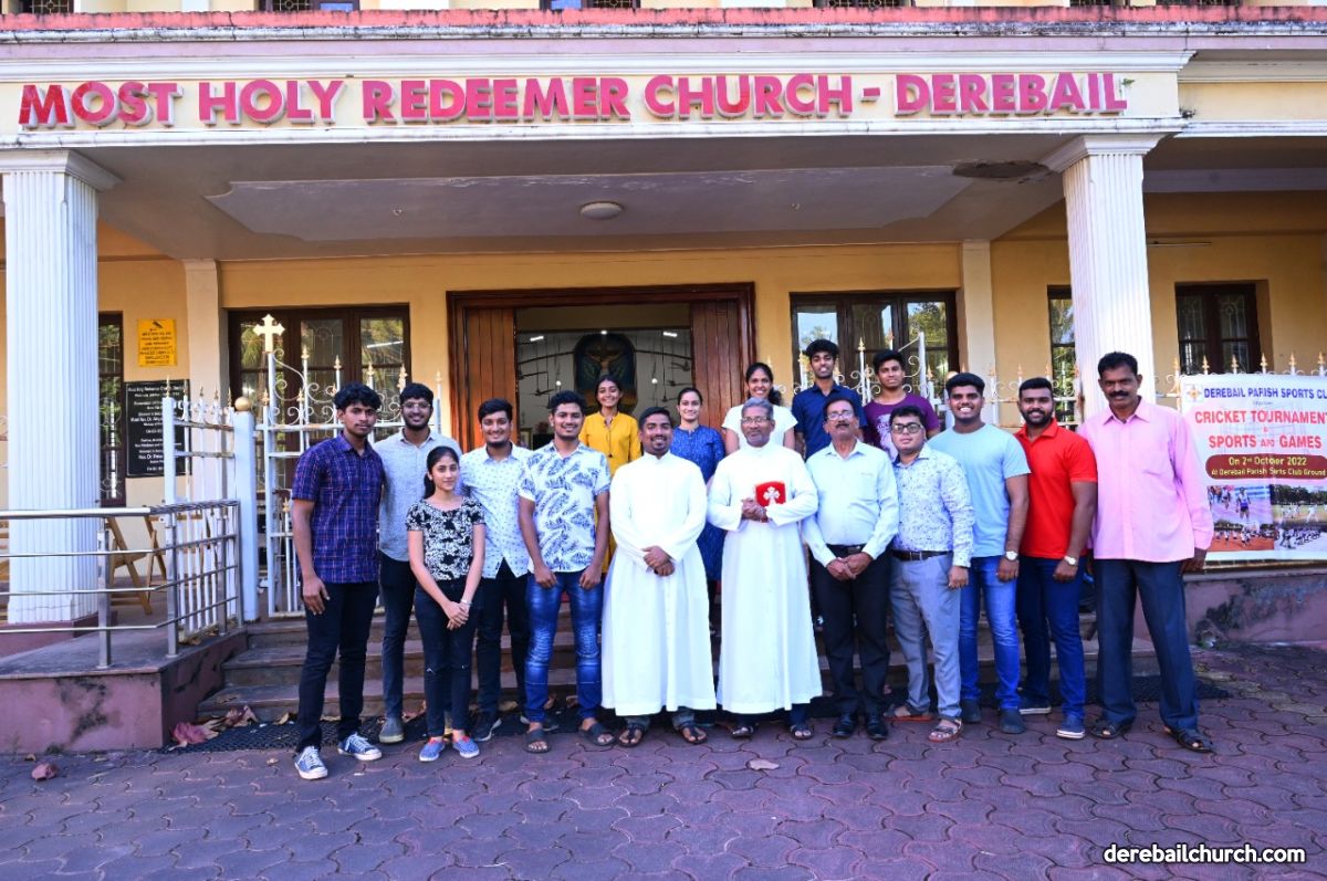 As the Provincial Youth Conference will be held in Mandya in the month of October, the Synod Cross of Karnataka Provincial Youth Conference was brought in devotion by the Parishioners and Youth of Holy Cross Church, Cordel to Most Holy Redeemer Church, Derebail on 27 September, 2022 at 4.15 pm. Rev. Fr. Clifford Fernandes and Rev. Fr.Jovin Vishwas Sequeira handed over the Synod Cross to the Parish Priest Rev.Fr.Joseph Martis. Rev.Fr.Gerald Pinto, Mrs.Sheela D'Souza Vice-President of Parish Pastoral Committee, Mr.Gaulbert Pais Secretary of Parish Pastoral Committee, Animators of YSD/ICYM and members of YCS, Senior and Junior CLC members along with many other parishioners were present on this auspicious occasion. A short prayer service was led by Rev.Fr.Joseph Martis. A special prayer was recited wherein the youth were called forward and asked to raise their right hand in promise to accept Jesus as their saviour in all situations in life.