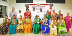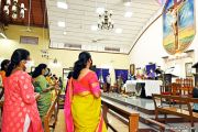 The Eucharistic Celebration was followed by a get together at the Parish Meeting Hall. The get together commenced with a prayer song. Mrs. Celine Correa, President of the Association, formally welcomed the gathering. Parish Priest, Fr. Austin Peres; Resident Priest, Fr. Gerald Pinto; Vice President, Mrs. Sheela D'Souza; Secretary, Mr. Gaulbert Pais of Parish Pastoral Committee; President of Diocesan Women's Association, Mrs. Terry Pais; Sr. Valsa John and the Secretary of the Parish Women's Association; Mrs. Benedicta D'cunha were the dignitaries who graced the occasion. The Dignitaries on and off the dais were given a floral welcome.