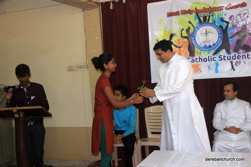 This celebration was followed by a get-together for the members of YCS at the Church Mini Hall. The programme began with a prayer song sung by Deora Fernandes and group. YCS president Manish welcomed the guests, Rev.Fr. Austin Peres, Rev Fr.Gracian Alvares, Mr. Edward Coelho, Mr.Micheal D’silva, Mr.Prajwal Sequiera and Mrs. Loretta Anthony.