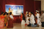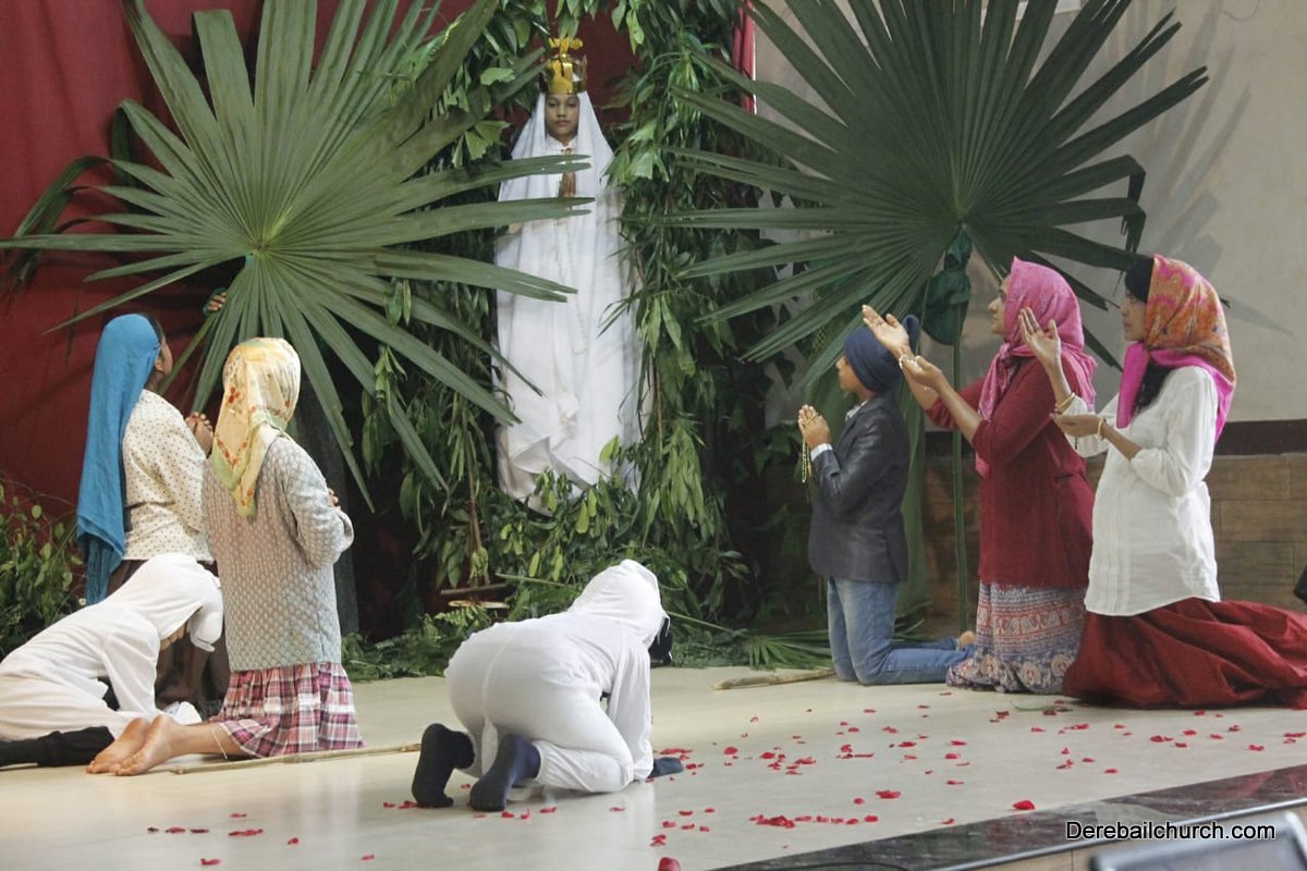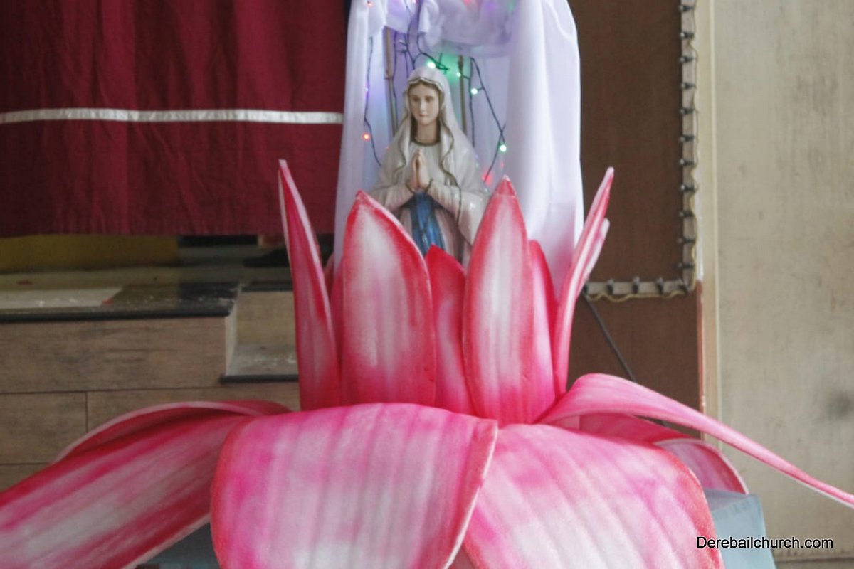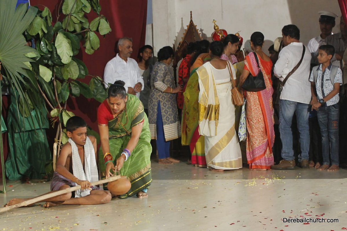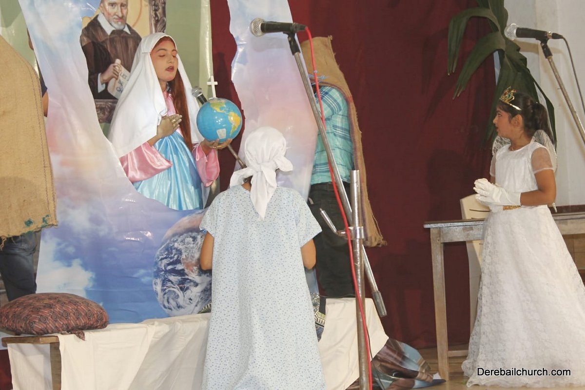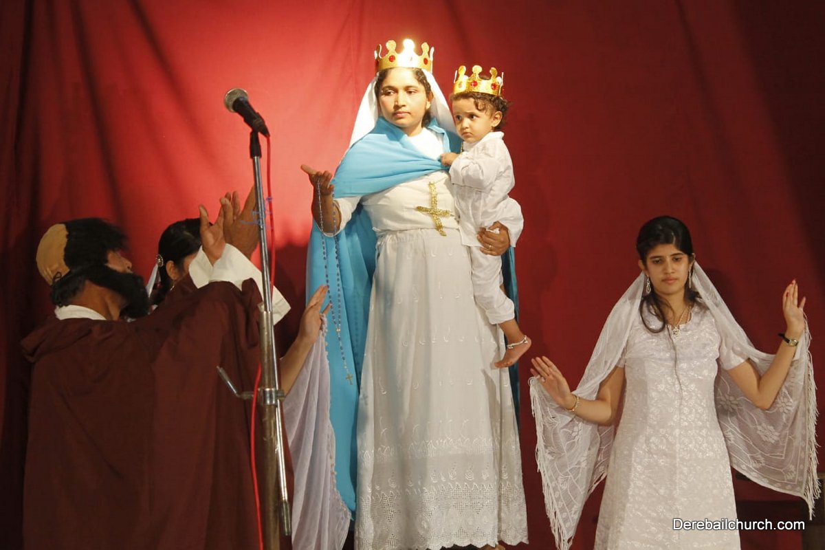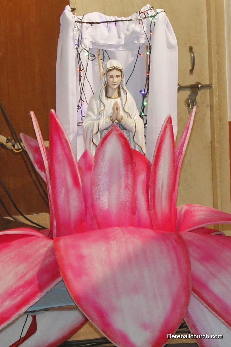 The Competition resumed with a formal programme at 3:00pm in the church hall, with a prayer dance, followed by the Inaugural ceremony. Parish priest Rev. Fr. Austin Peter Peres, Residential priest Fr. Gratian Alvares, Vice-president and Secretary of the Parish council Mr. Edward Coelho and Mrs. Lizzy Fernandes along with the animators of Youth CLC Mr. Ullas D Costa and Mr. Gerald Concessao were Dignitaries. The competition commenced at 3.30 pm. Parishioners gave their best performance based on the allotted titles of Mother Mary, and the apparitions.