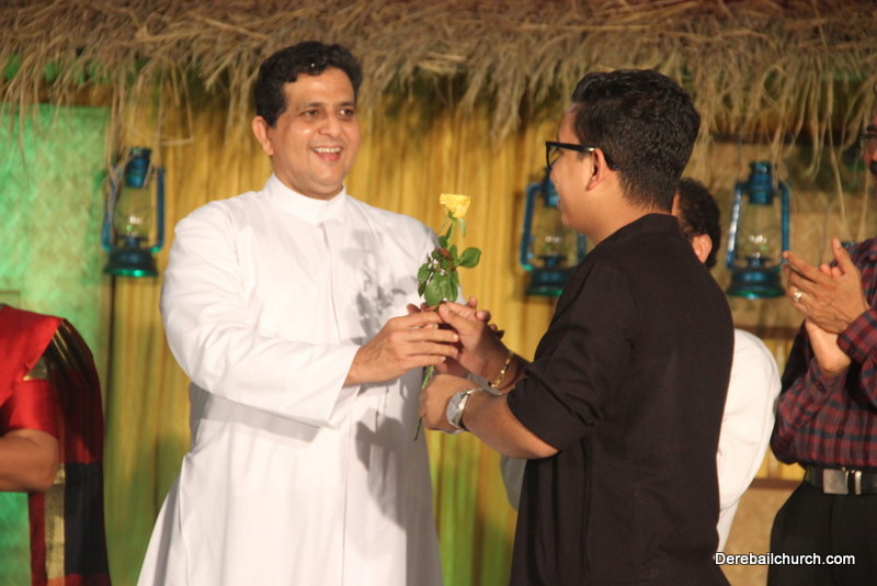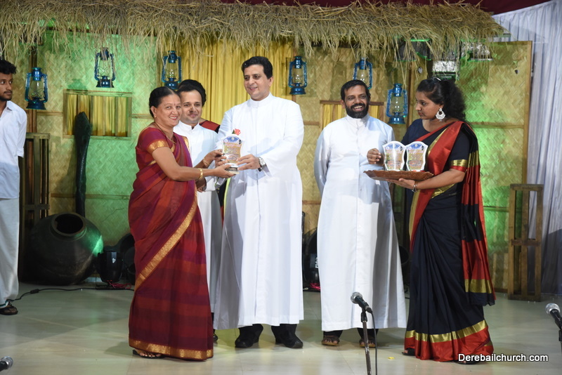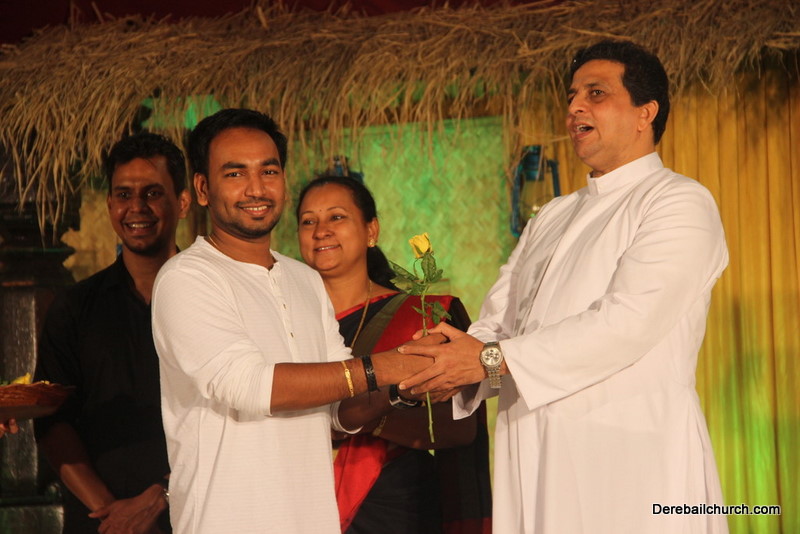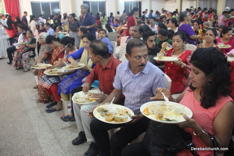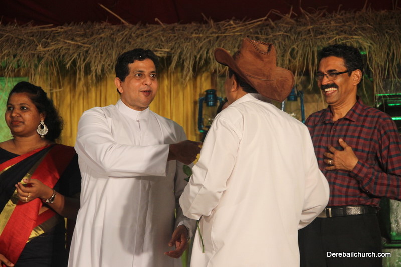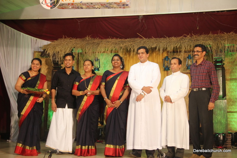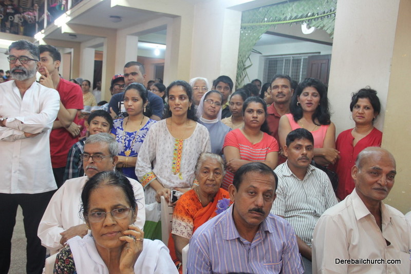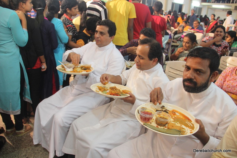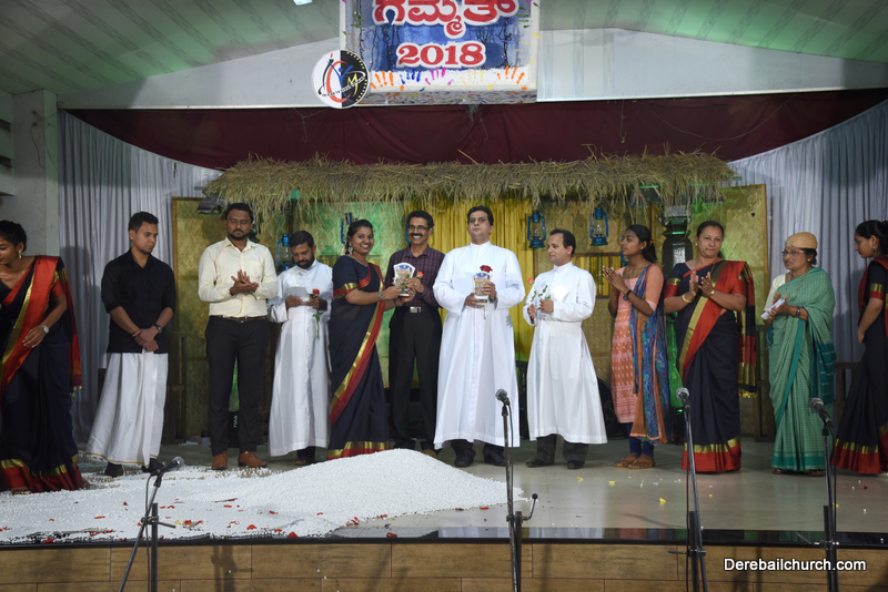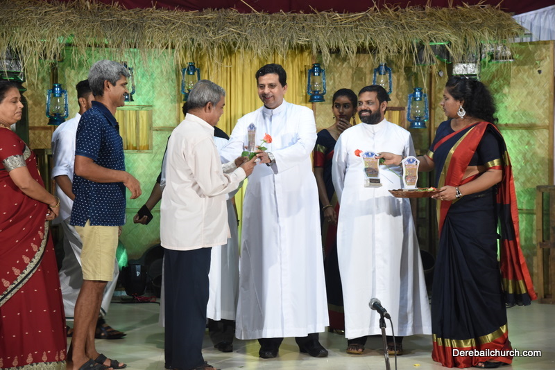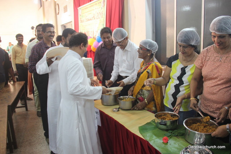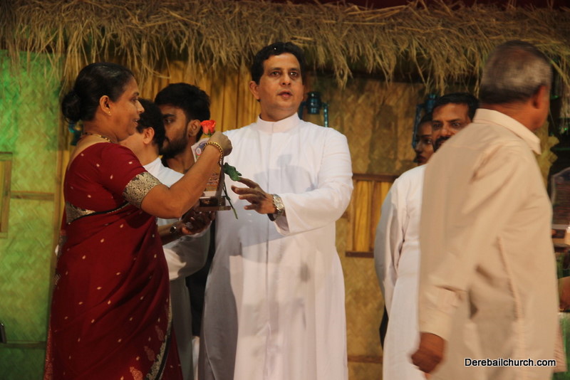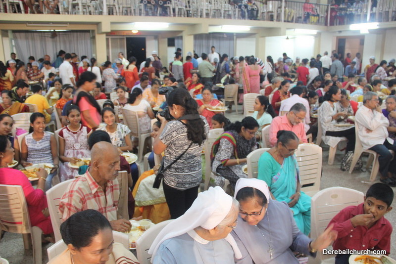 Cultural program began with a live band performance. Many talented parishioners and various associations of the Most Holy Redeemer Church, Derebail had beautifully put up a cultural program. The cultural program included - Dance, skit, Jokes, Mad ad, live singing, music, Mando etc. Spot games were conducted especially for enthusiastic audience. 22 ward Gurkars, Sponsors and all those who toiled for the success of the programme were felicitated with mementos and flowers. A collection box was circulated by YSD among the audience so as to meet the expenses of the event. As soon as the cultural program came to an end, Rev. Fr. Gration Alvares prayed over the meals.