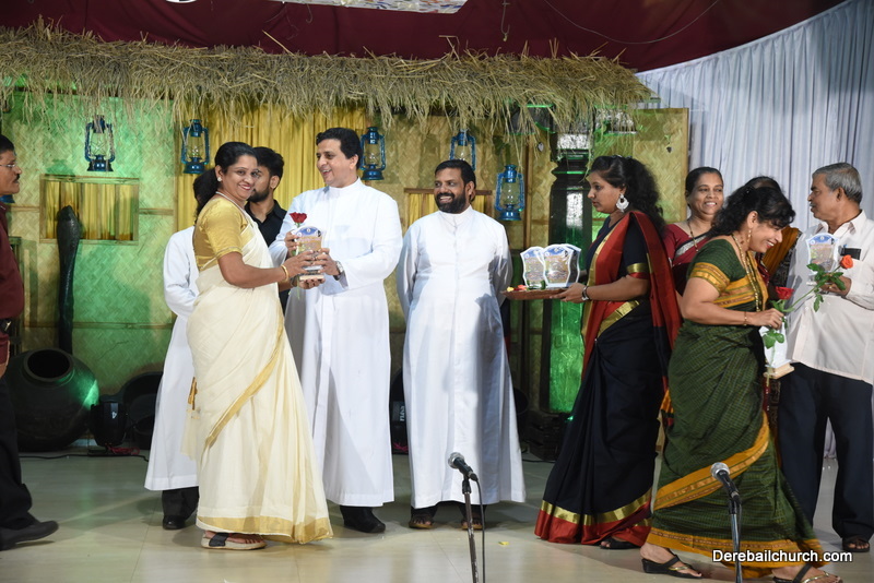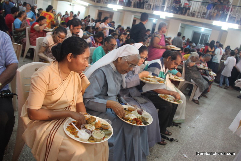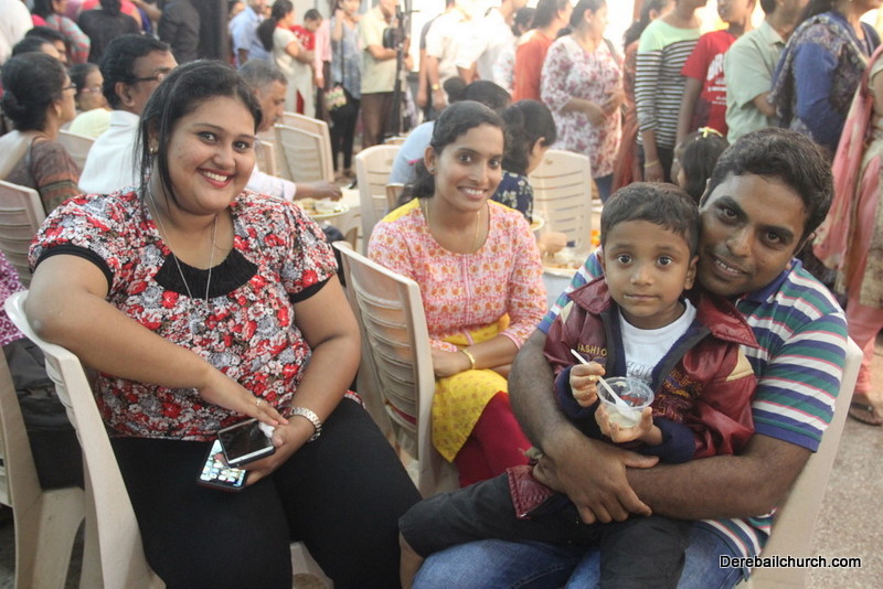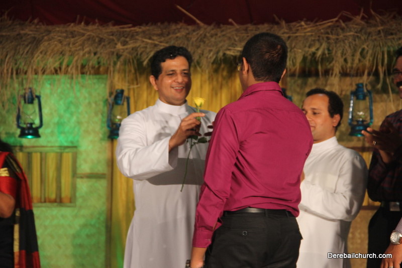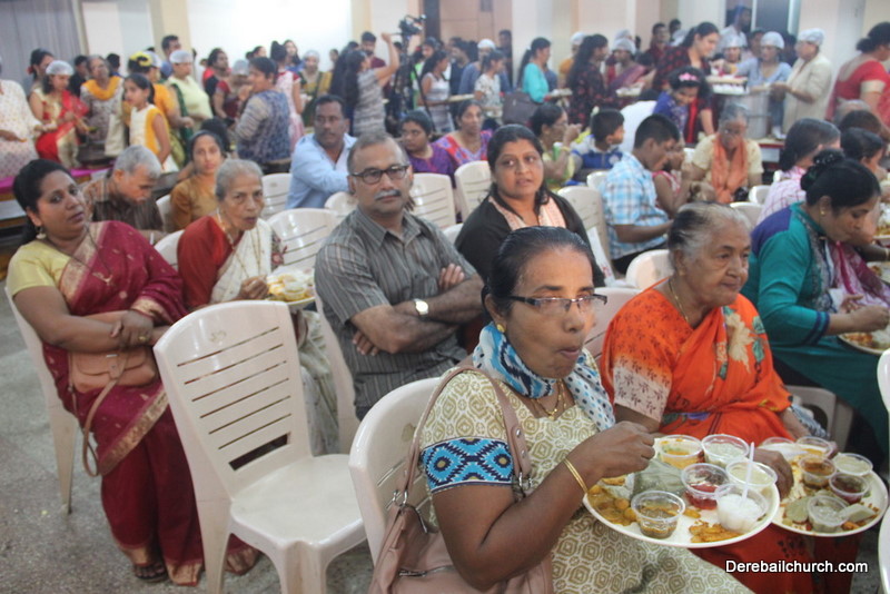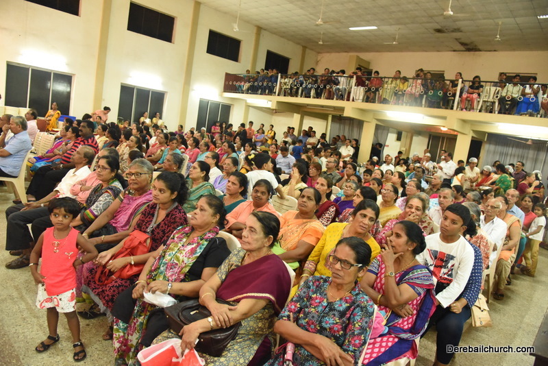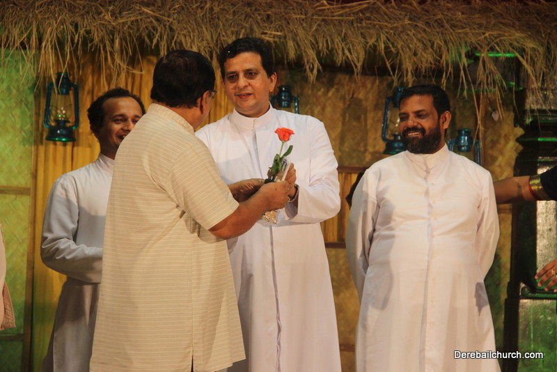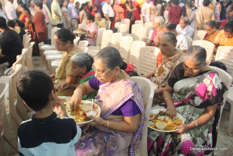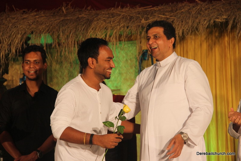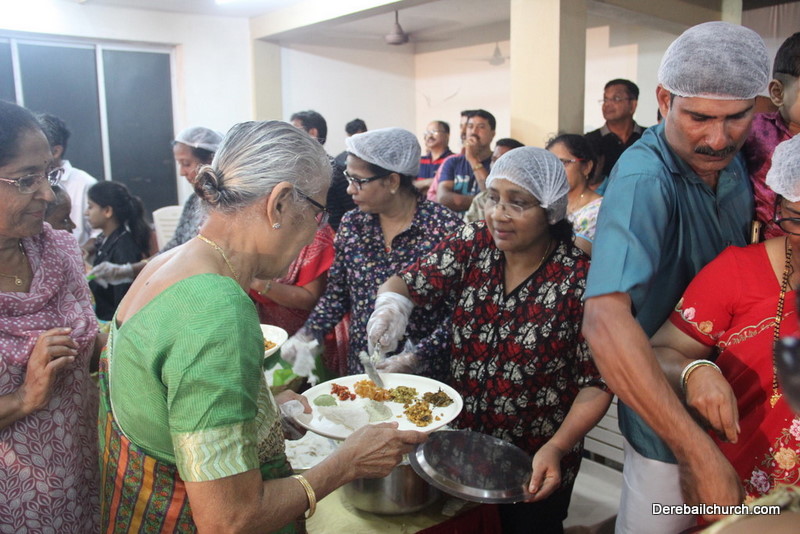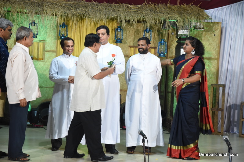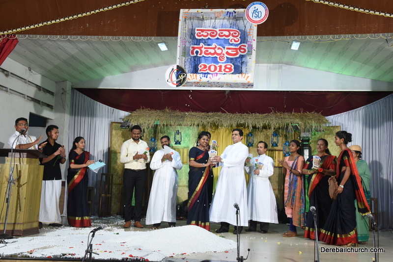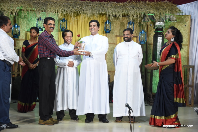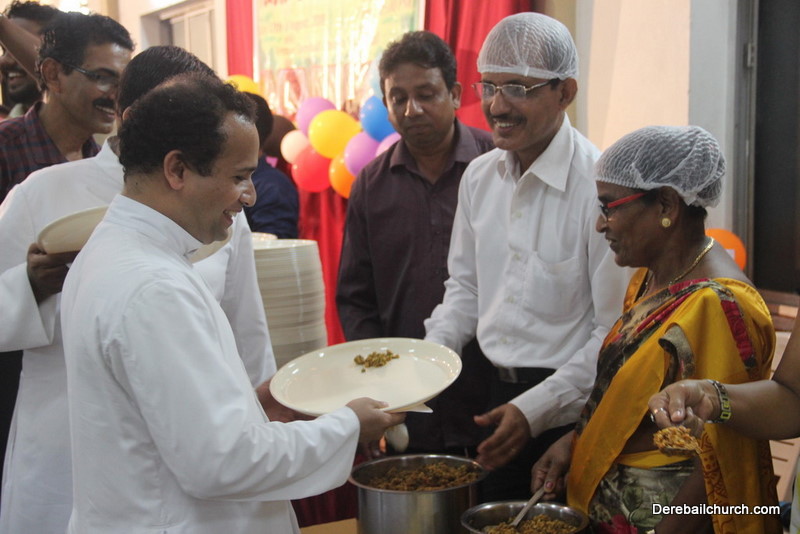 Cultural program began with a live band performance. Many talented parishioners and various associations of the Most Holy Redeemer Church, Derebail had beautifully put up a cultural program. The cultural program included - Dance, skit, Jokes, Mad ad, live singing, music, Mando etc. Spot games were conducted especially for enthusiastic audience. 22 ward Gurkars, Sponsors and all those who toiled for the success of the programme were felicitated with mementos and flowers. A collection box was circulated by YSD among the audience so as to meet the expenses of the event. As soon as the cultural program came to an end, Rev. Fr. Gration Alvares prayed over the meals.