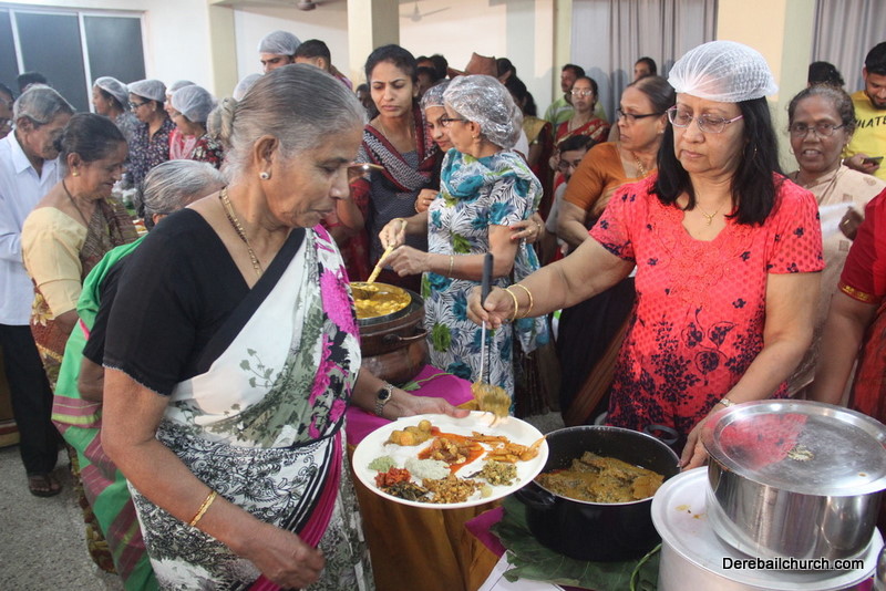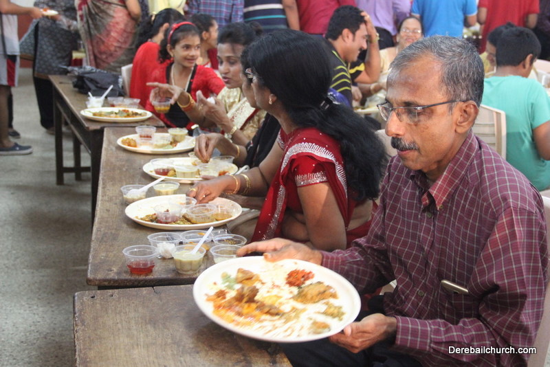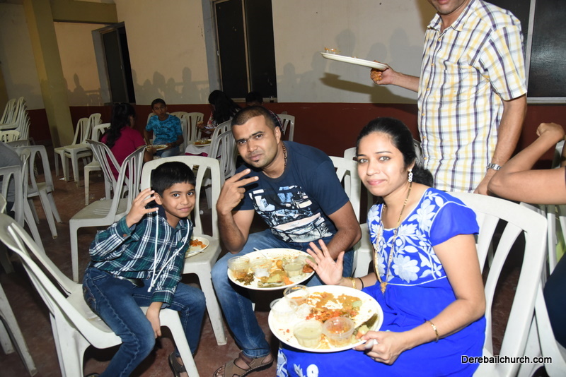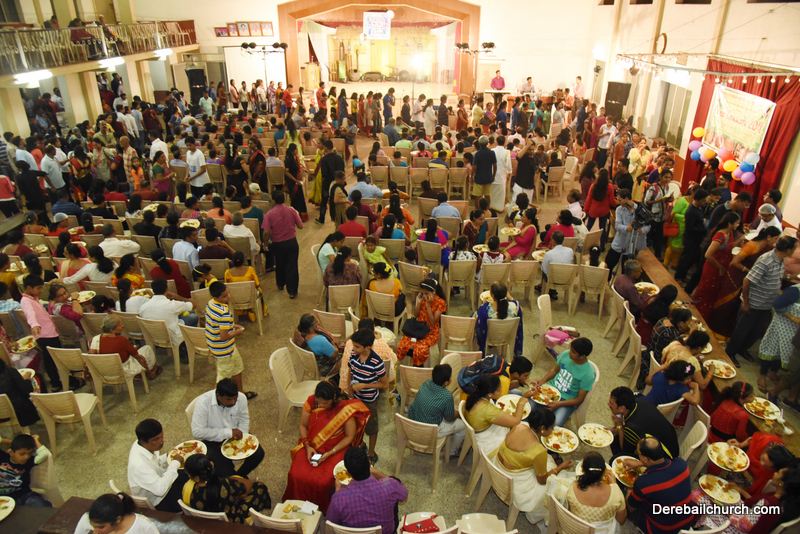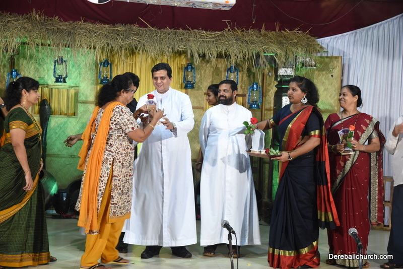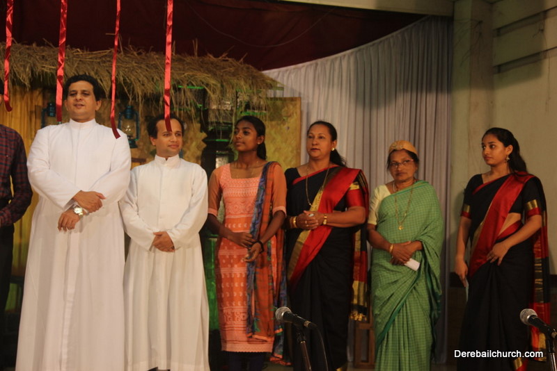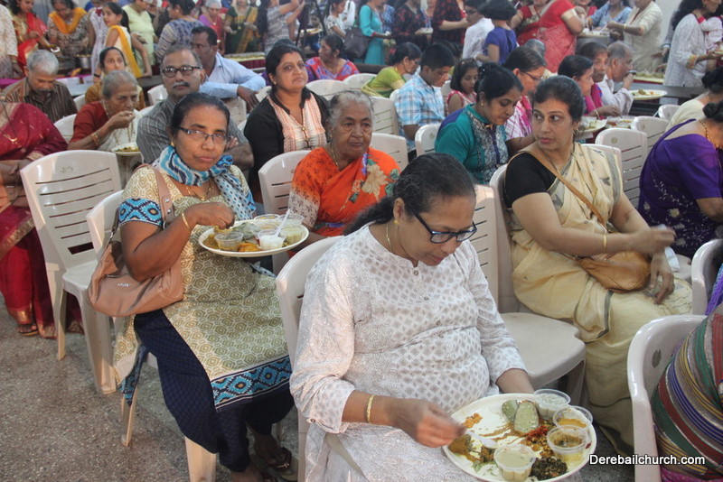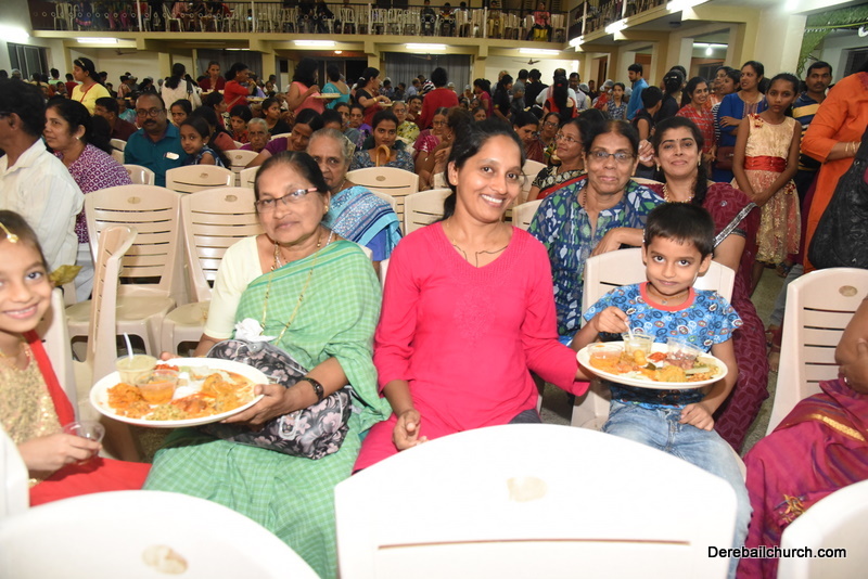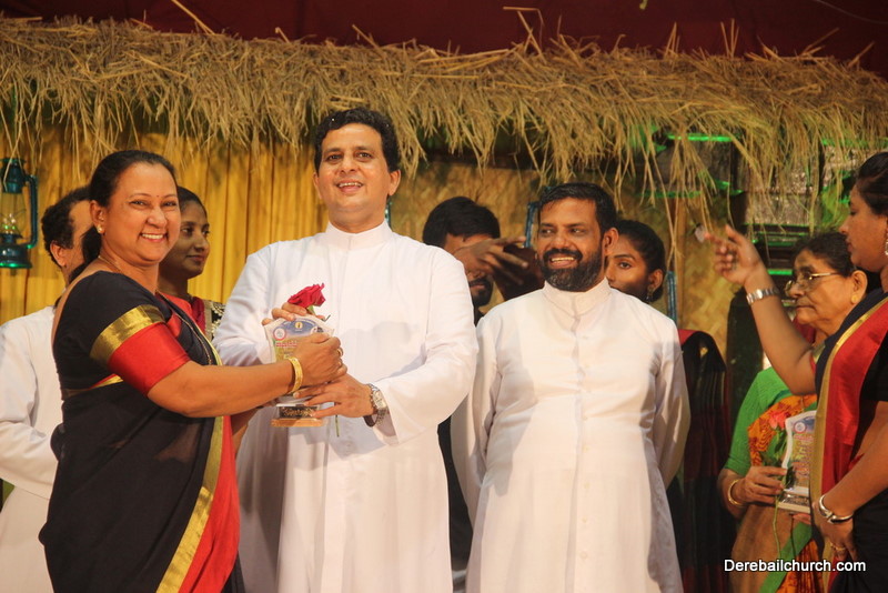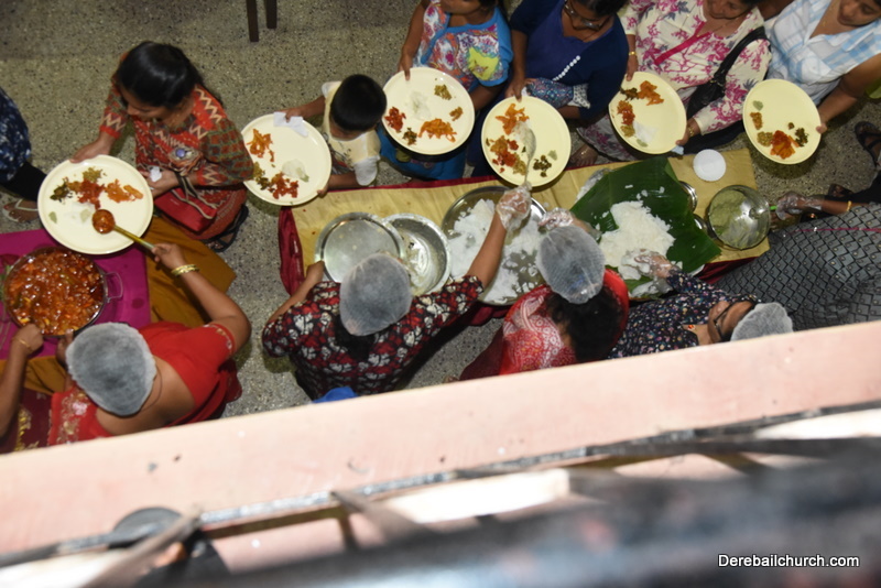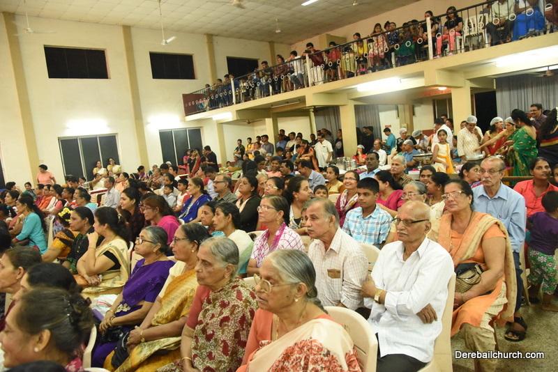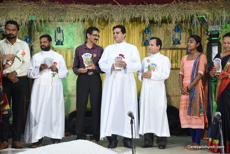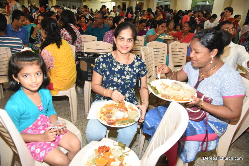 Cultural program began with a live band performance. Many talented parishioners and various associations of the Most Holy Redeemer Church, Derebail had beautifully put up a cultural program. The cultural program included - Dance, skit, Jokes, Mad ad, live singing, music, Mando etc. Spot games were conducted especially for enthusiastic audience. 22 ward Gurkars, Sponsors and all those who toiled for the success of the programme were felicitated with mementos and flowers. A collection box was circulated by YSD among the audience so as to meet the expenses of the event. As soon as the cultural program came to an end, Rev. Fr. Gration Alvares prayed over the meals.