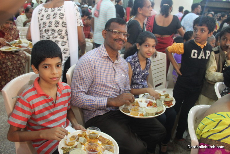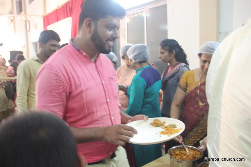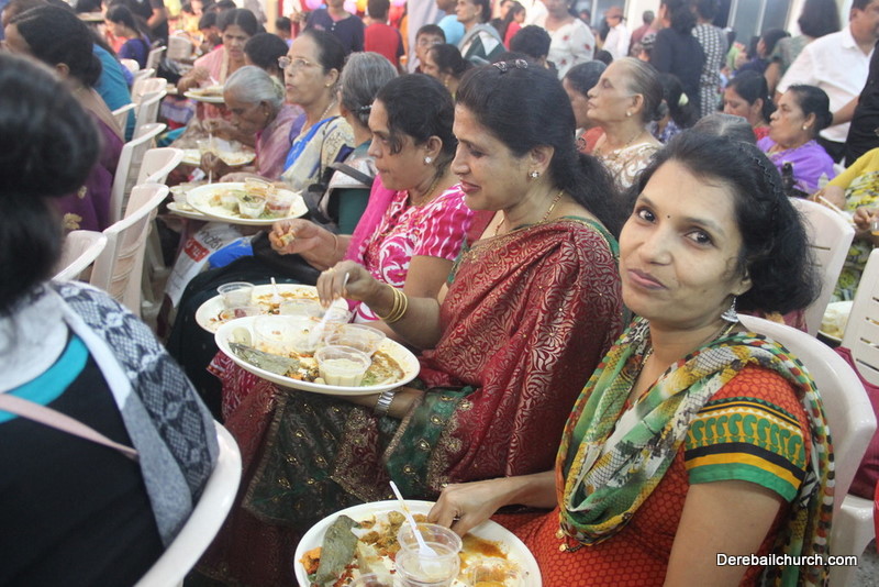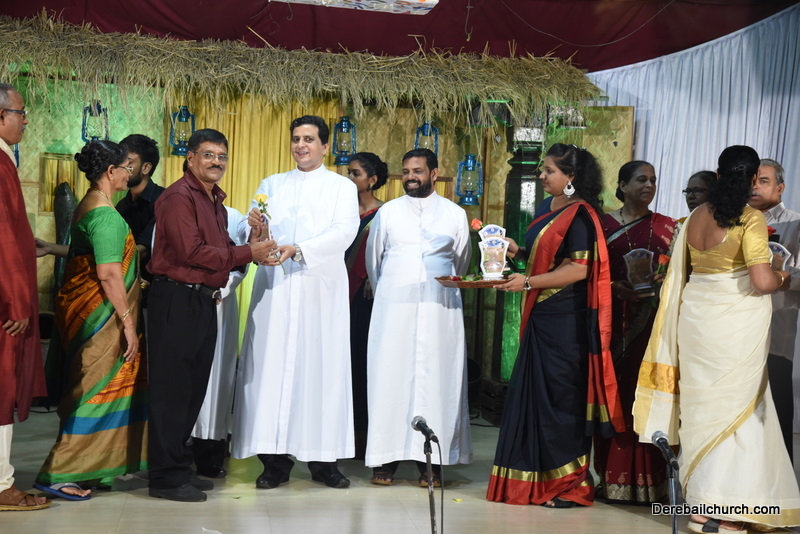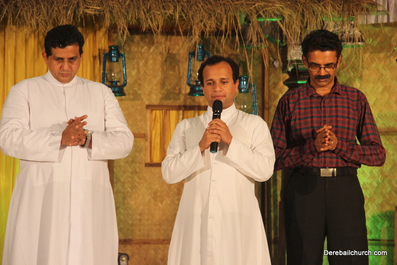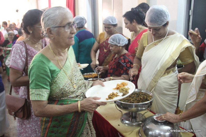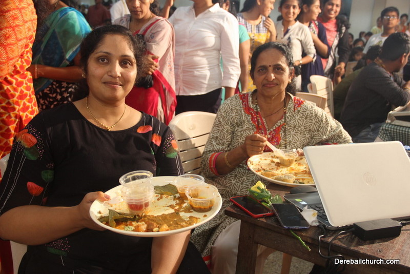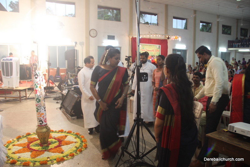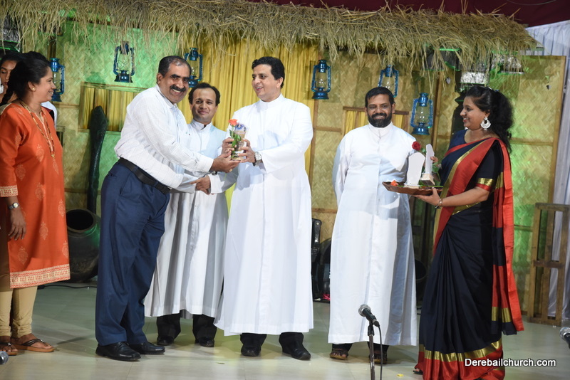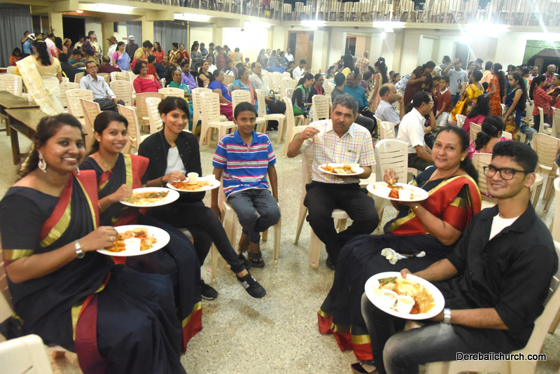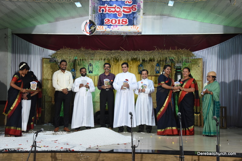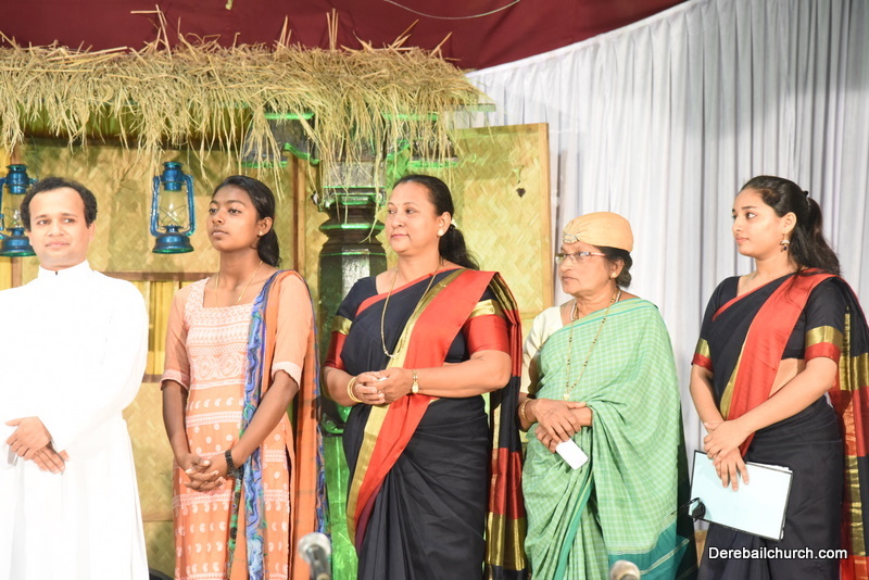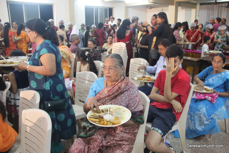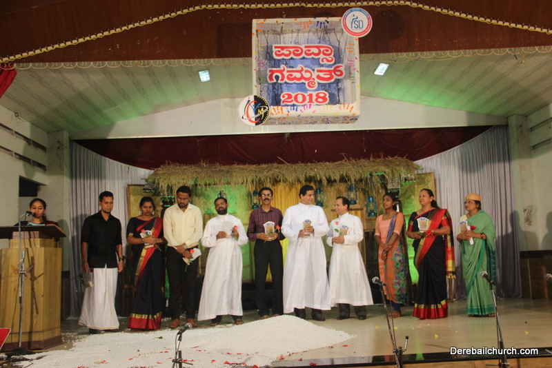 Cultural program began with a live band performance. Many talented parishioners and various associations of the Most Holy Redeemer Church, Derebail had beautifully put up a cultural program. The cultural program included - Dance, skit, Jokes, Mad ad, live singing, music, Mando etc. Spot games were conducted especially for enthusiastic audience. 22 ward Gurkars, Sponsors and all those who toiled for the success of the programme were felicitated with mementos and flowers. A collection box was circulated by YSD among the audience so as to meet the expenses of the event. As soon as the cultural program came to an end, Rev. Fr. Gration Alvares prayed over the meals.