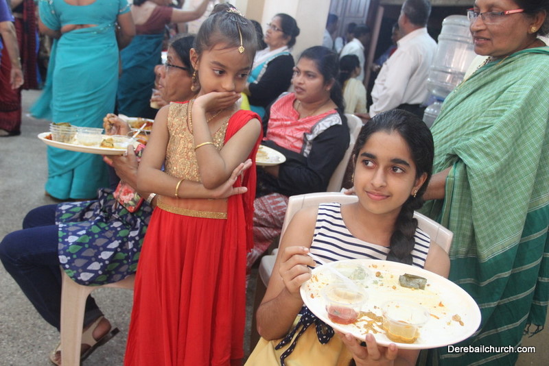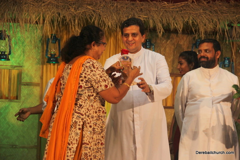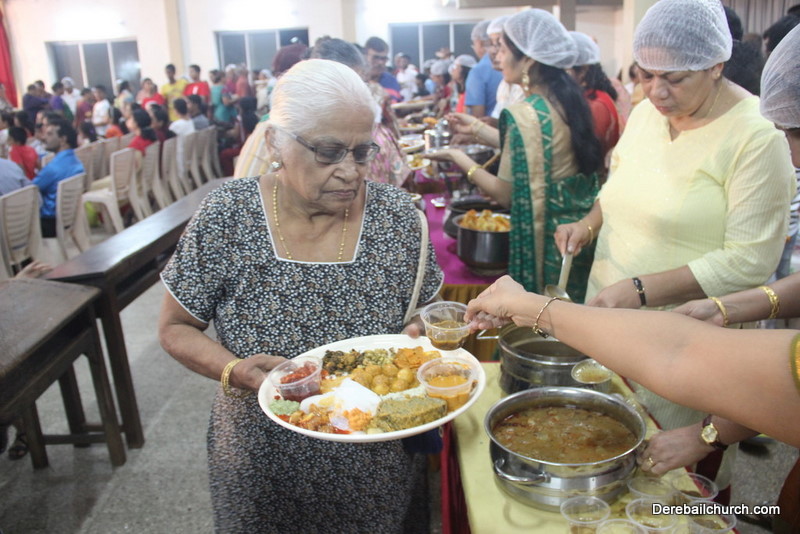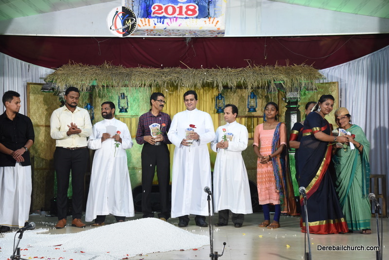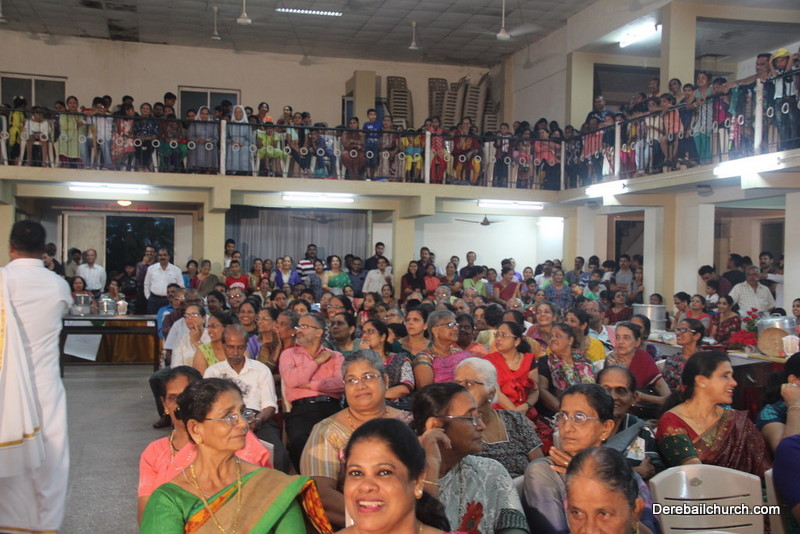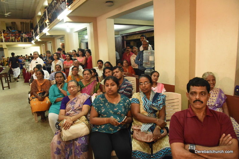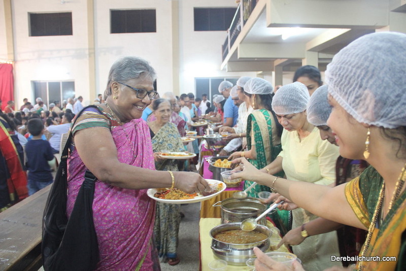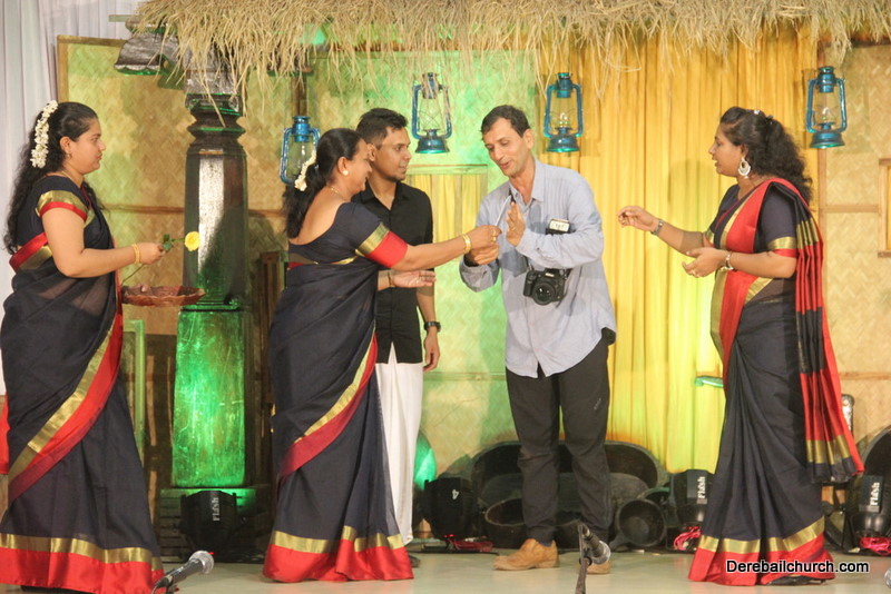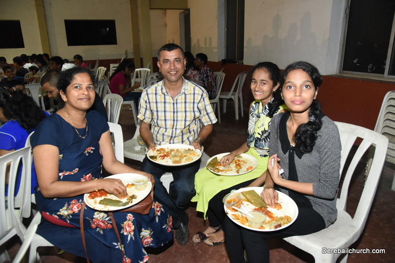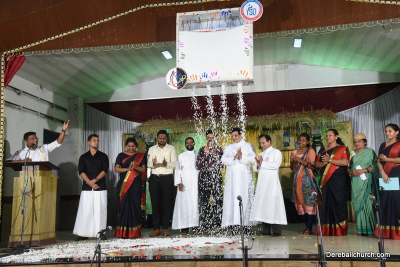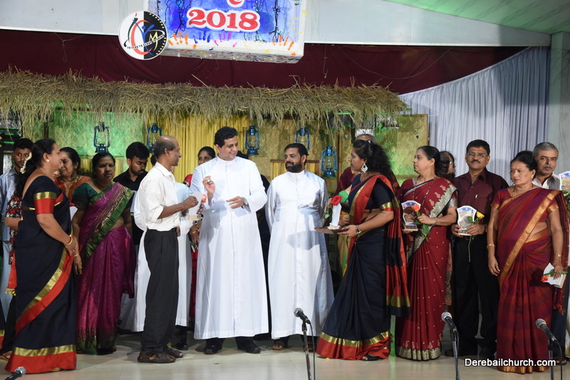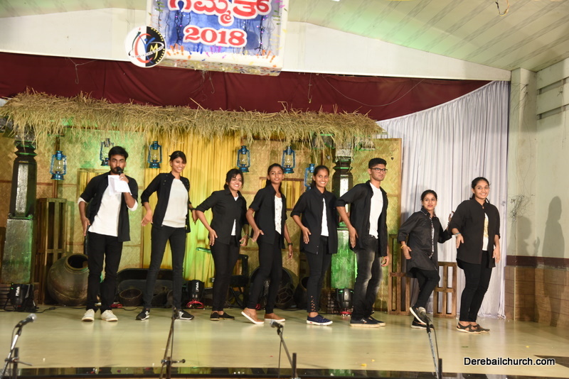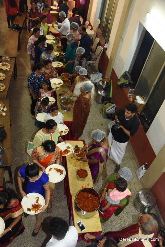 Cultural program began with a live band performance. Many talented parishioners and various associations of the Most Holy Redeemer Church, Derebail had beautifully put up a cultural program. The cultural program included - Dance, skit, Jokes, Mad ad, live singing, music, Mando etc. Spot games were conducted especially for enthusiastic audience. 22 ward Gurkars, Sponsors and all those who toiled for the success of the programme were felicitated with mementos and flowers. A collection box was circulated by YSD among the audience so as to meet the expenses of the event. As soon as the cultural program came to an end, Rev. Fr. Gration Alvares prayed over the meals.