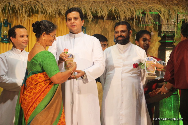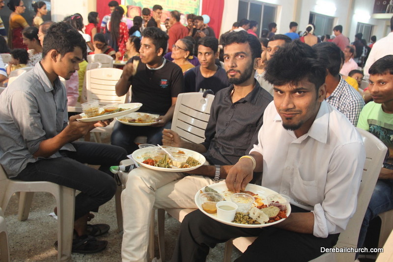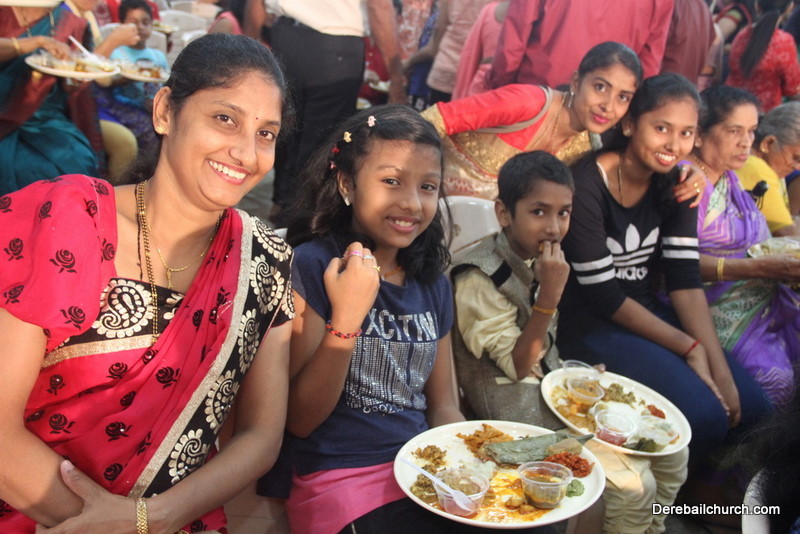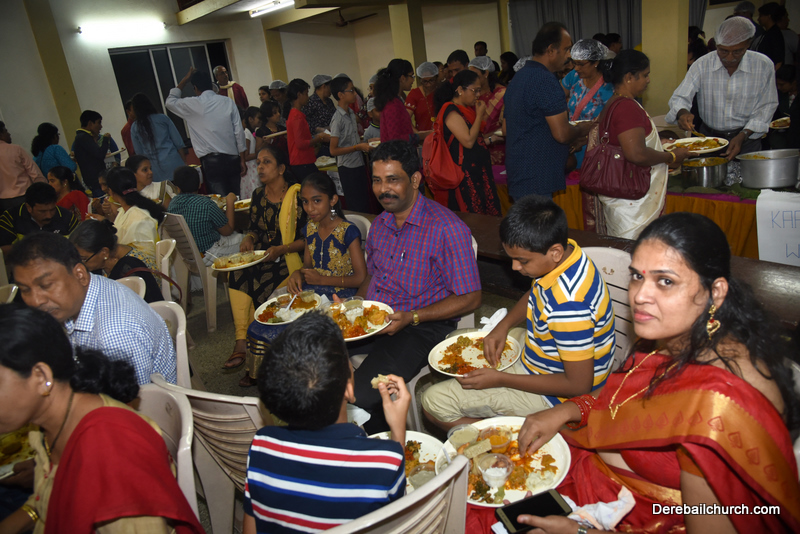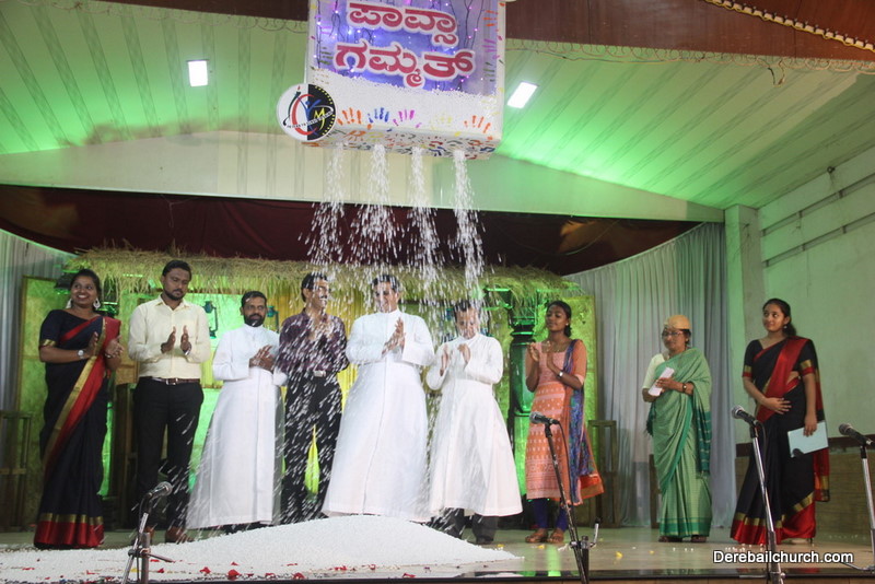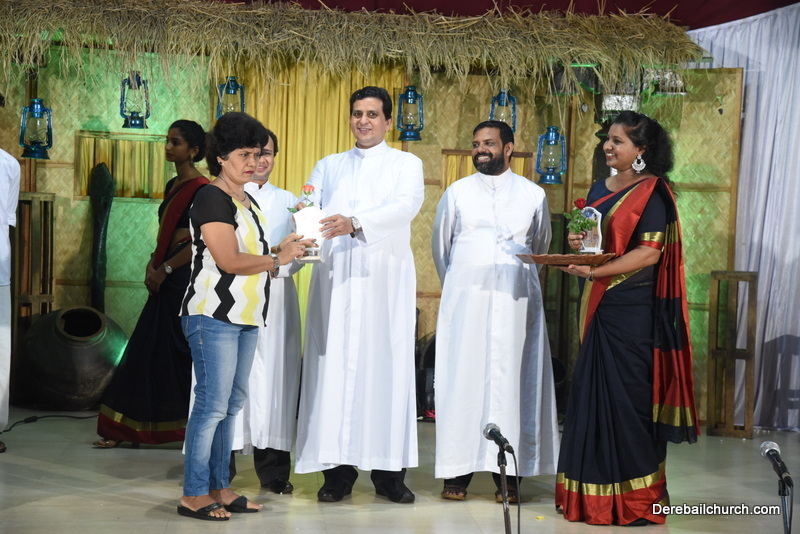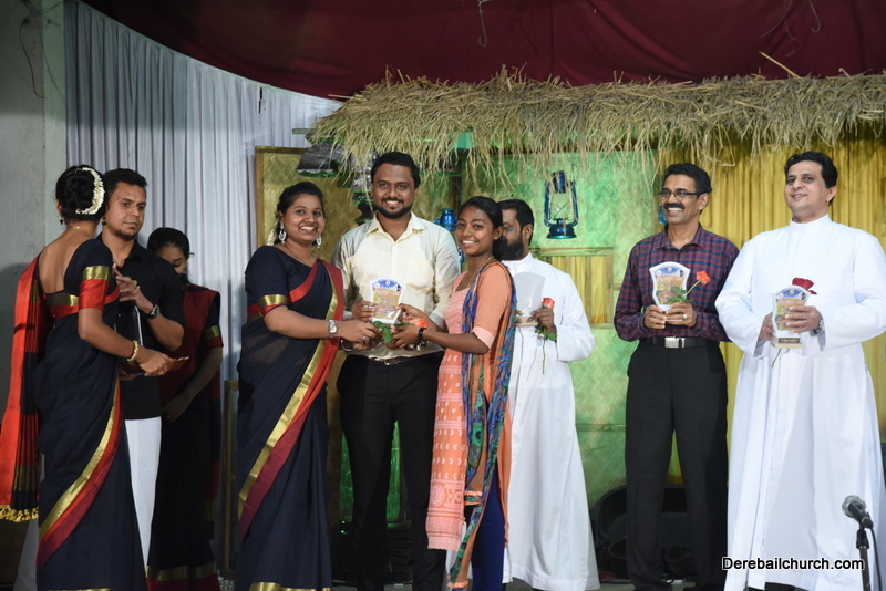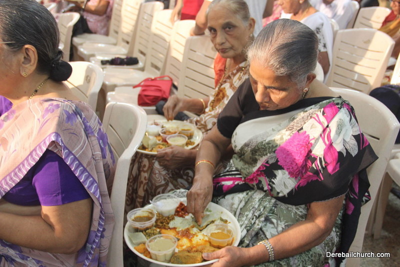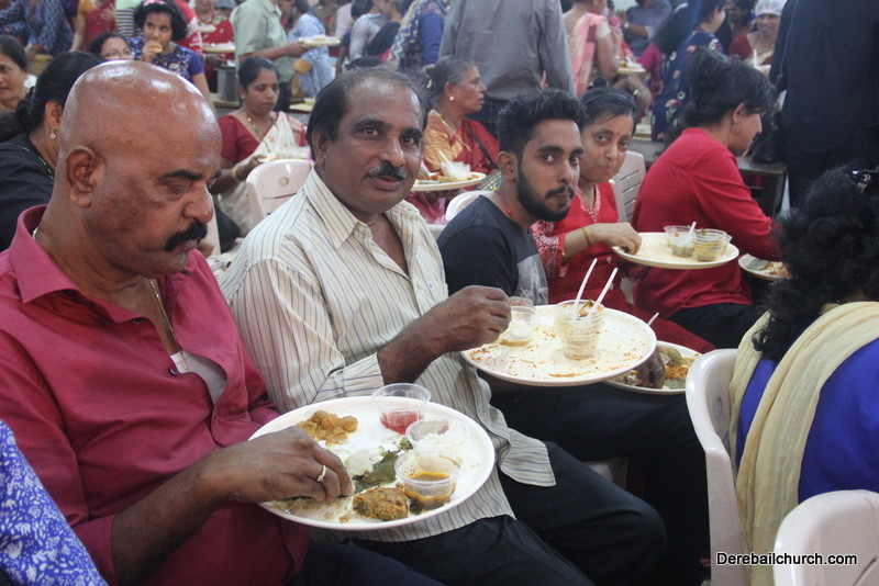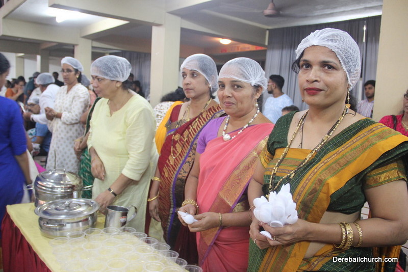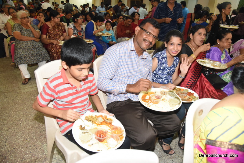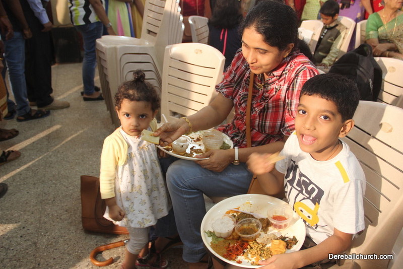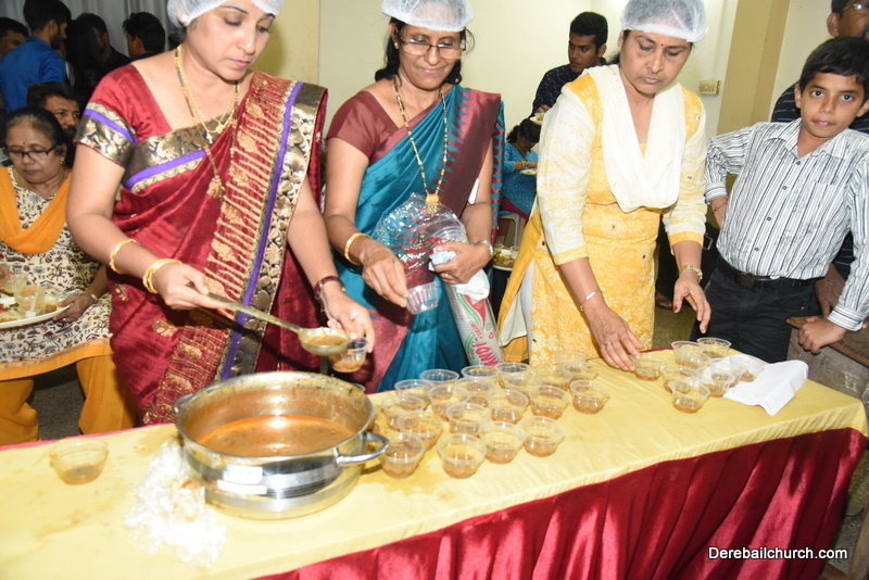 Cultural program began with a live band performance. Many talented parishioners and various associations of the Most Holy Redeemer Church, Derebail had beautifully put up a cultural program. The cultural program included - Dance, skit, Jokes, Mad ad, live singing, music, Mando etc. Spot games were conducted especially for enthusiastic audience. 22 ward Gurkars, Sponsors and all those who toiled for the success of the programme were felicitated with mementos and flowers. A collection box was circulated by YSD among the audience so as to meet the expenses of the event. As soon as the cultural program came to an end, Rev. Fr. Gration Alvares prayed over the meals.
