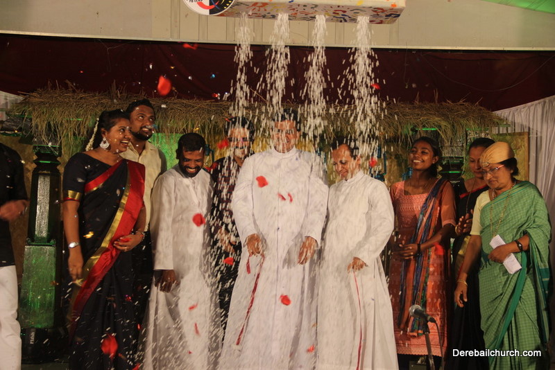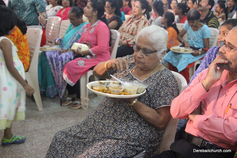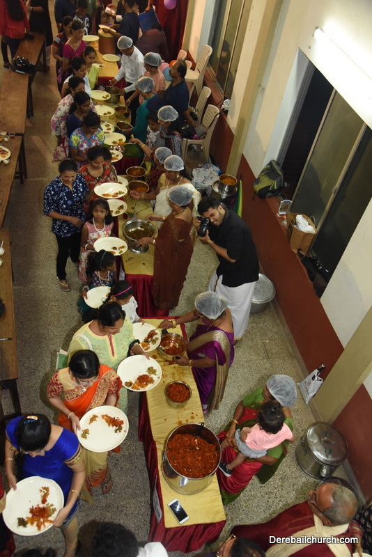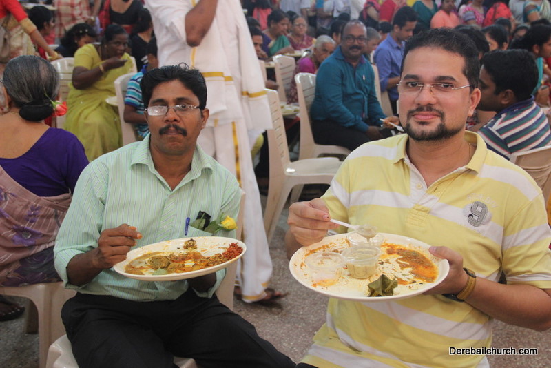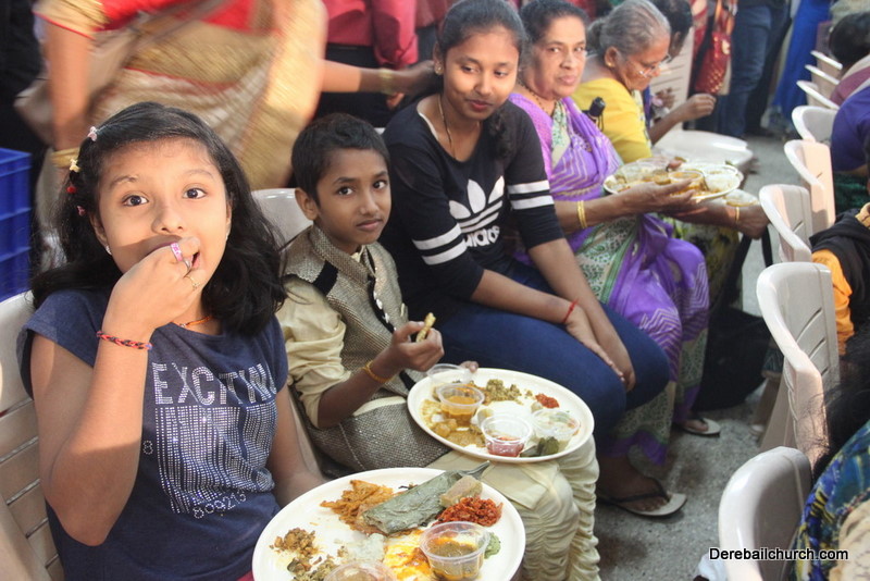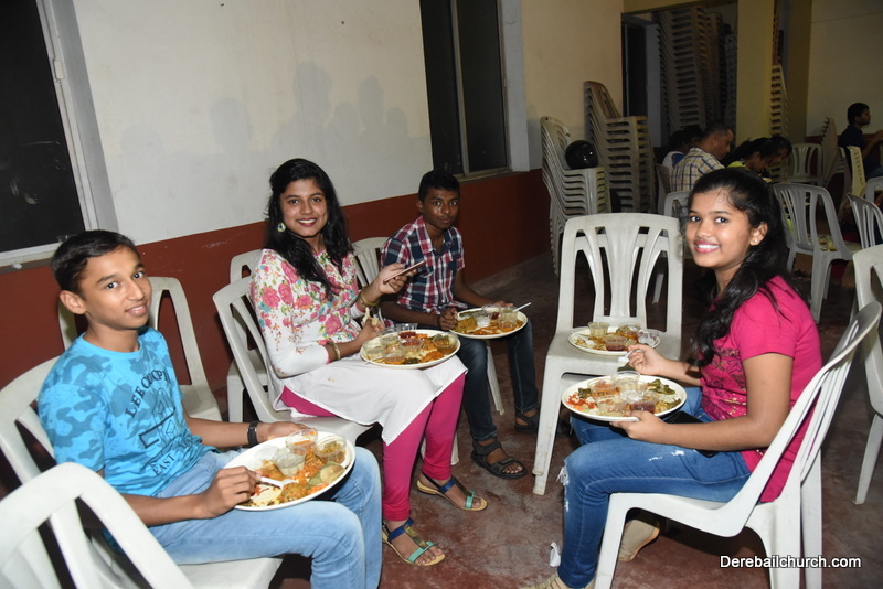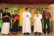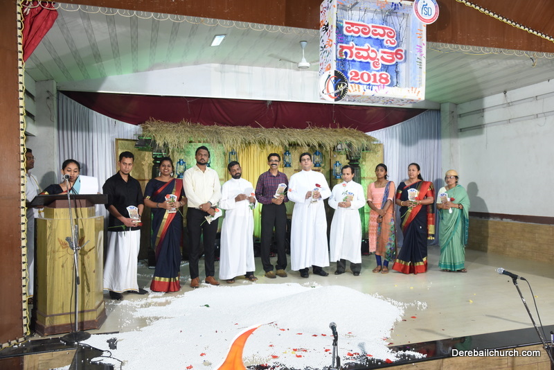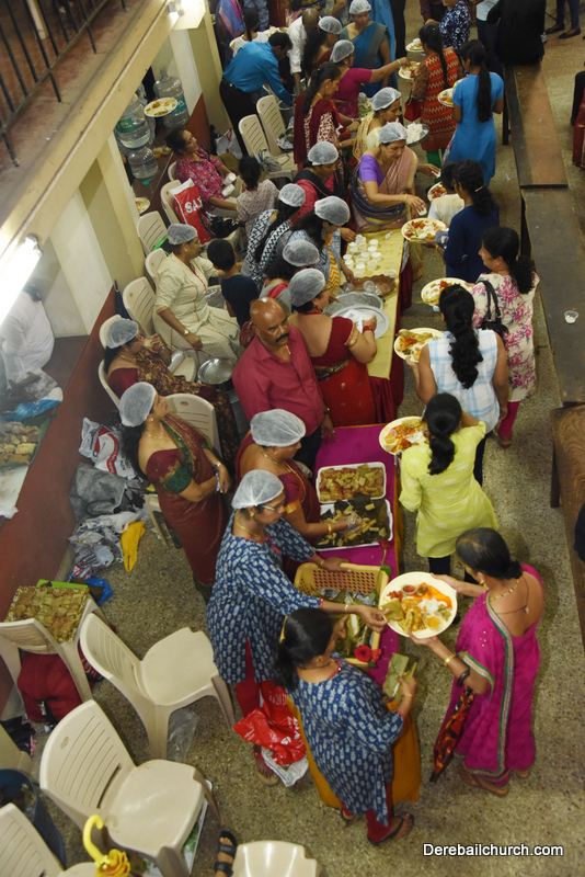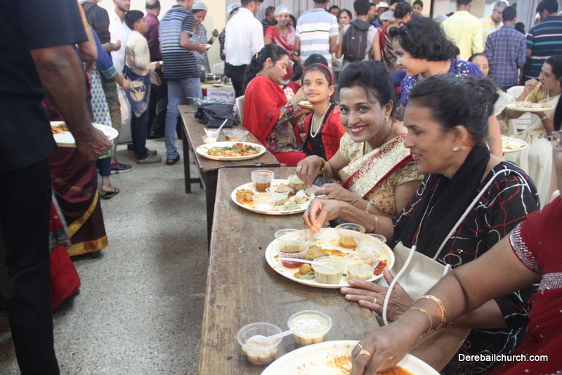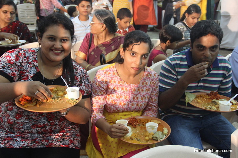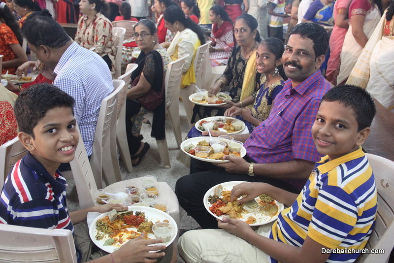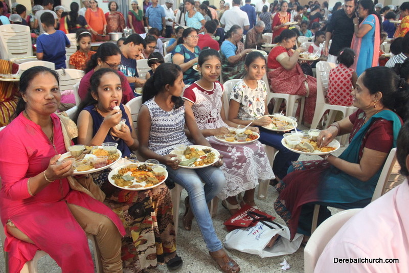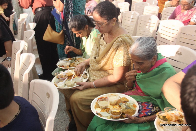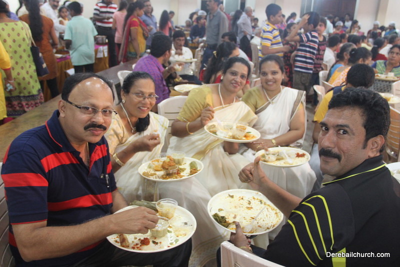 Cultural program began with a live band performance. Many talented parishioners and various associations of the Most Holy Redeemer Church, Derebail had beautifully put up a cultural program. The cultural program included - Dance, skit, Jokes, Mad ad, live singing, music, Mando etc. Spot games were conducted especially for enthusiastic audience. 22 ward Gurkars, Sponsors and all those who toiled for the success of the programme were felicitated with mementos and flowers. A collection box was circulated by YSD among the audience so as to meet the expenses of the event. As soon as the cultural program came to an end, Rev. Fr. Gration Alvares prayed over the meals.